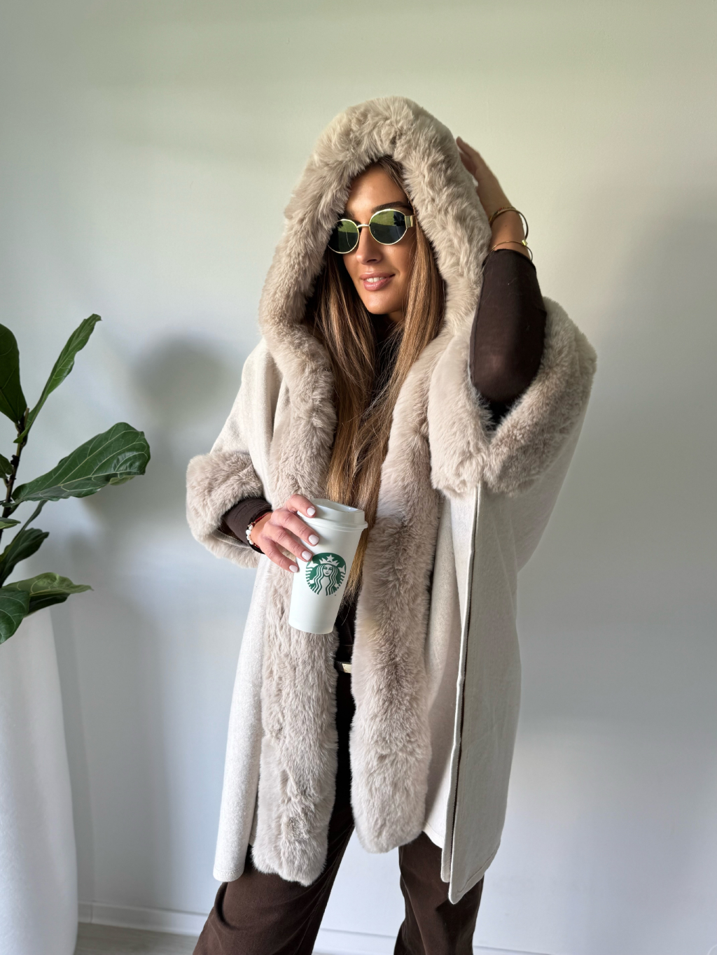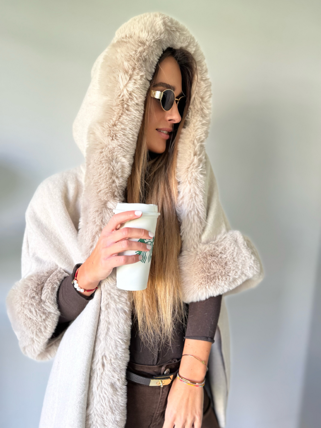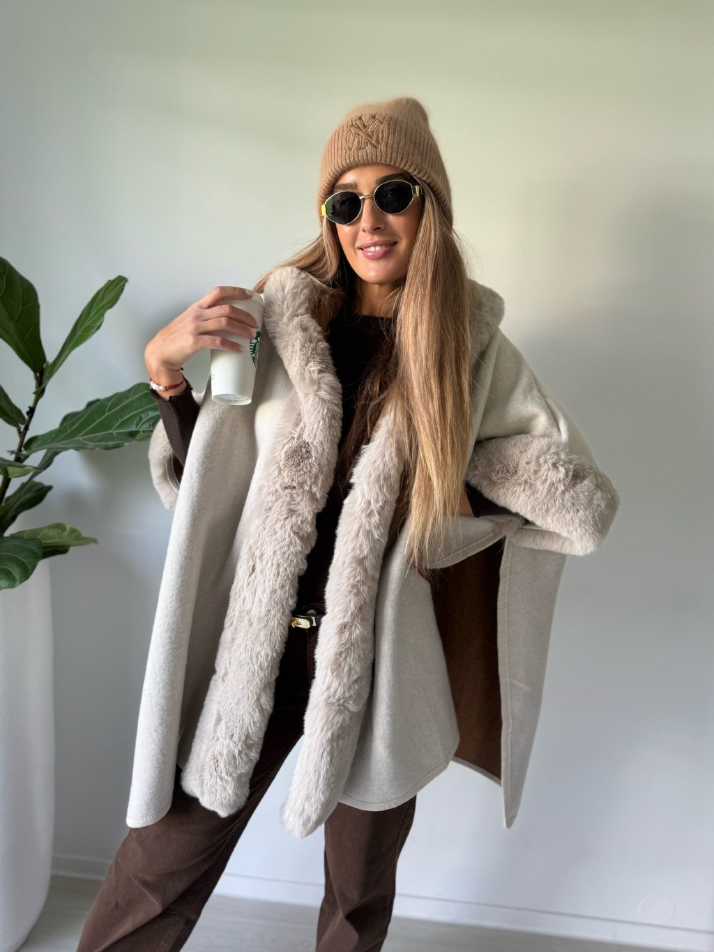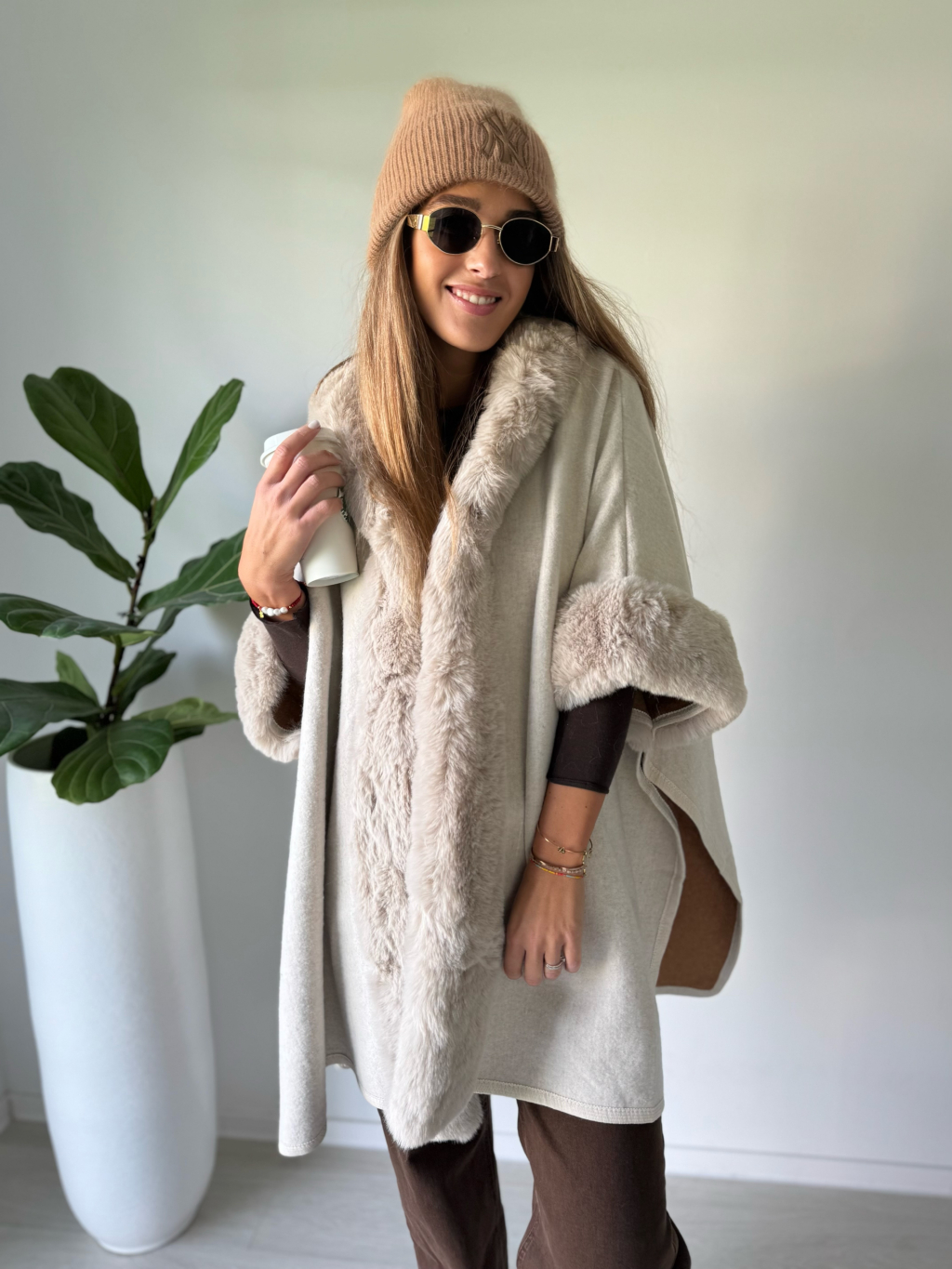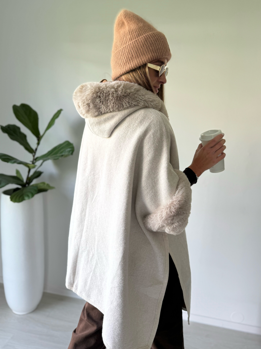 Kabát pončo krémová