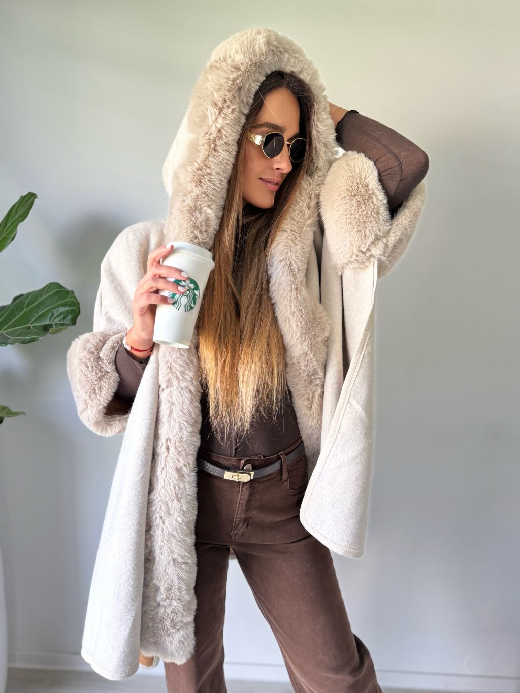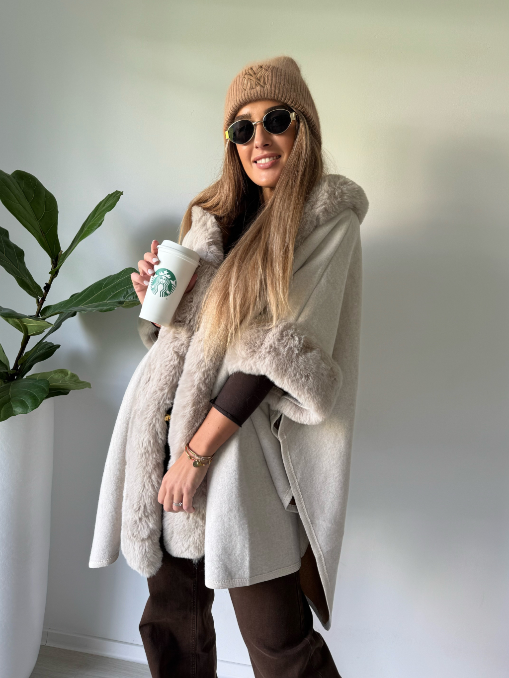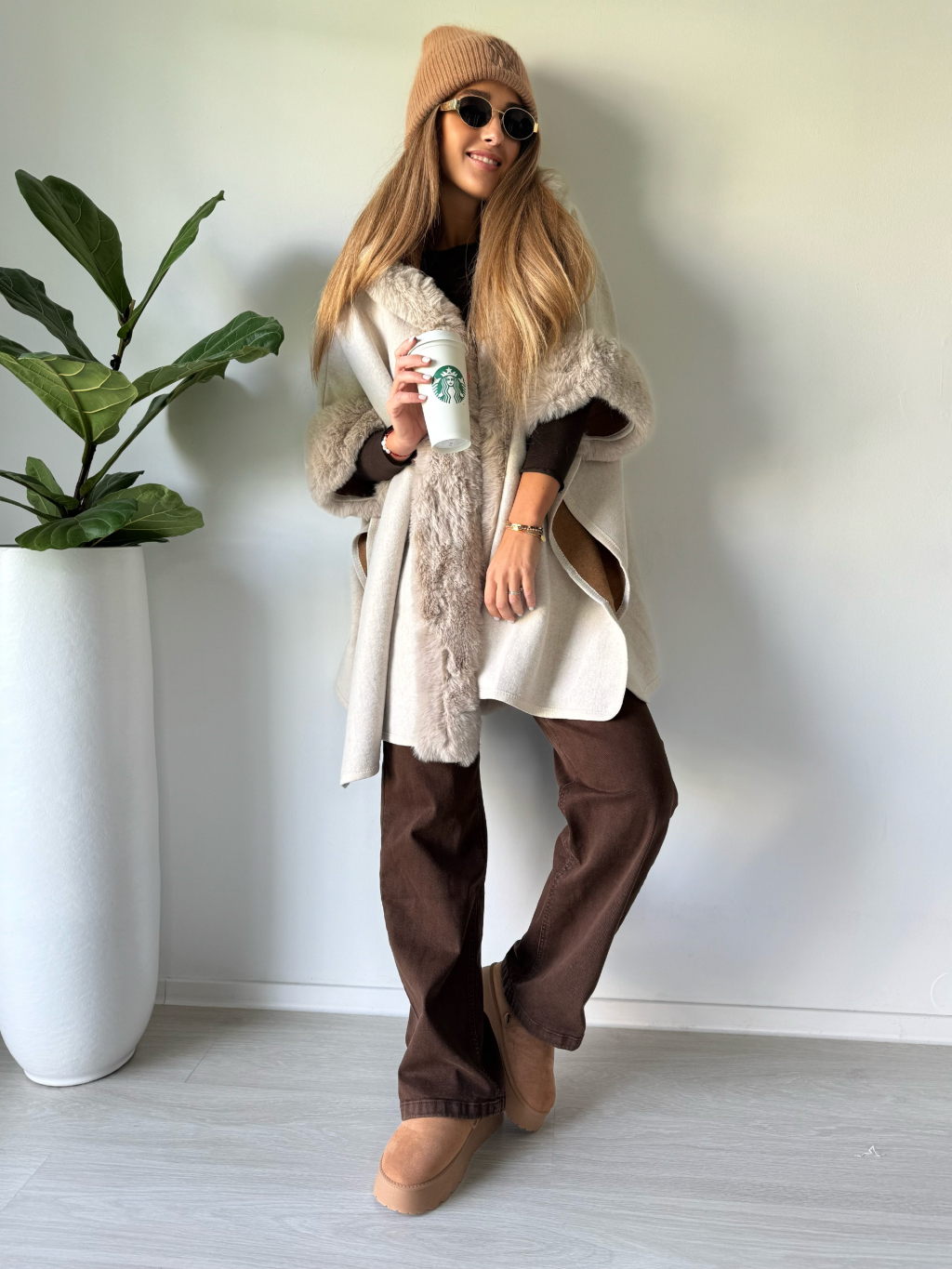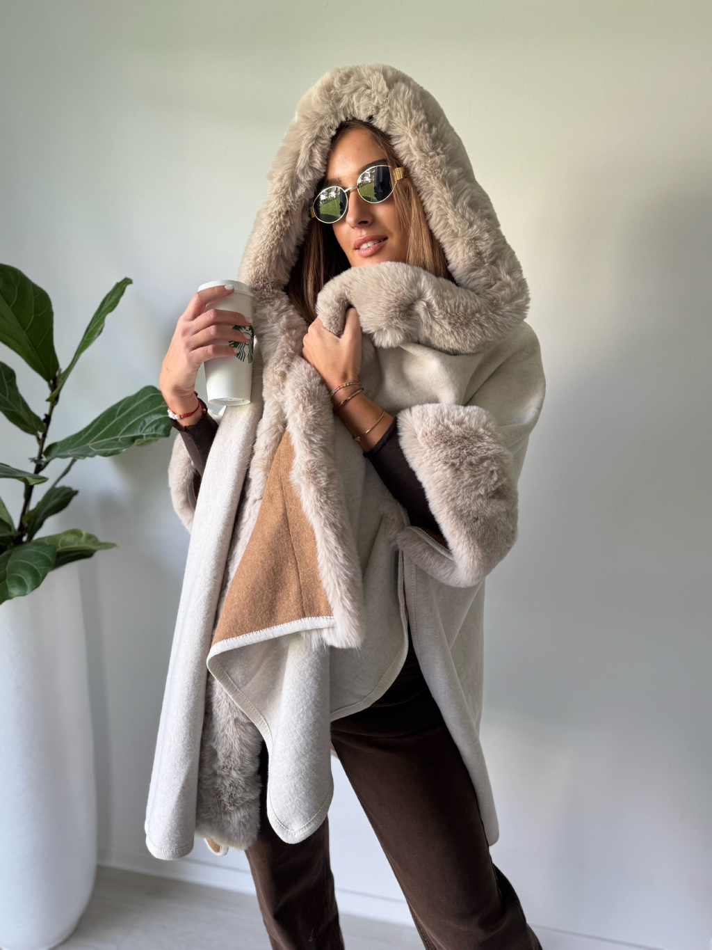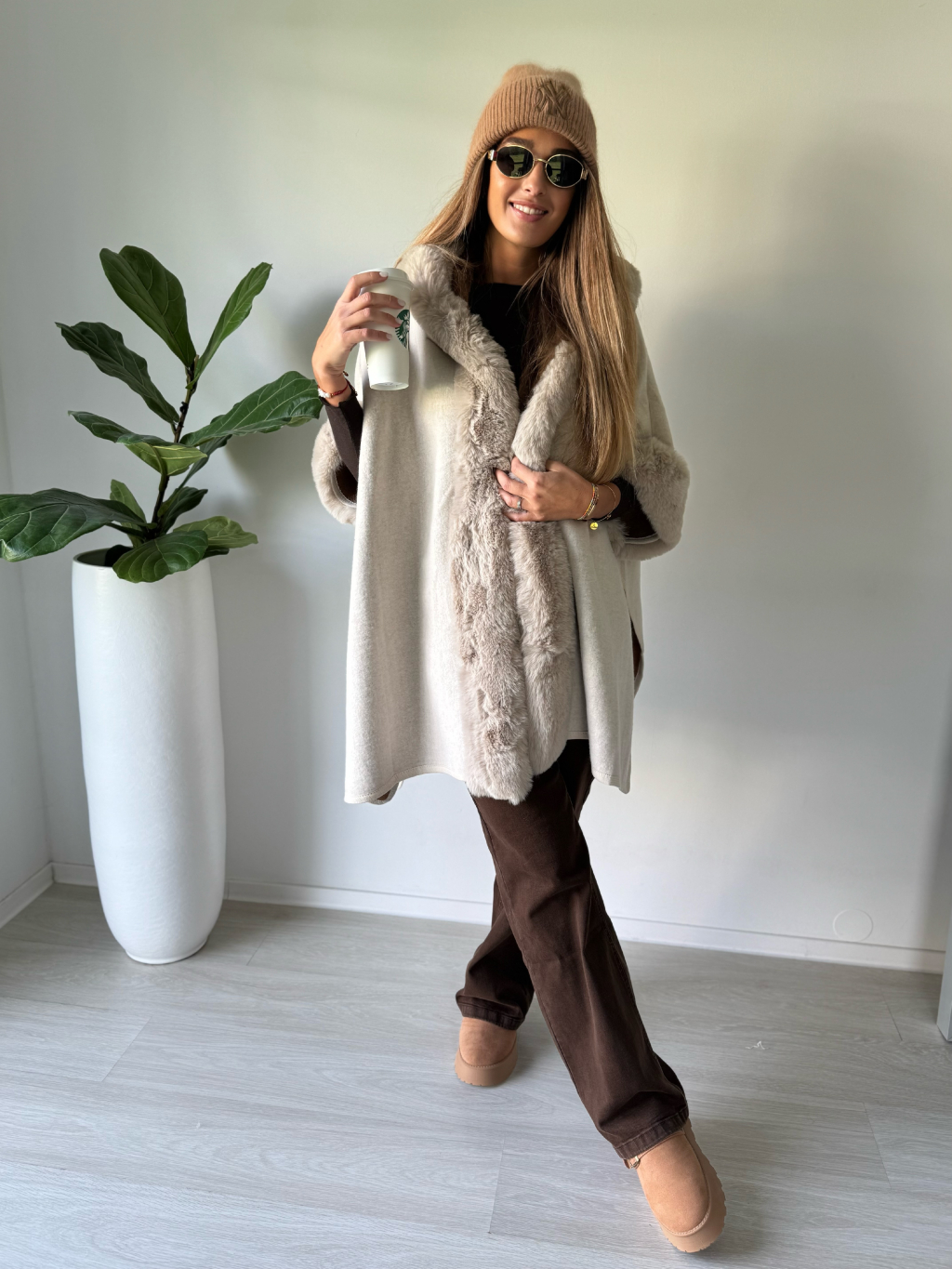 Kabát pončo krémová