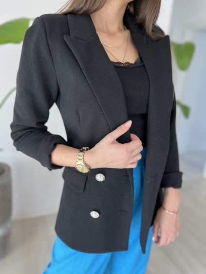 Jednoduché sako bez zapínání. Sako má nařasené rukávy, které lze nosit i ohrnuté.