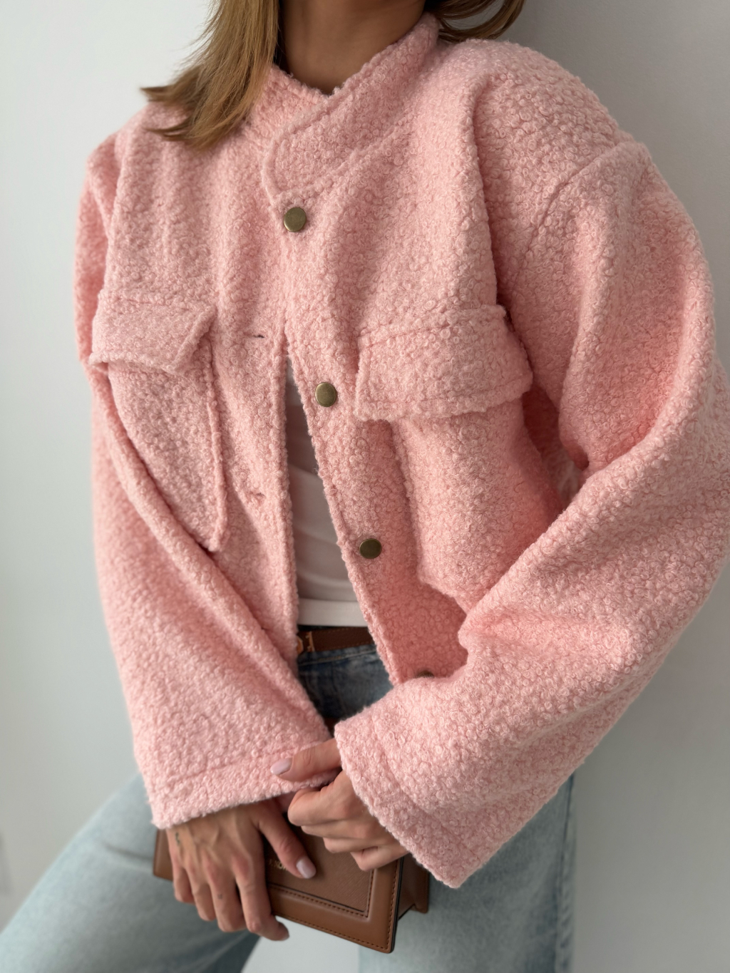 Stylová teddy bunda na knoflíky v moderním provedení s elastickým spodním lemem, která vytváří pěkný tvar. Měkký teddy materiál zajišťuje příjemné teplo a maximální komfort při nošení. Design doplňují dvě výrazné rovné kapsy na prsou.