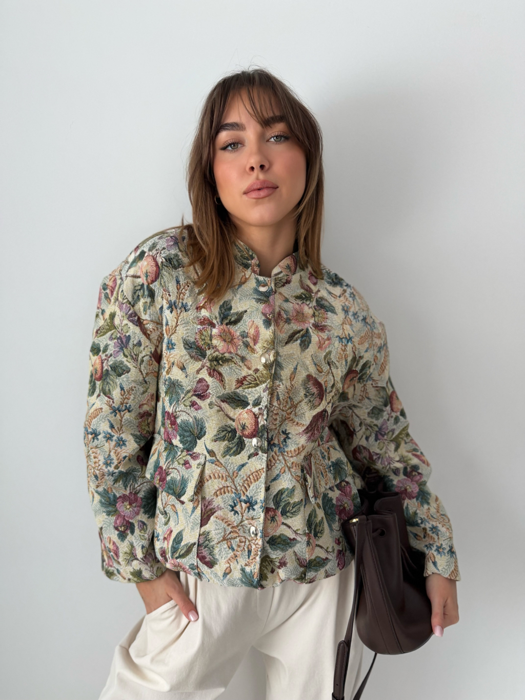 květinová bunda, vintage botanická bunda, bunda, látková bunda