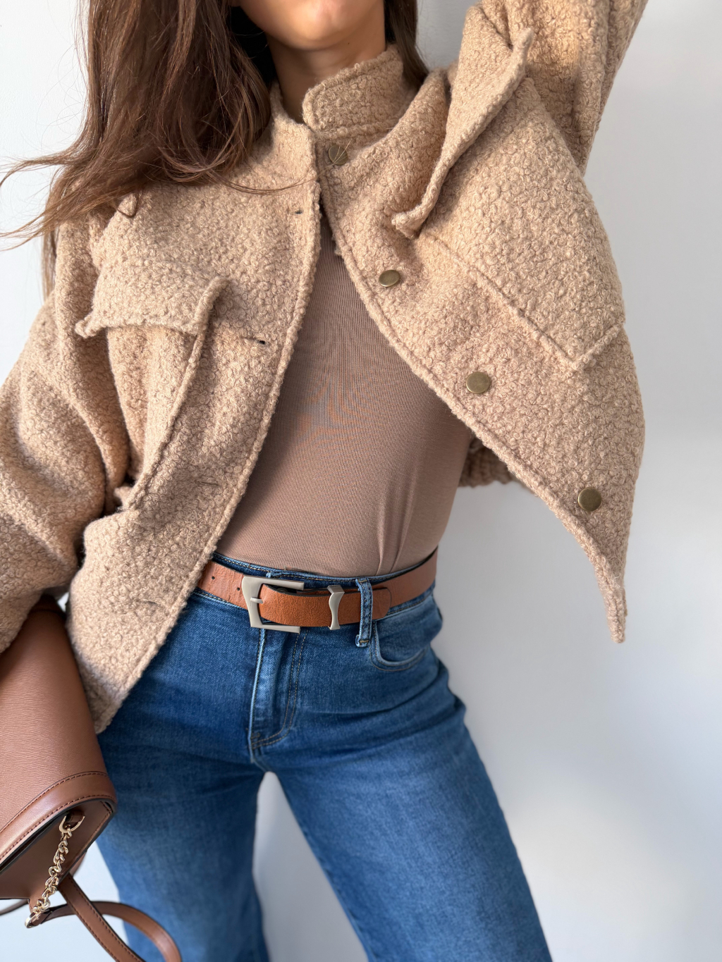 Stylová teddy bunda na knoflíky v moderním provedení s elastickým spodním lemem, která vytváří pěkný tvar. Měkký teddy materiál zajišťuje příjemné teplo a maximální komfort při nošení. Design doplňují dvě výrazné rovné kapsy na prsou.