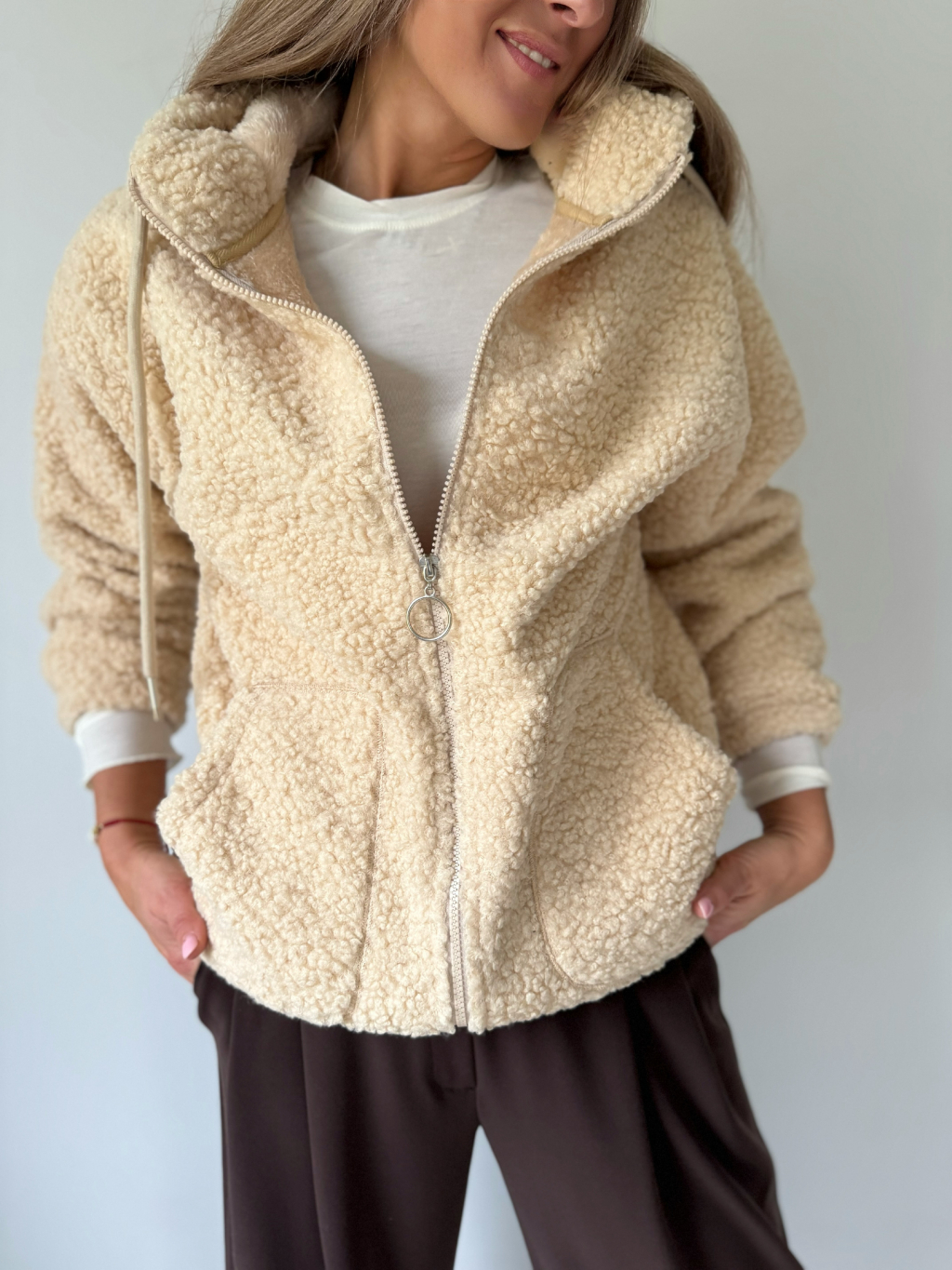 Bunda teddy béžová