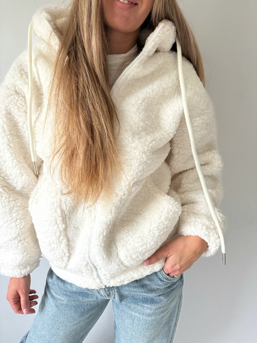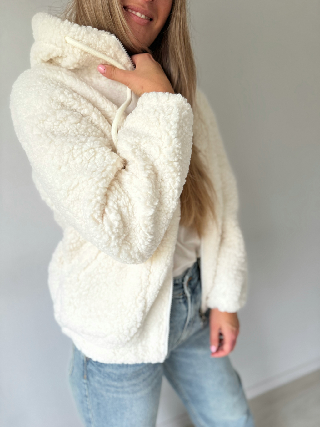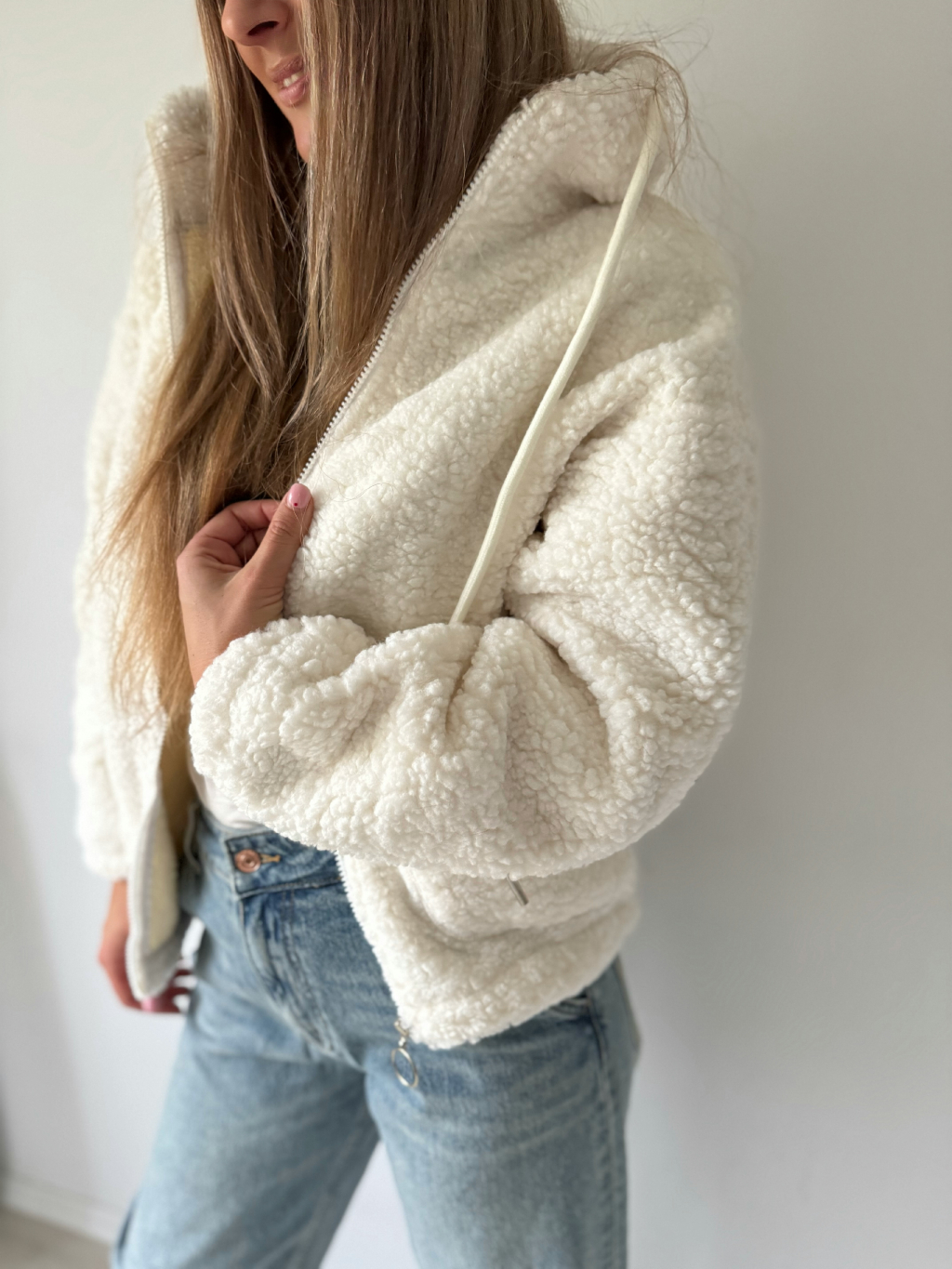 Bunda s kapucí a zapínáním na zip. Bunda je uvnitř zateplená.