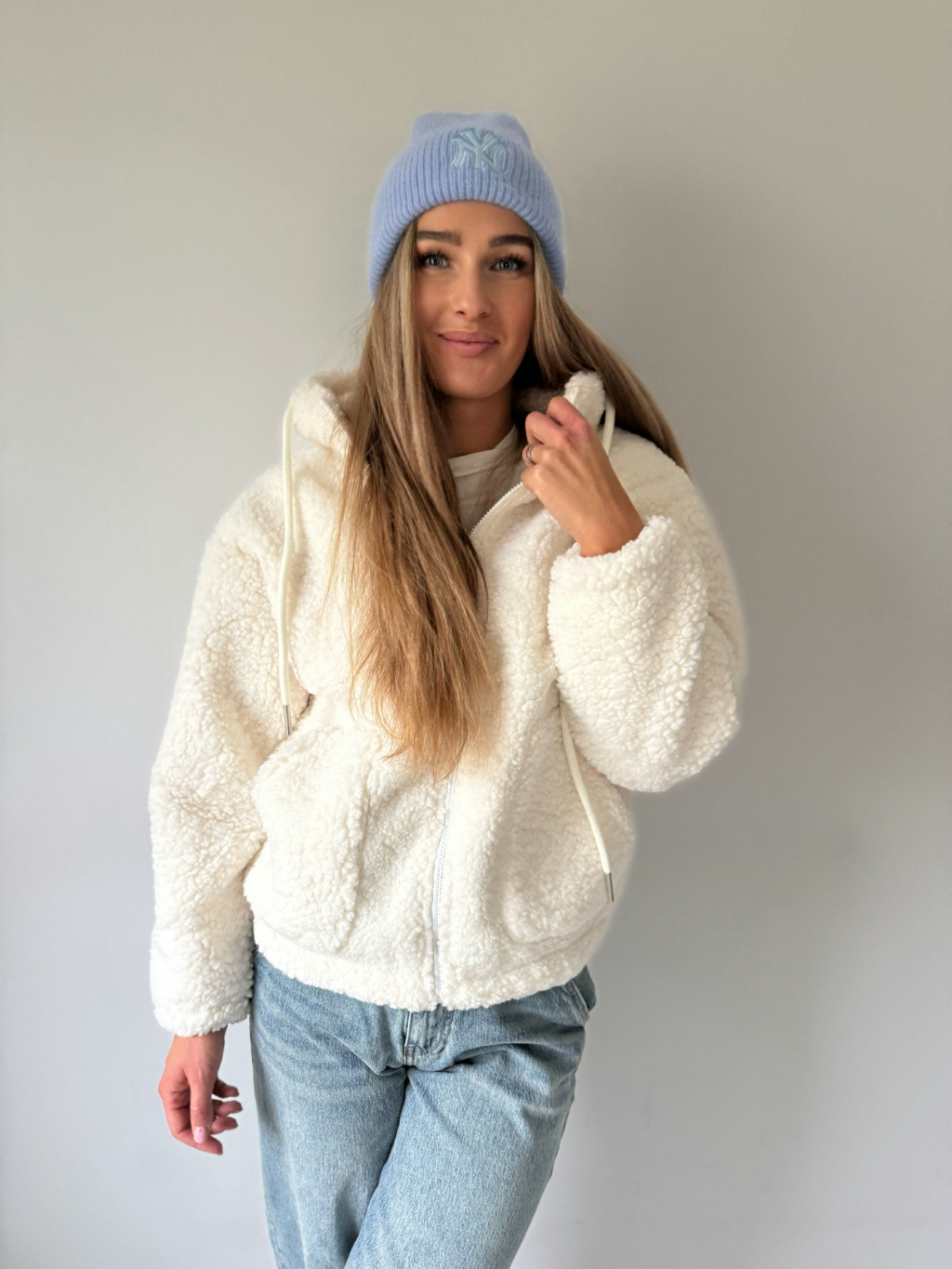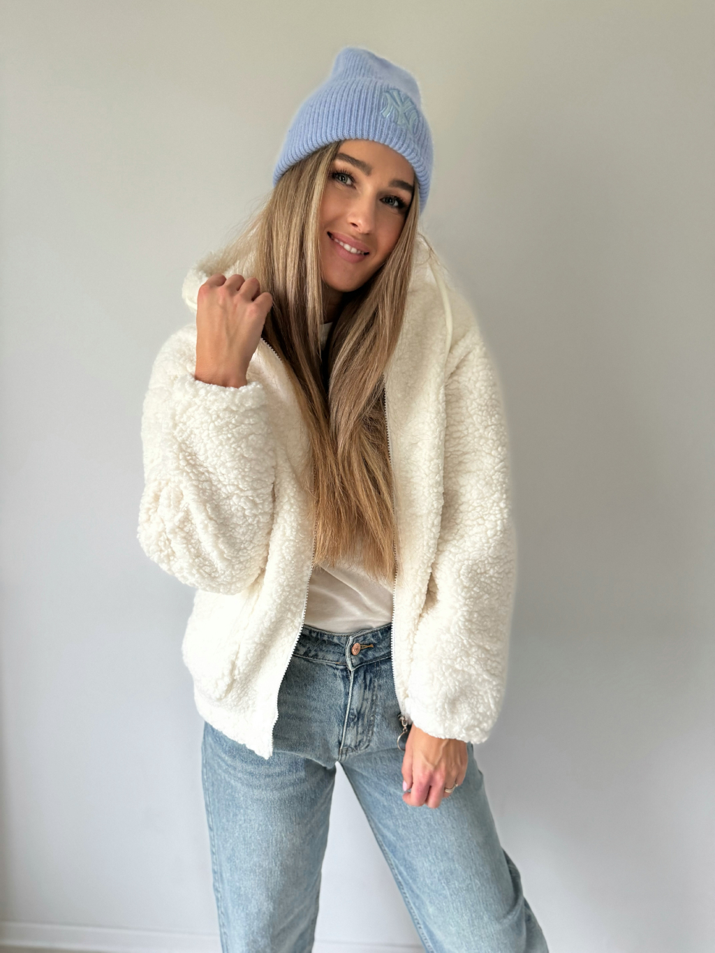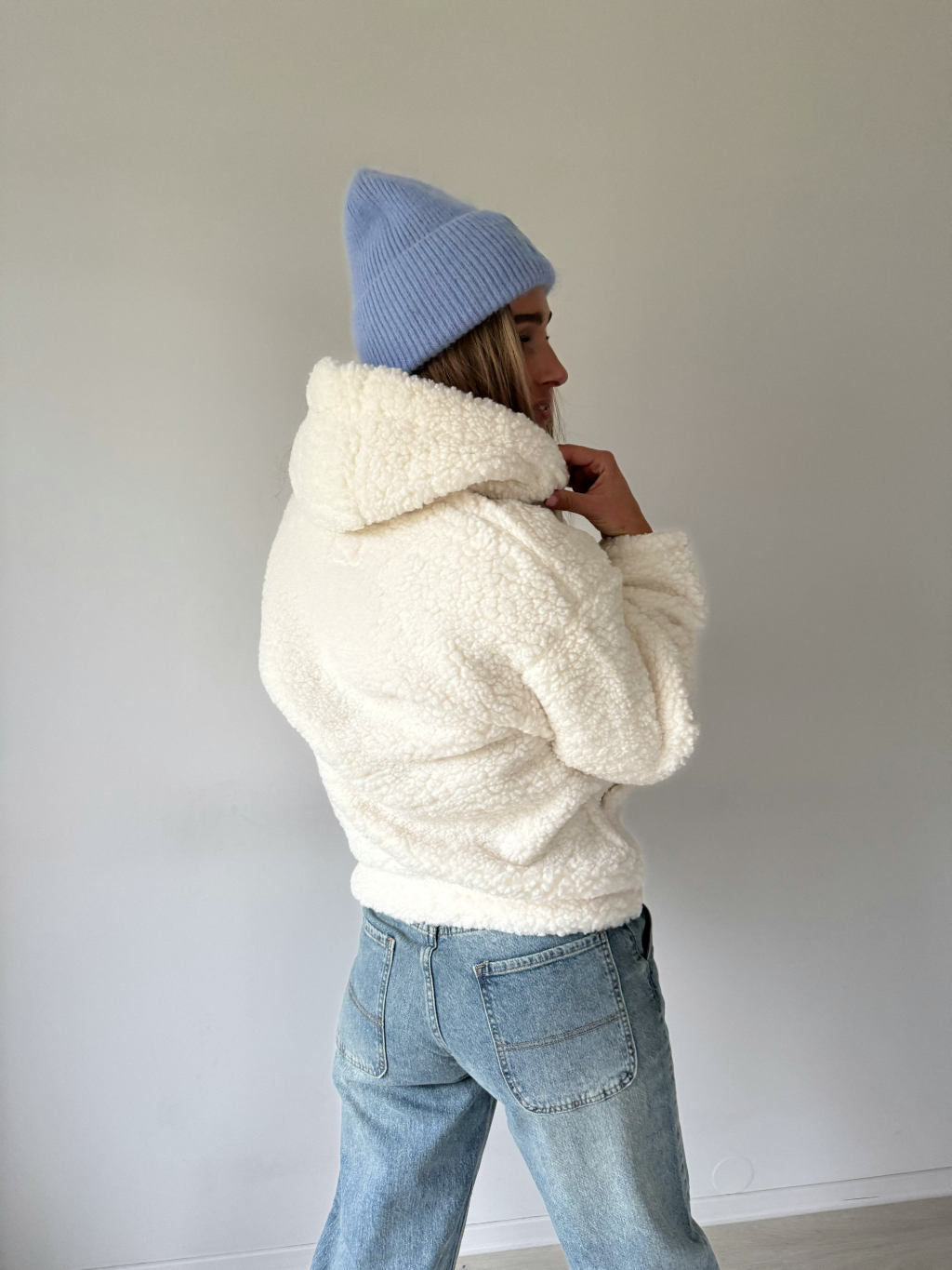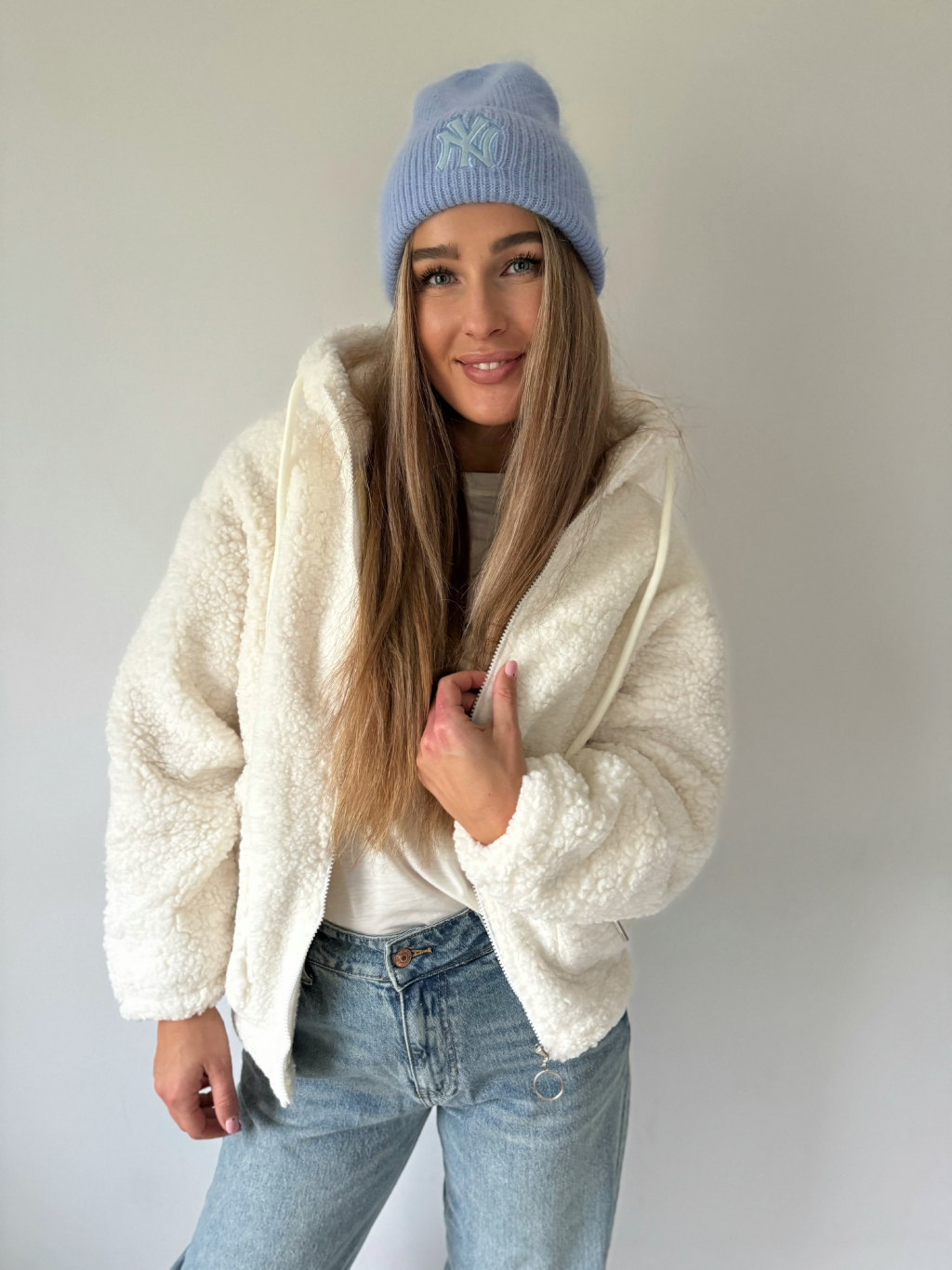 Bunda s kapucí a zapínáním na zip. Bunda je uvnitř zateplená.