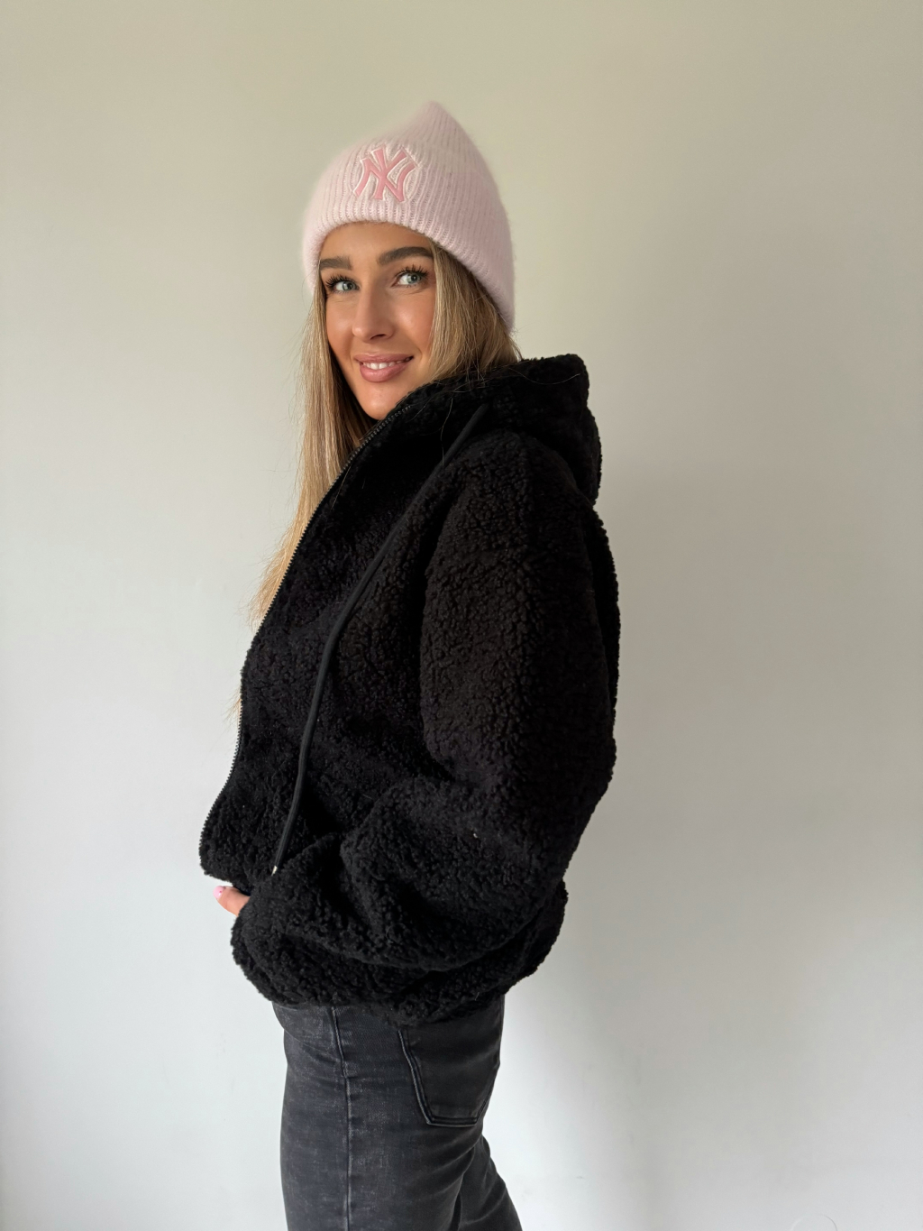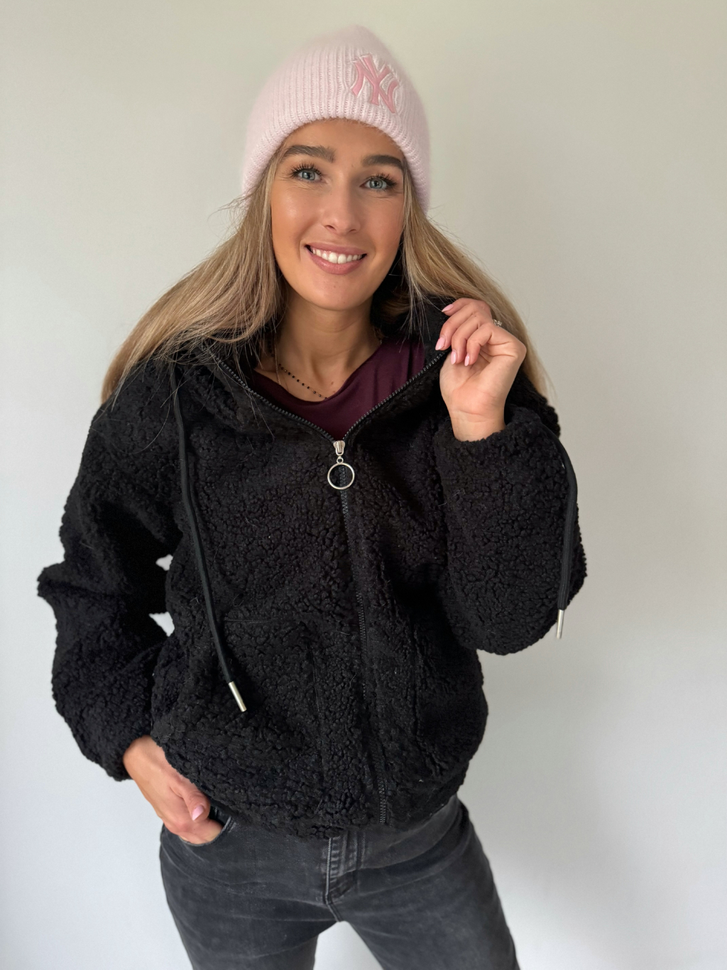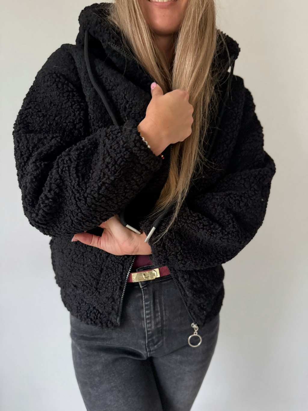 Bunda s kapucí a zapínáním na zip. Bunda je uvnitř zateplená.
