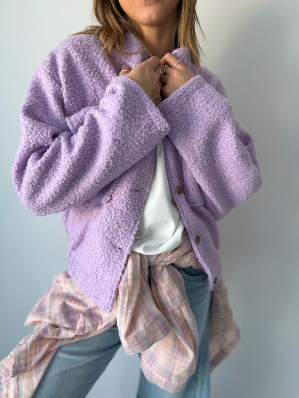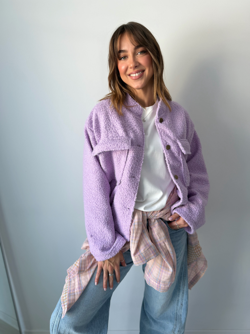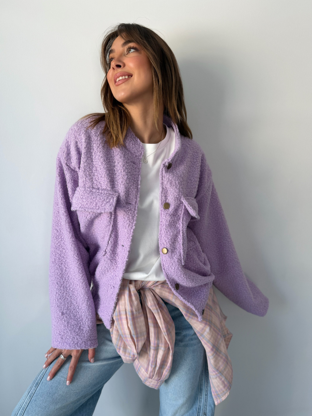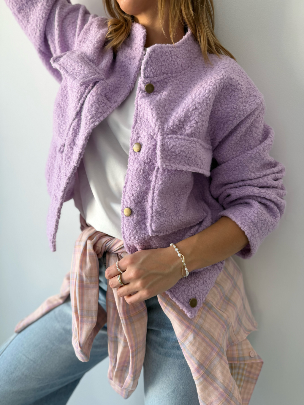 Stylová teddy bunda na knoflíky v moderním provedení s elastickým spodním lemem, která vytváří pěkný tvar. Měkký teddy materiál zajišťuje příjemné teplo a maximální komfort při nošení. Design doplňují dvě výrazné rovné kapsy na prsou.