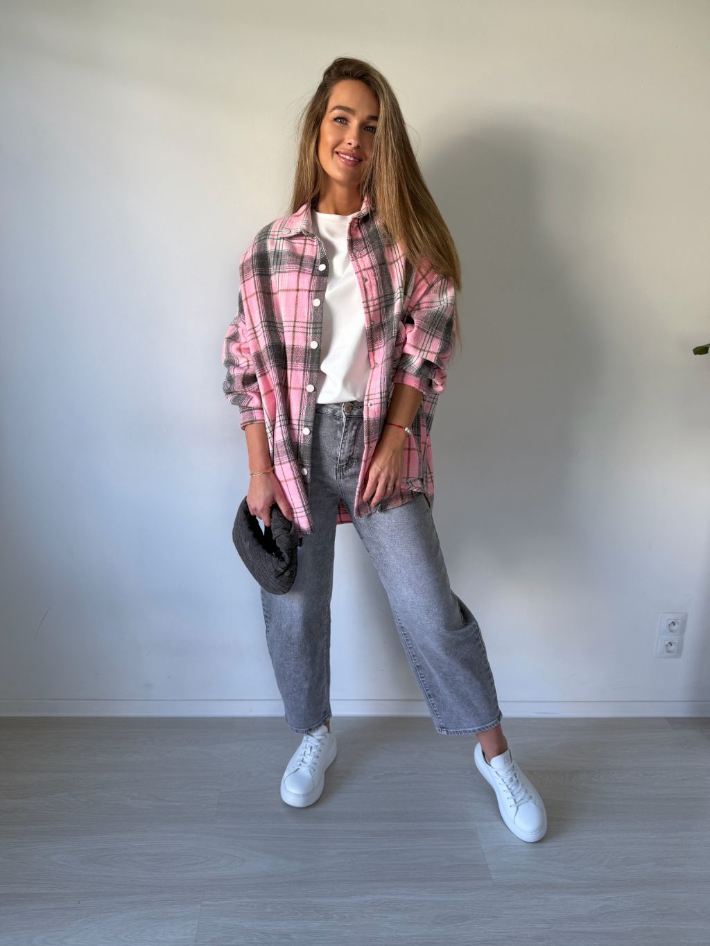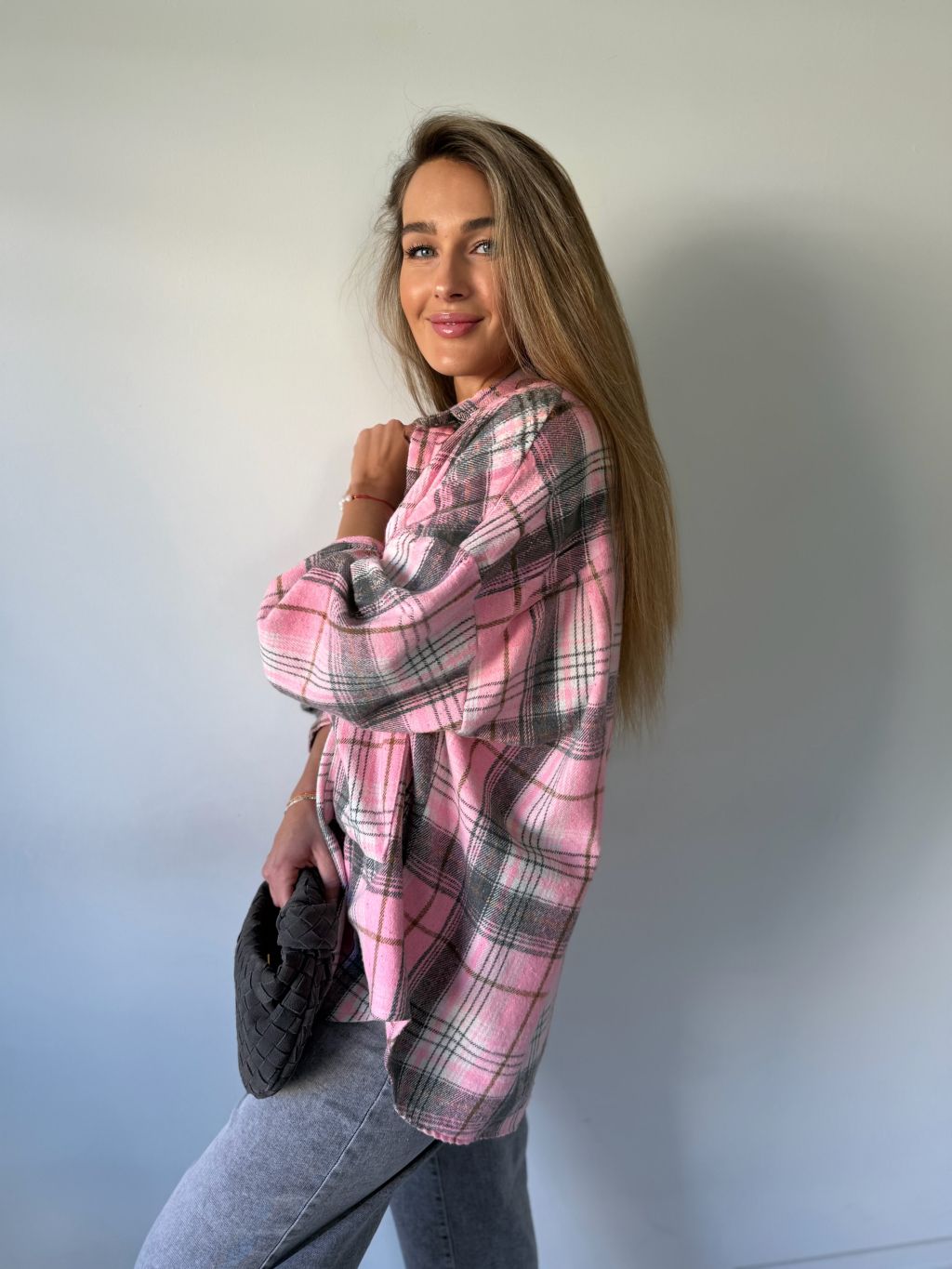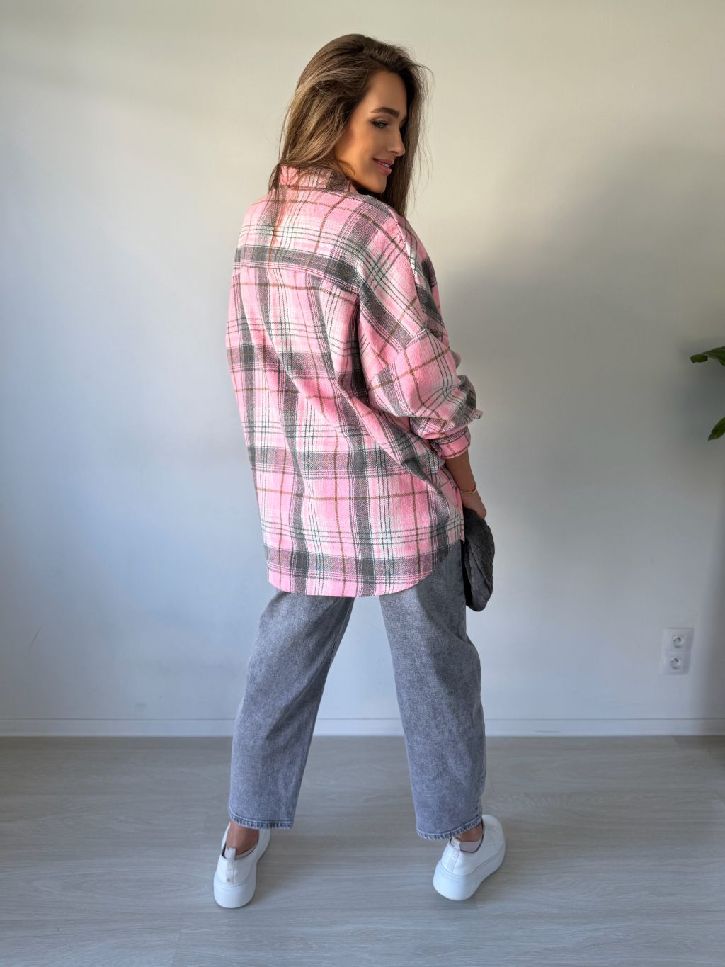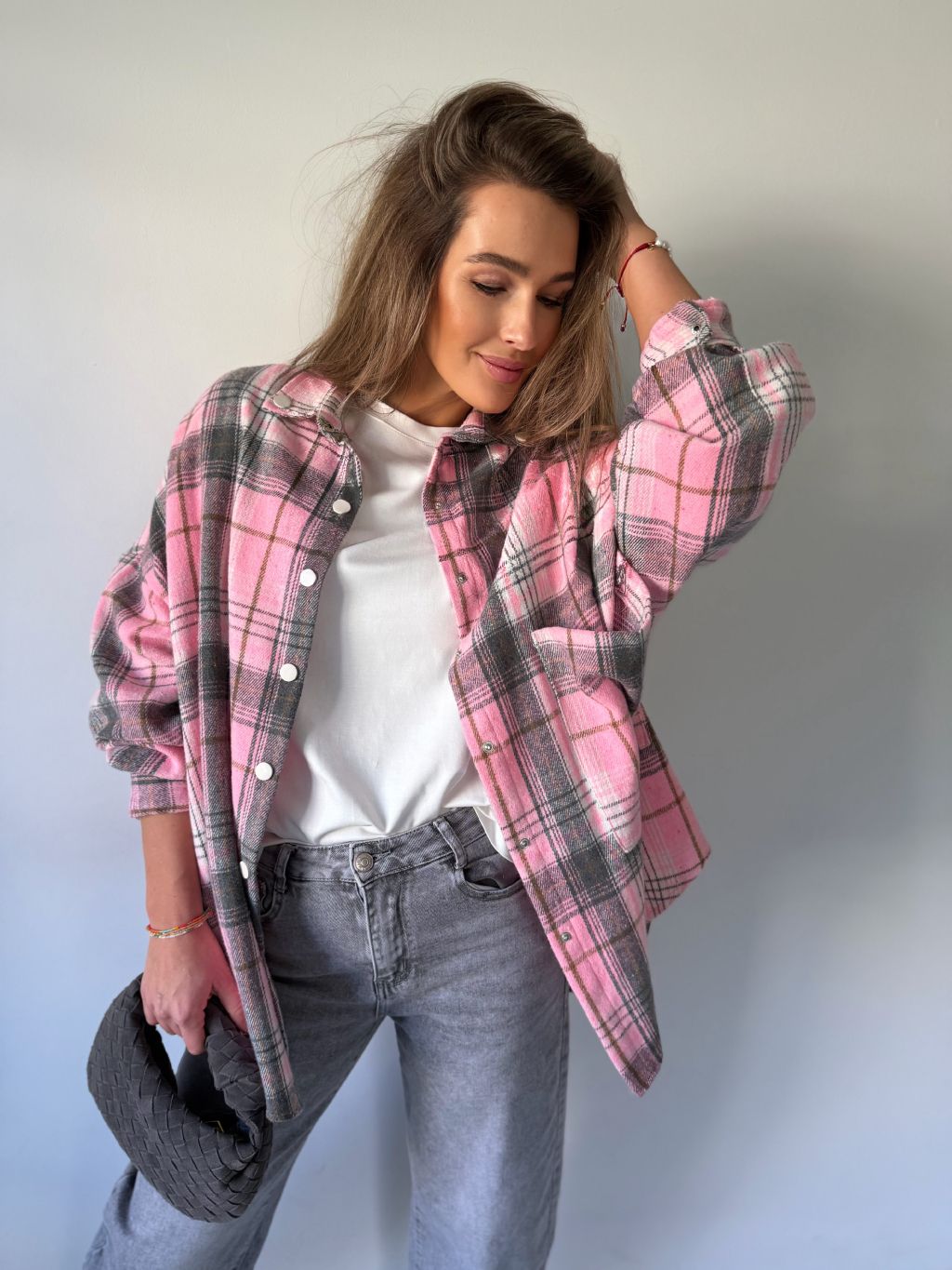 flanelová košile, košile, károvaná košile, růžová košile, volná košile