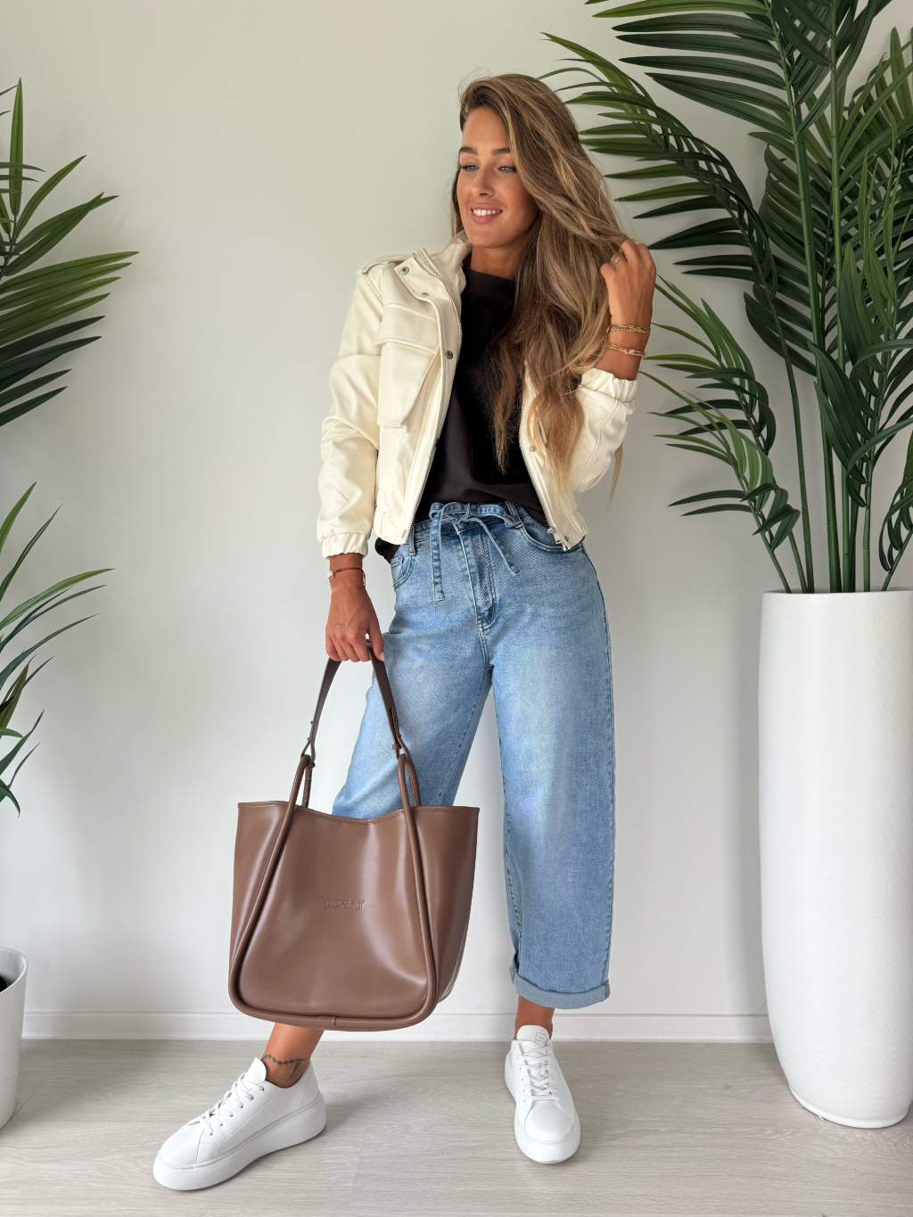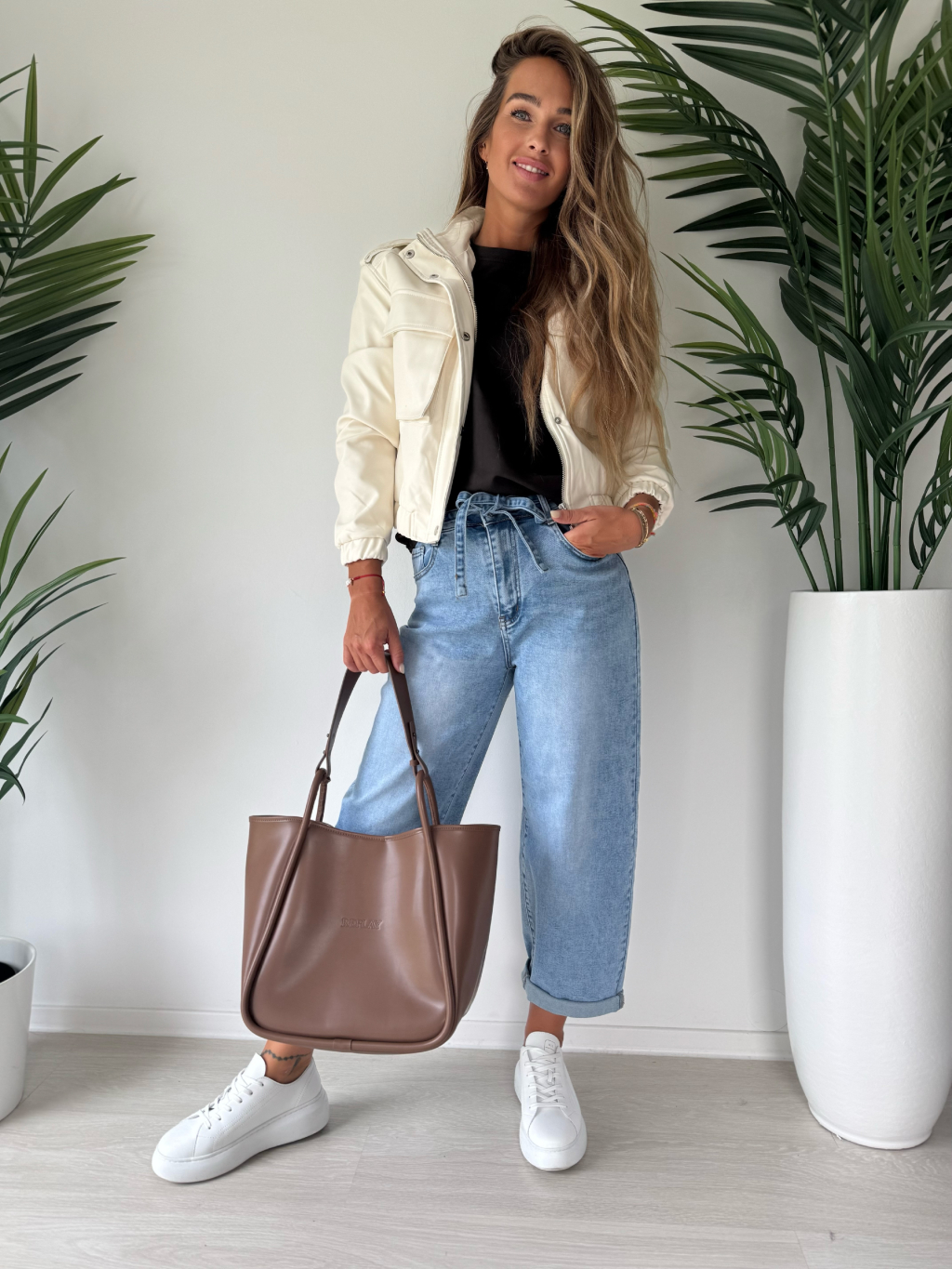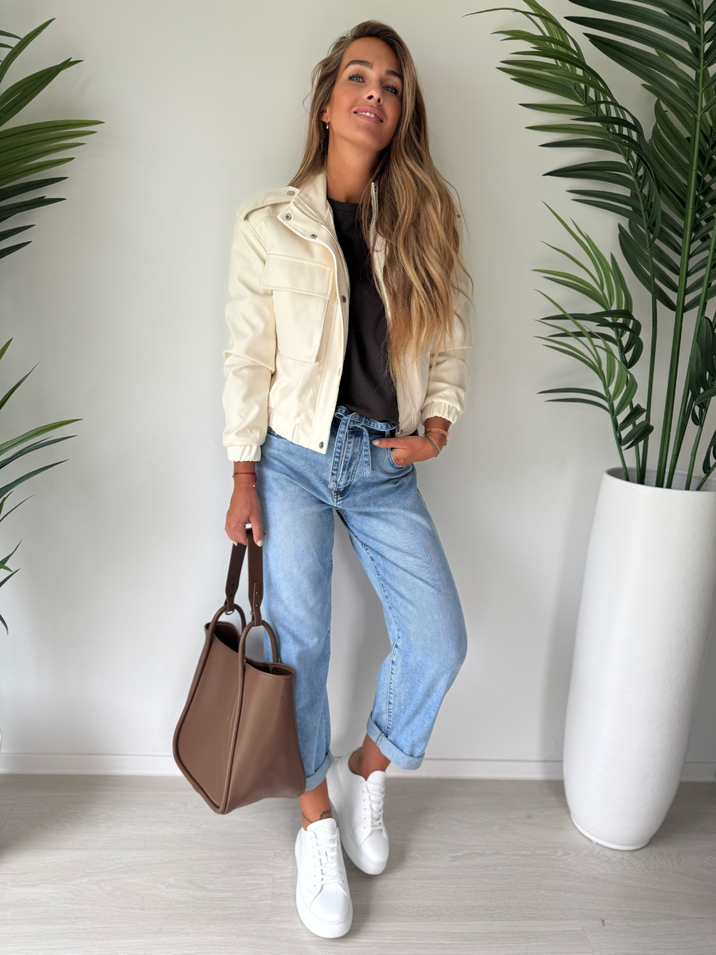 Naše modelka měří 173 cm, běžně obléká vel. S na sobě má vel. M