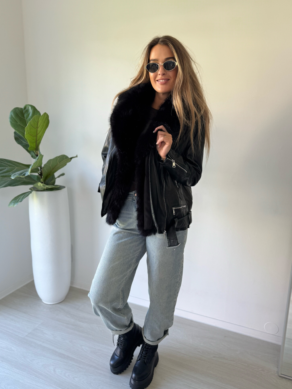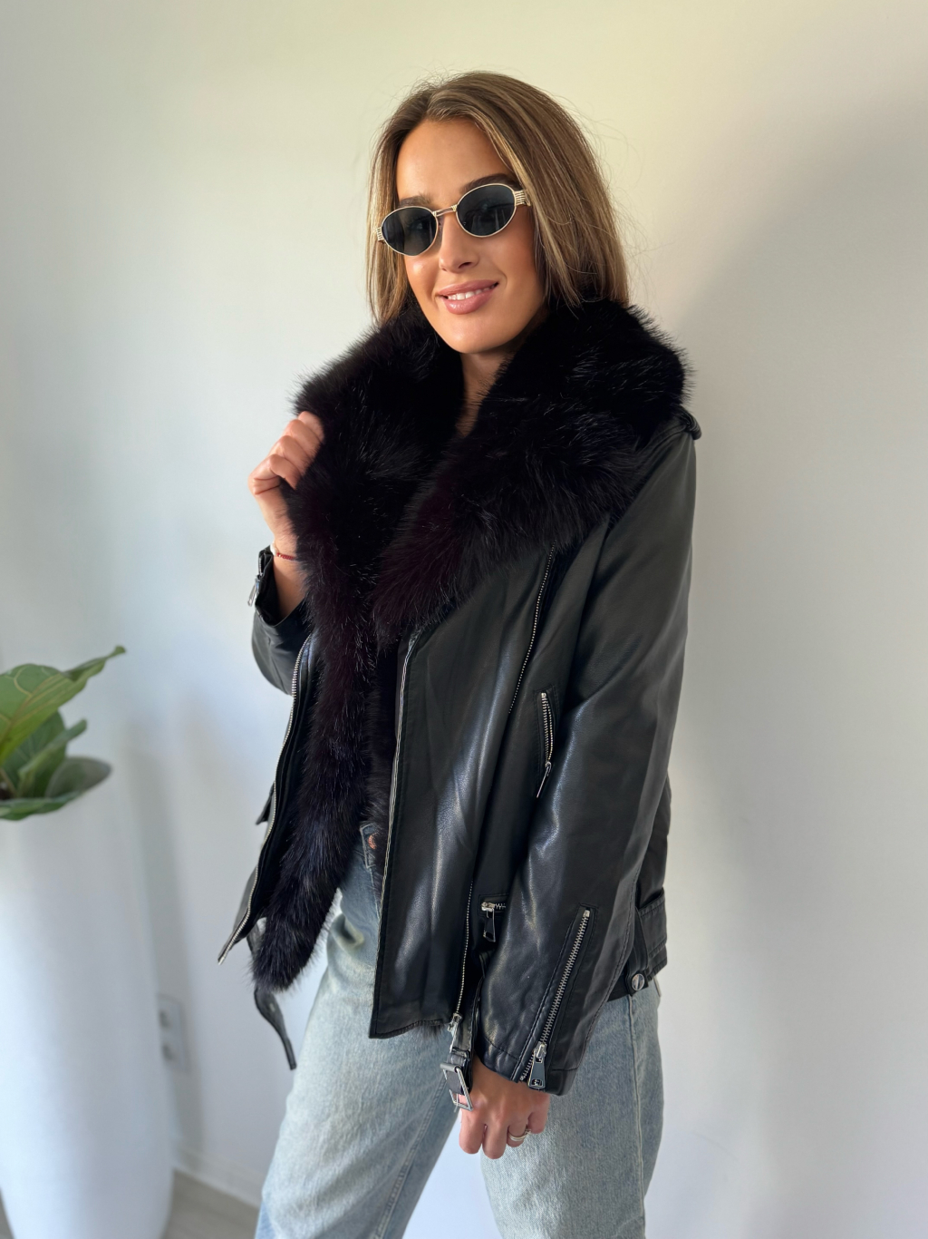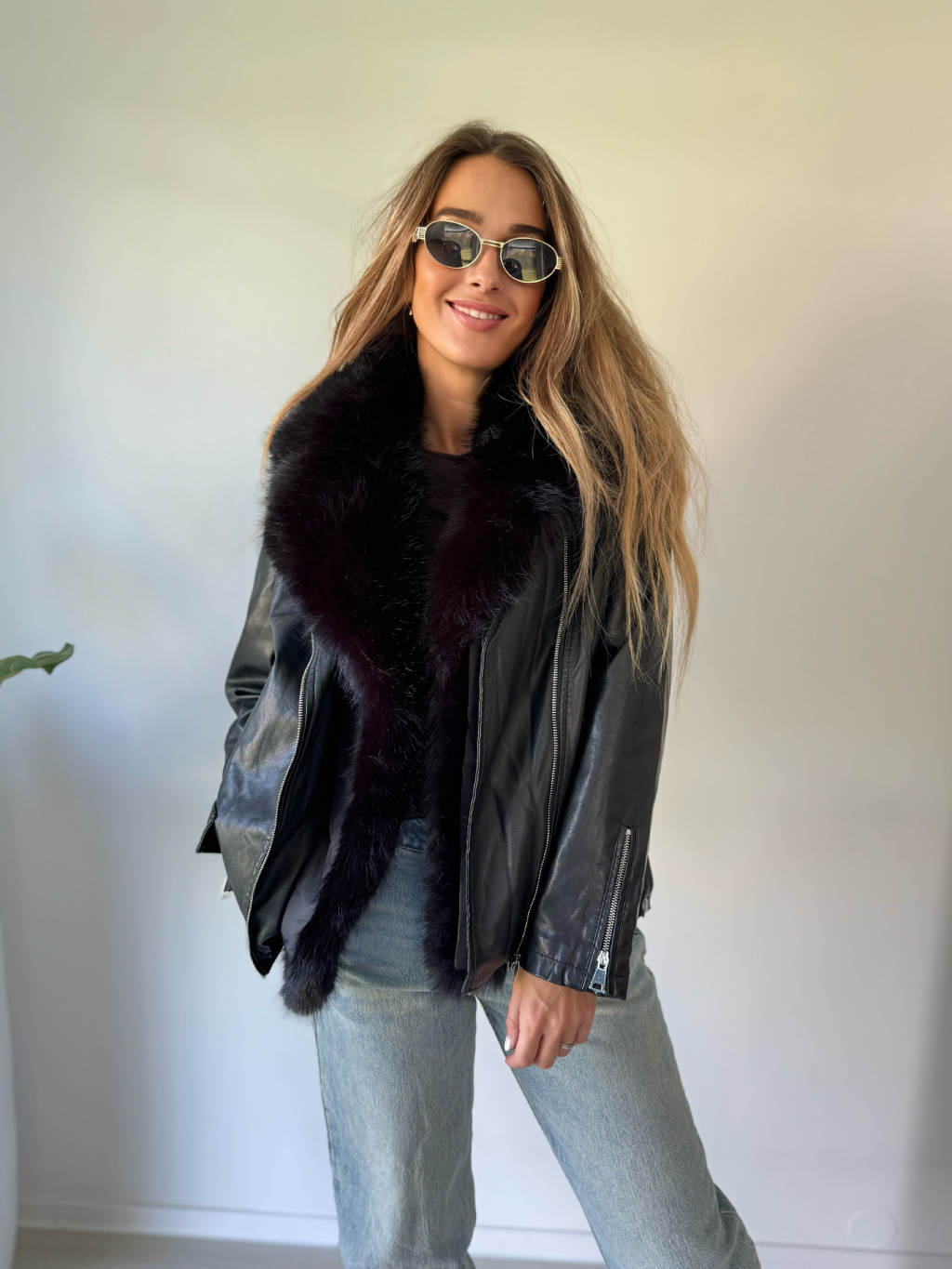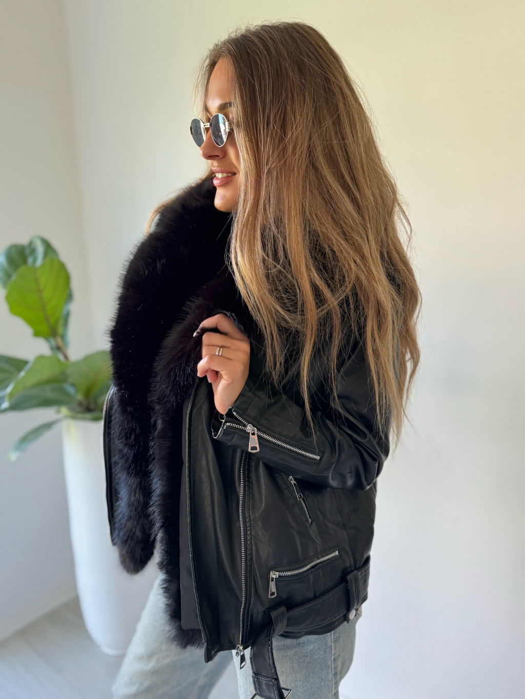 Kožešinu kolem krku lze odepnout. Bunda je uvnitř zateplená.