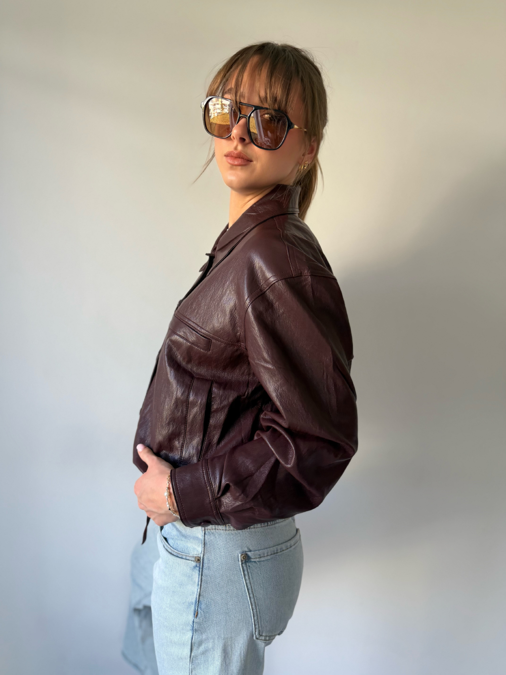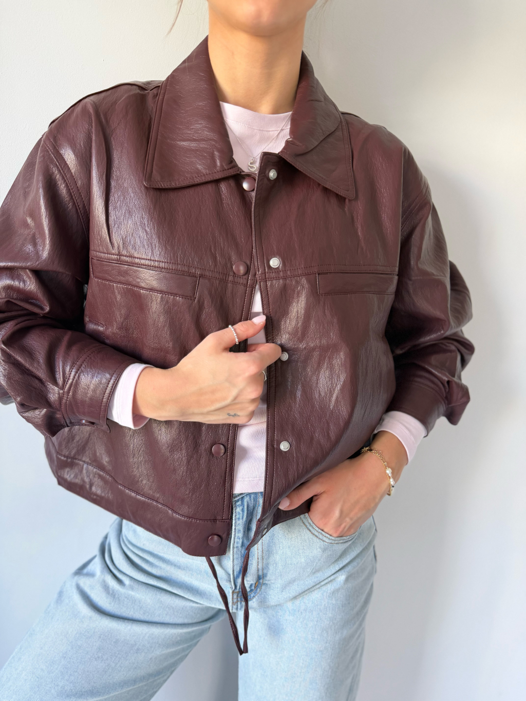Koženková bunda vínová
