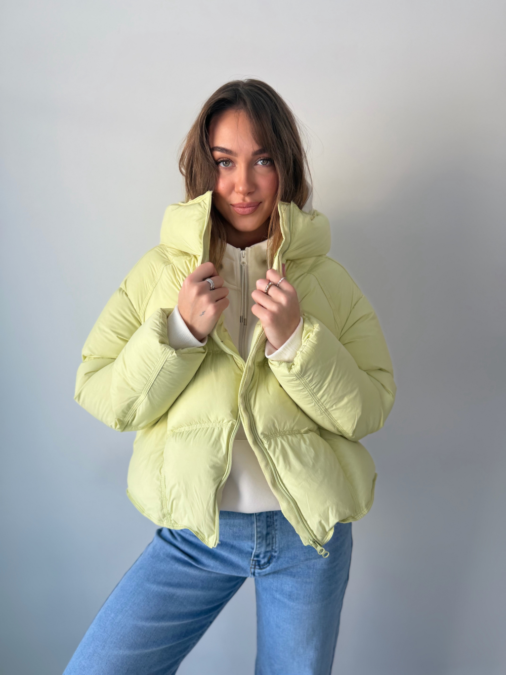 Luxusní trendy bunda, krátká bunda, příměs peří, bunda s peřím