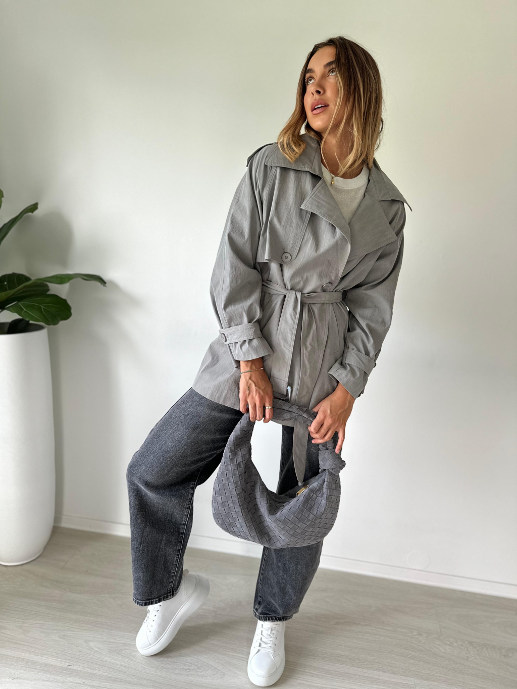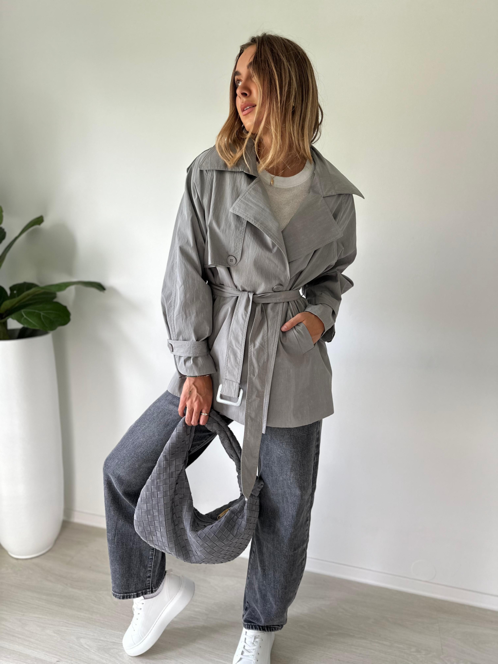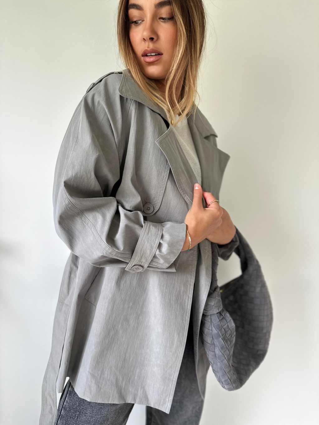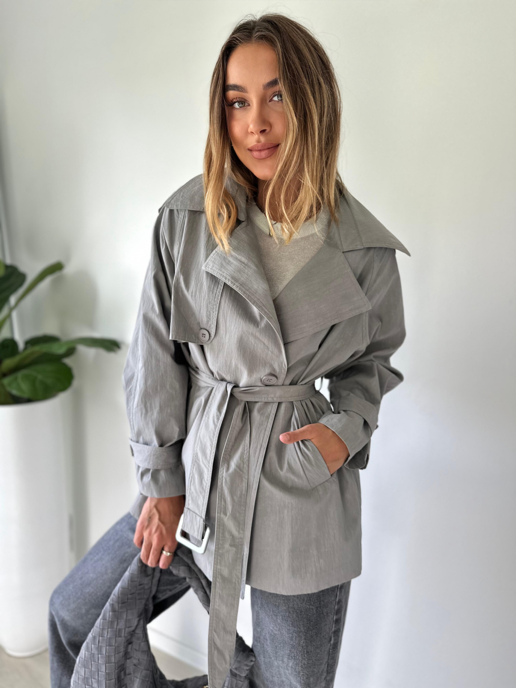 Krátký trenčkot šedá