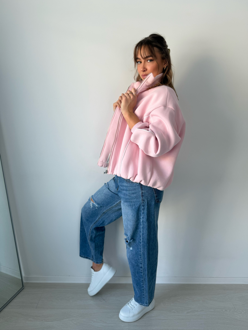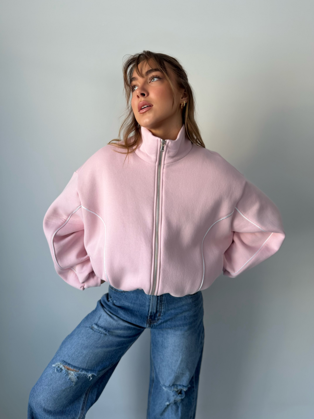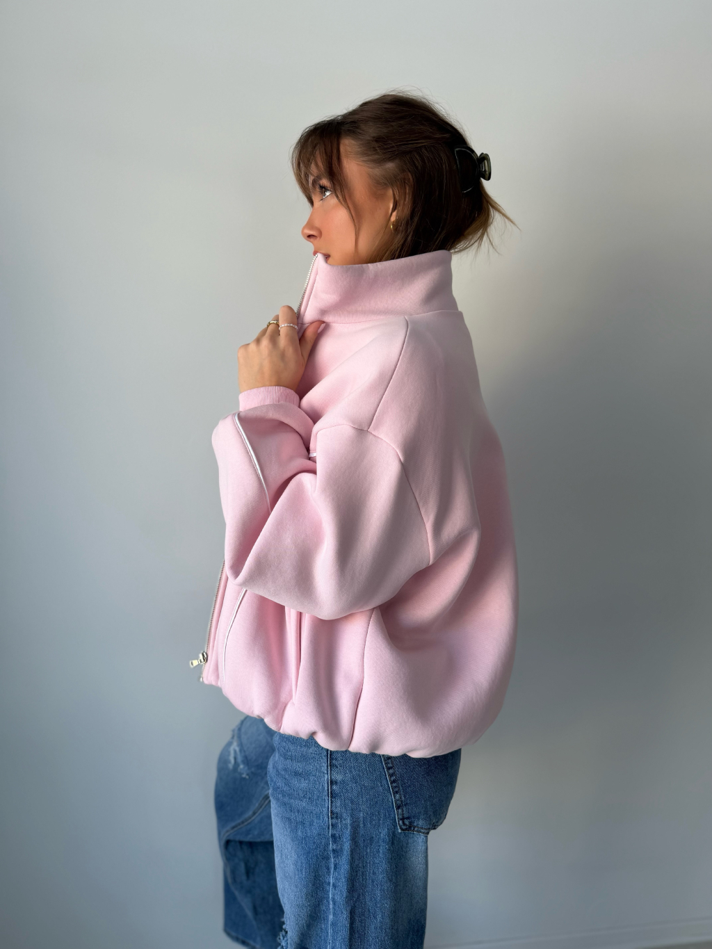 mikinový bomber, teplákový bomber, bomber, elegantní bomber, sportovní bomber, mikina, stojací límec
