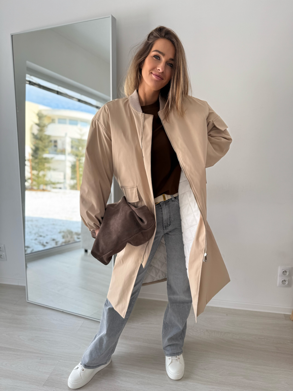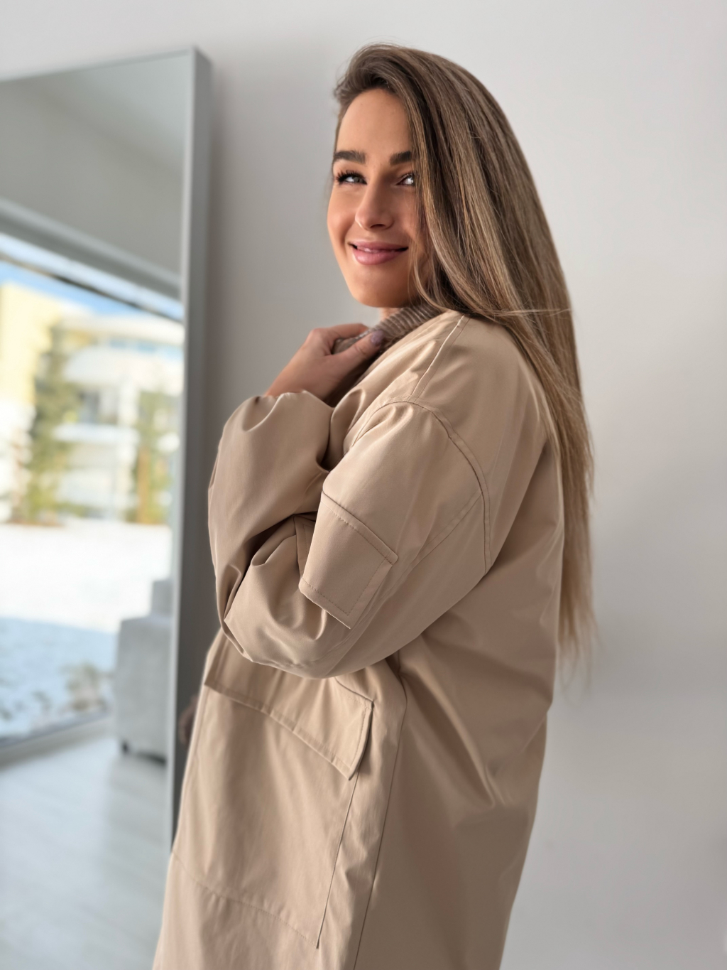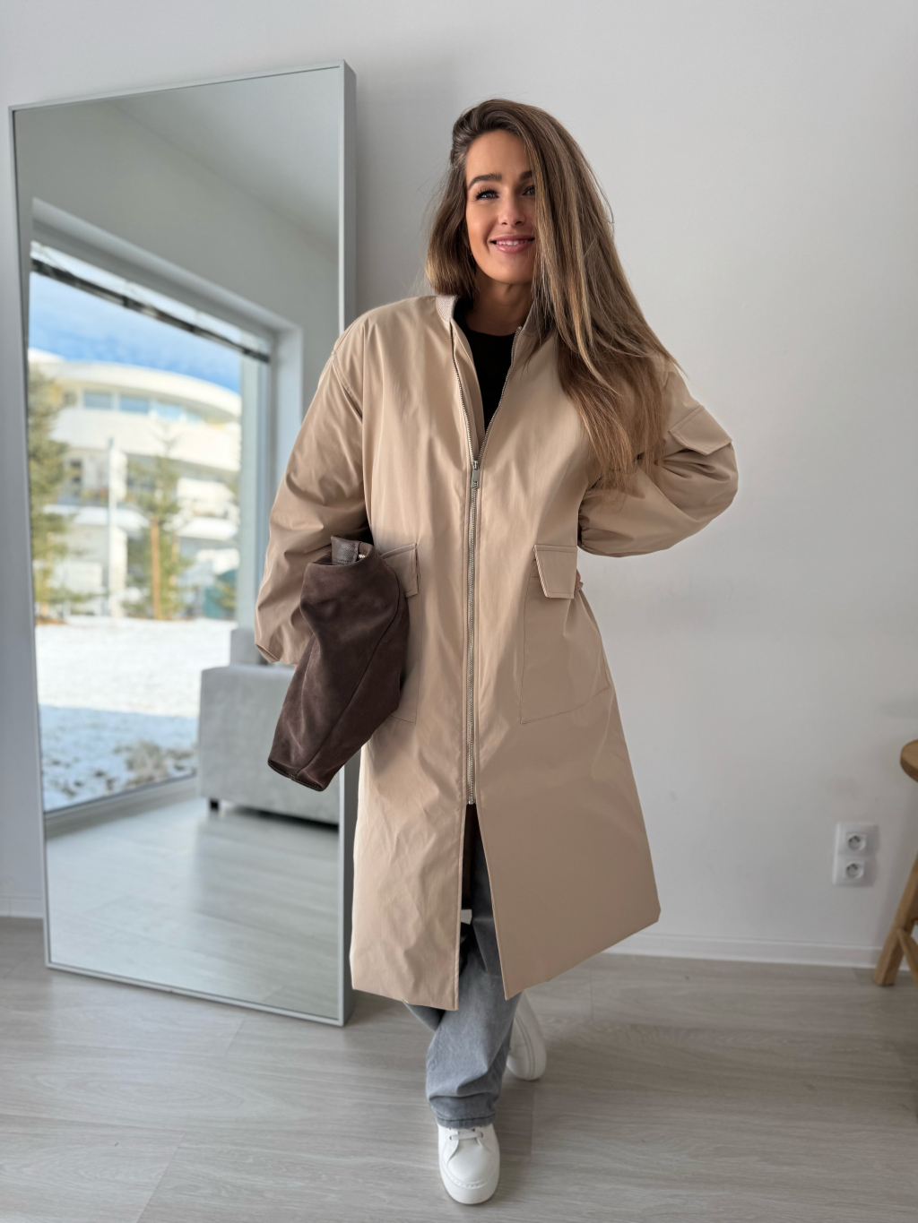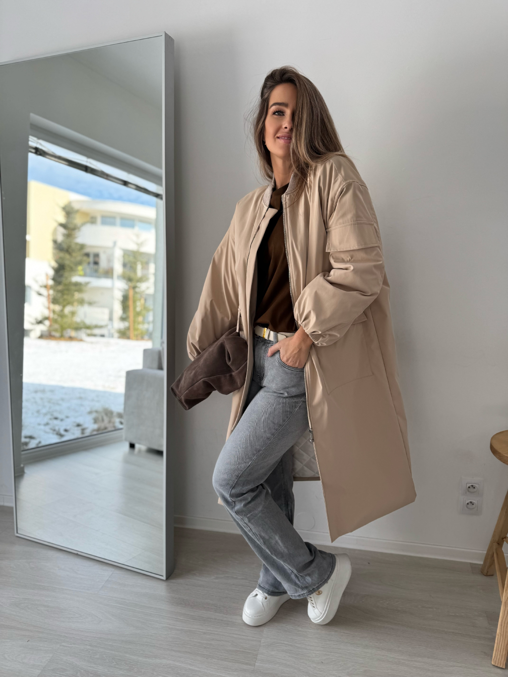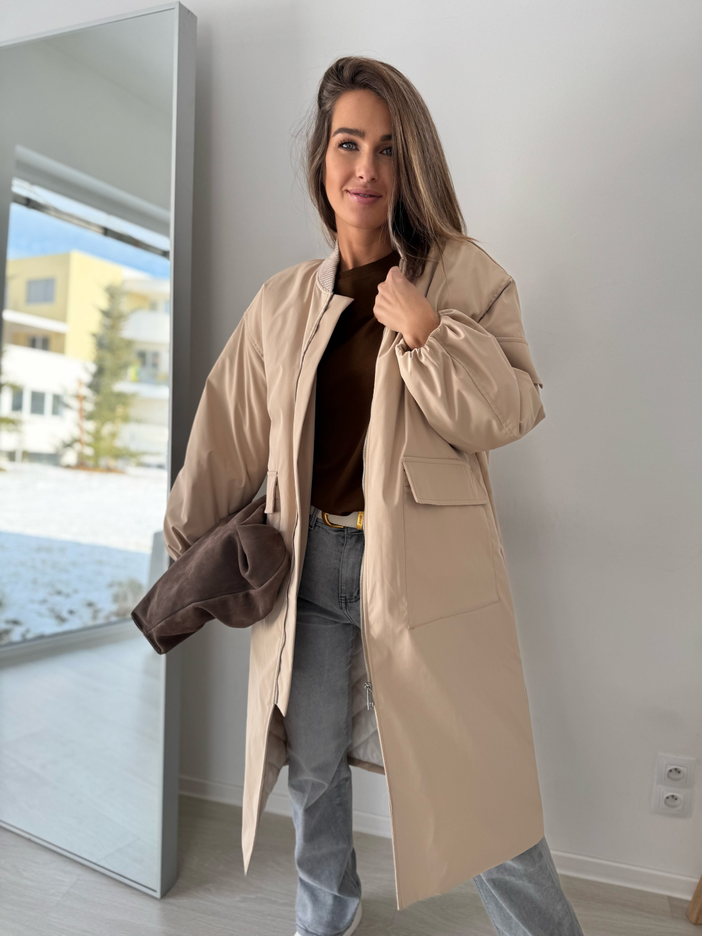Dlouhý bomber Kimmi krémová