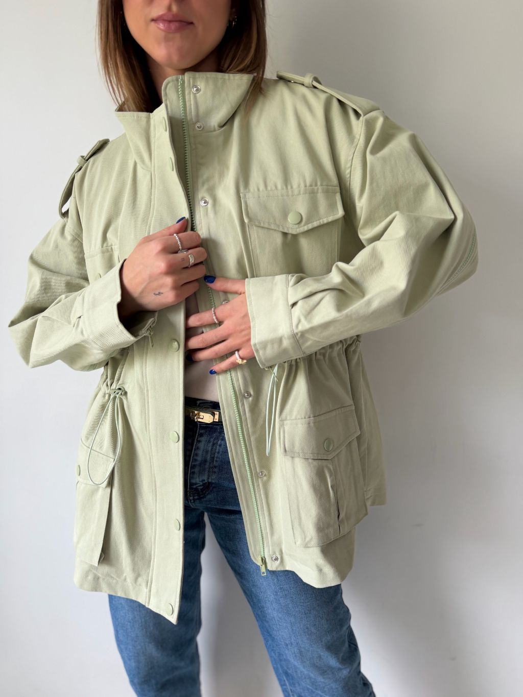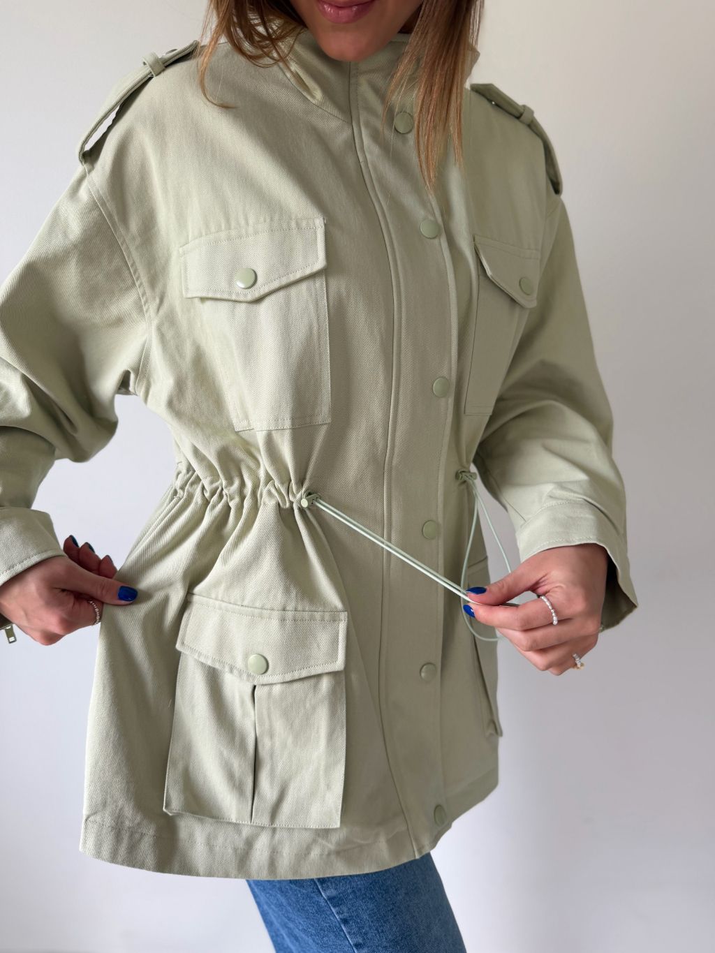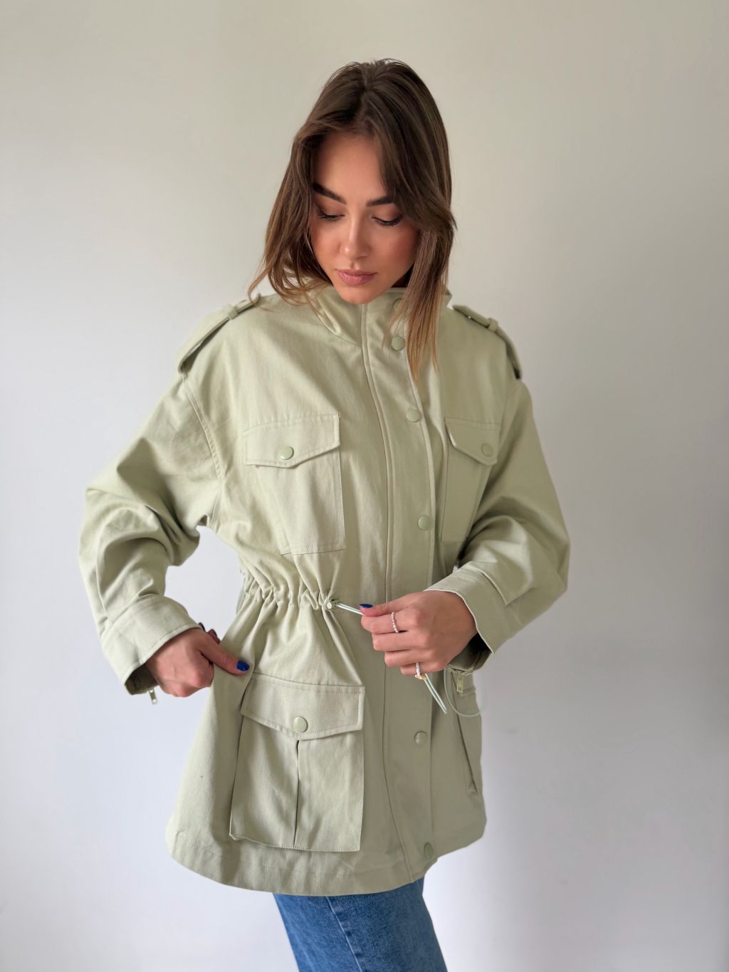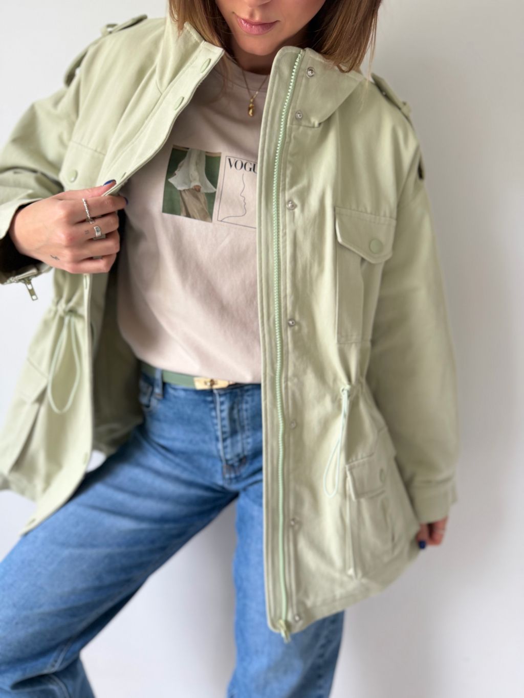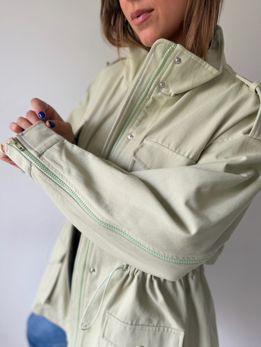 bunda, parka, zelená bunda, bavlněná bunda, bundička, bunda na stazeni v pase