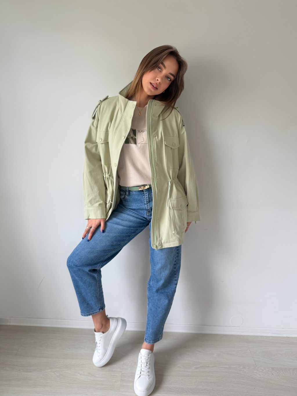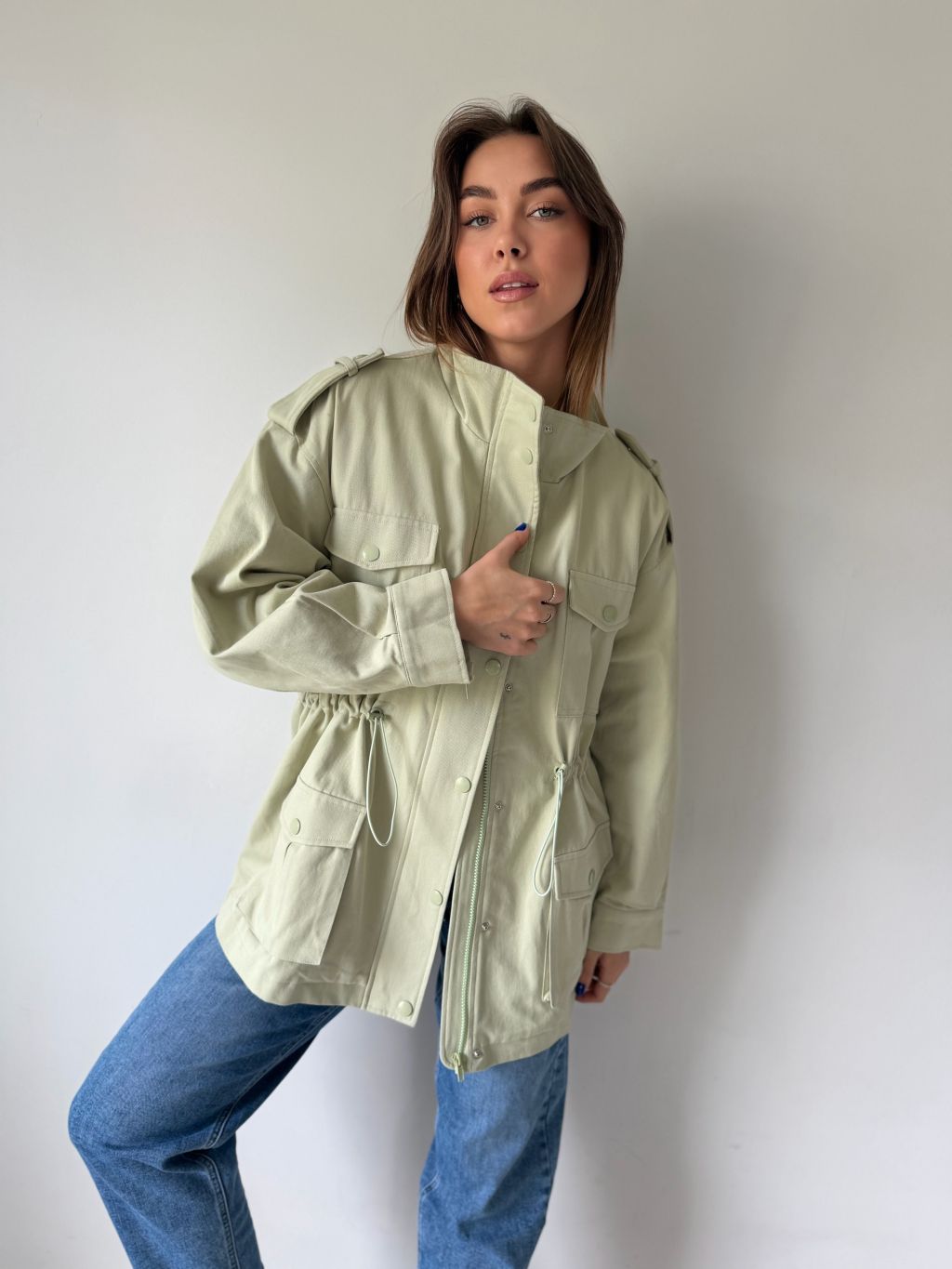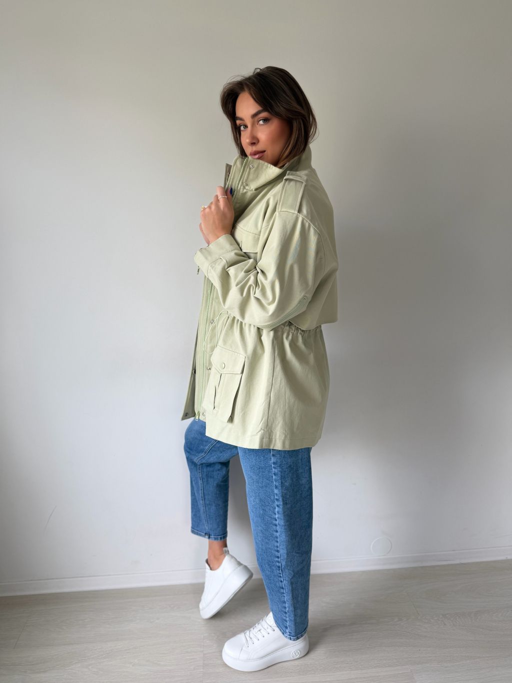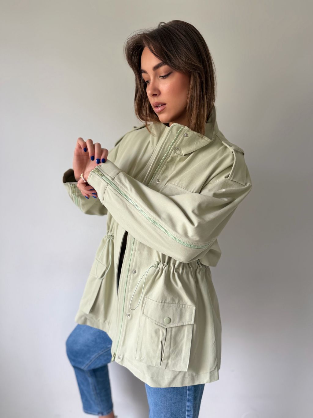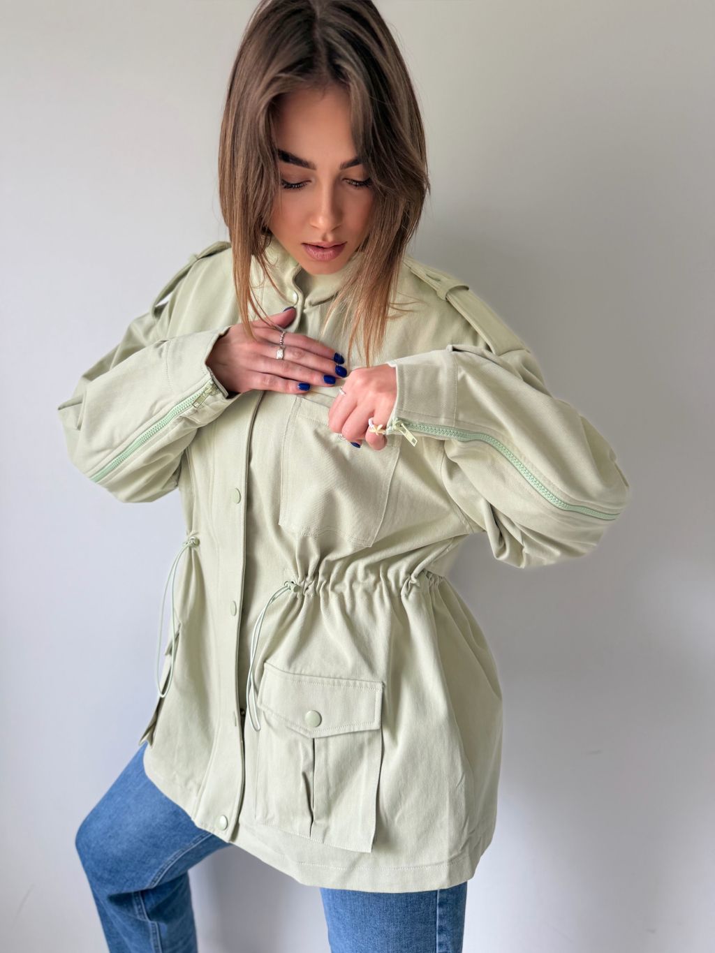 bunda, parka, zelená bunda, bavlněná bunda, bundička, bunda na stazeni v pase