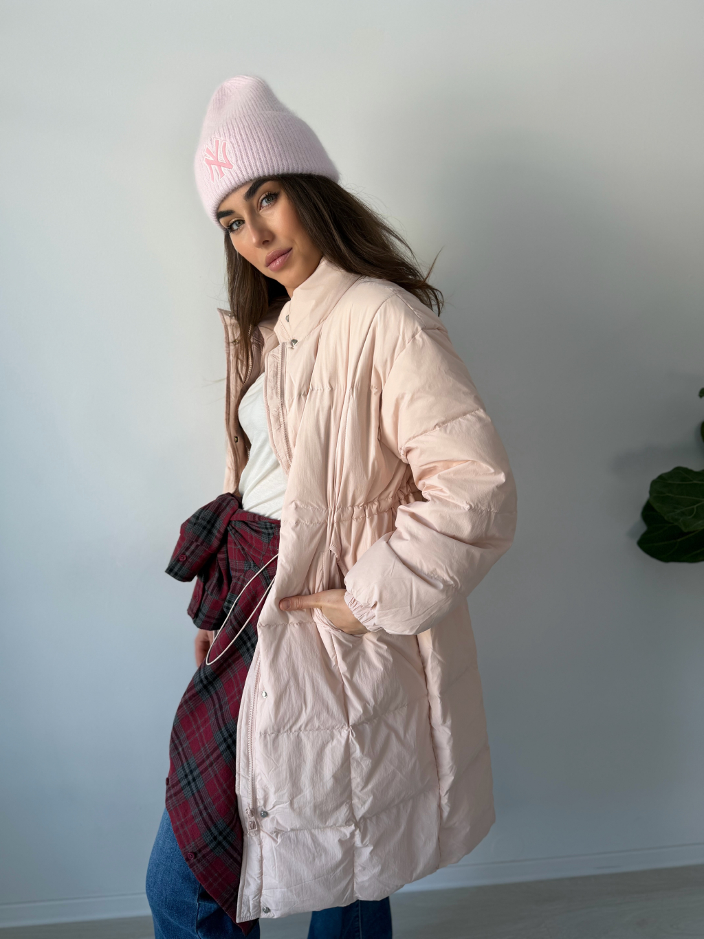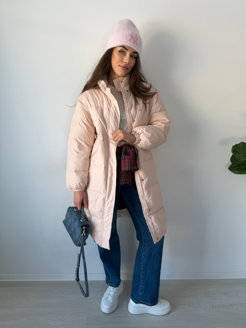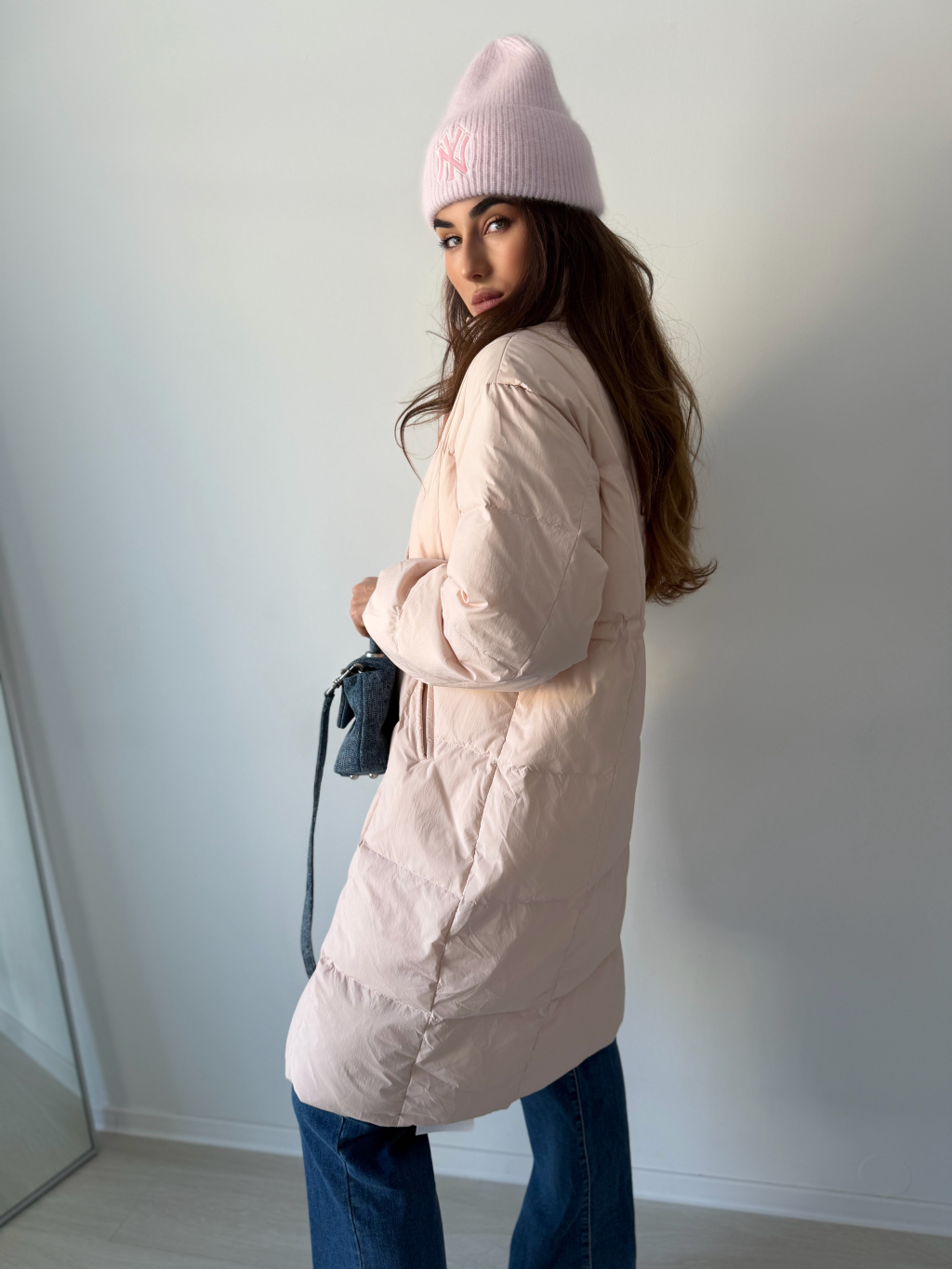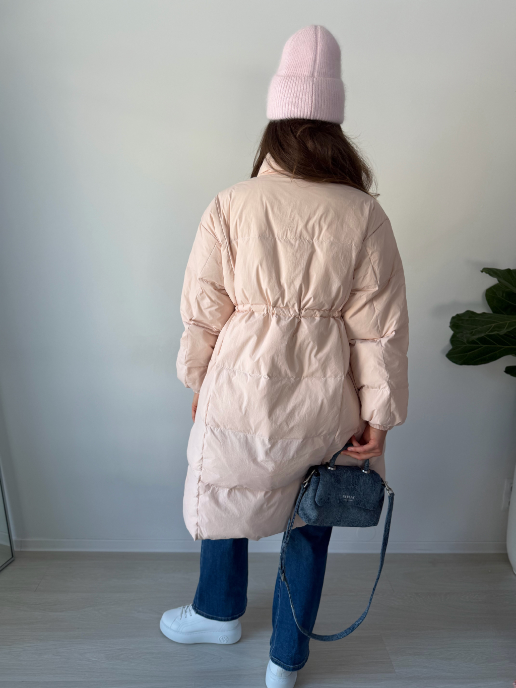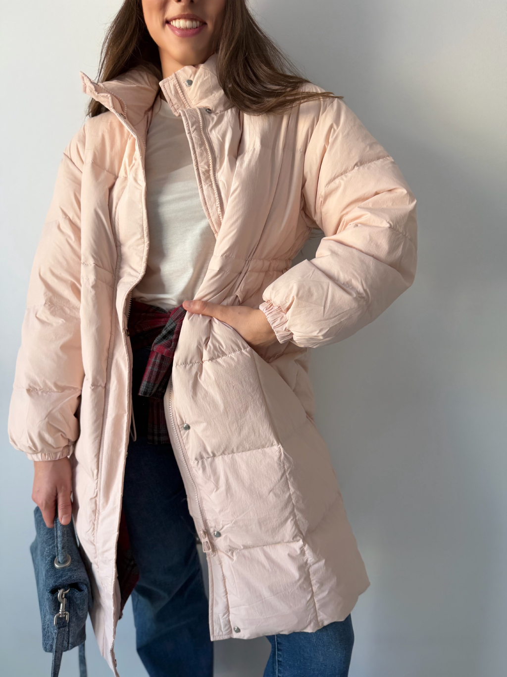 Luxusní dlouhá bunda s vysokým podílem výplně z kachního peří. Možnost stahování v pase zvýrazní vaši postavu. Dvě praktické kapsy.