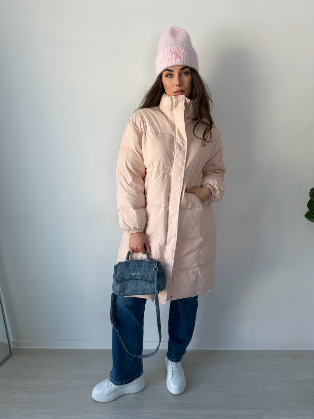 péřová bunda, dlouhá bunda, dlouhá péřová bunda, kabát s příměsí peří, luxusní bunda, luxusní kabát