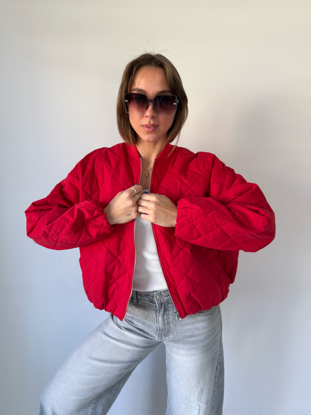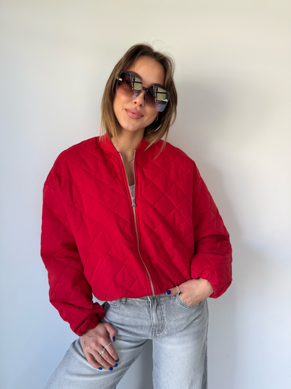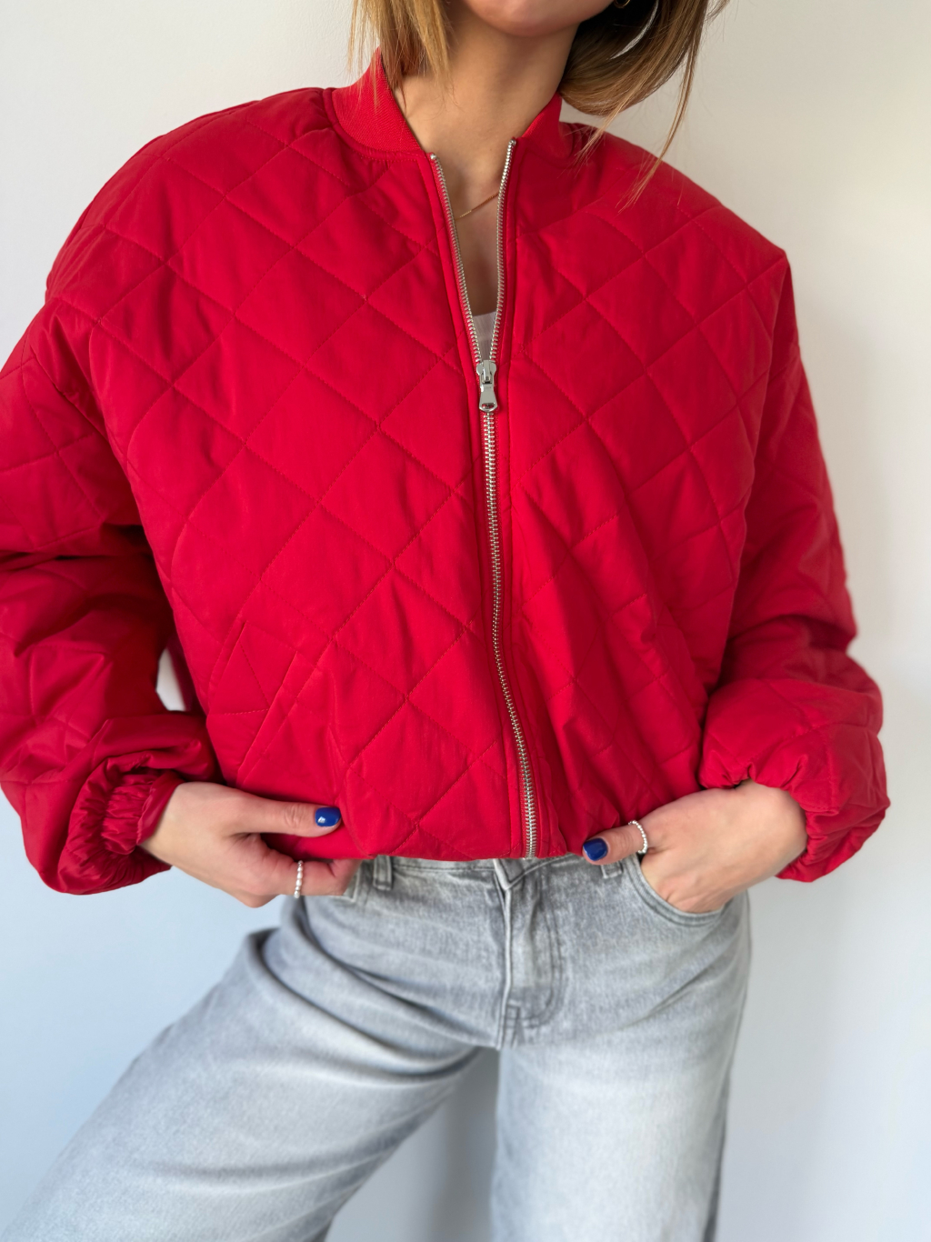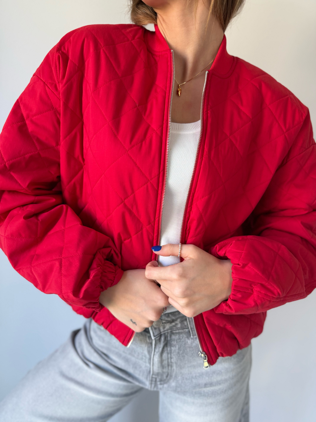 Prošíváná bunda červená