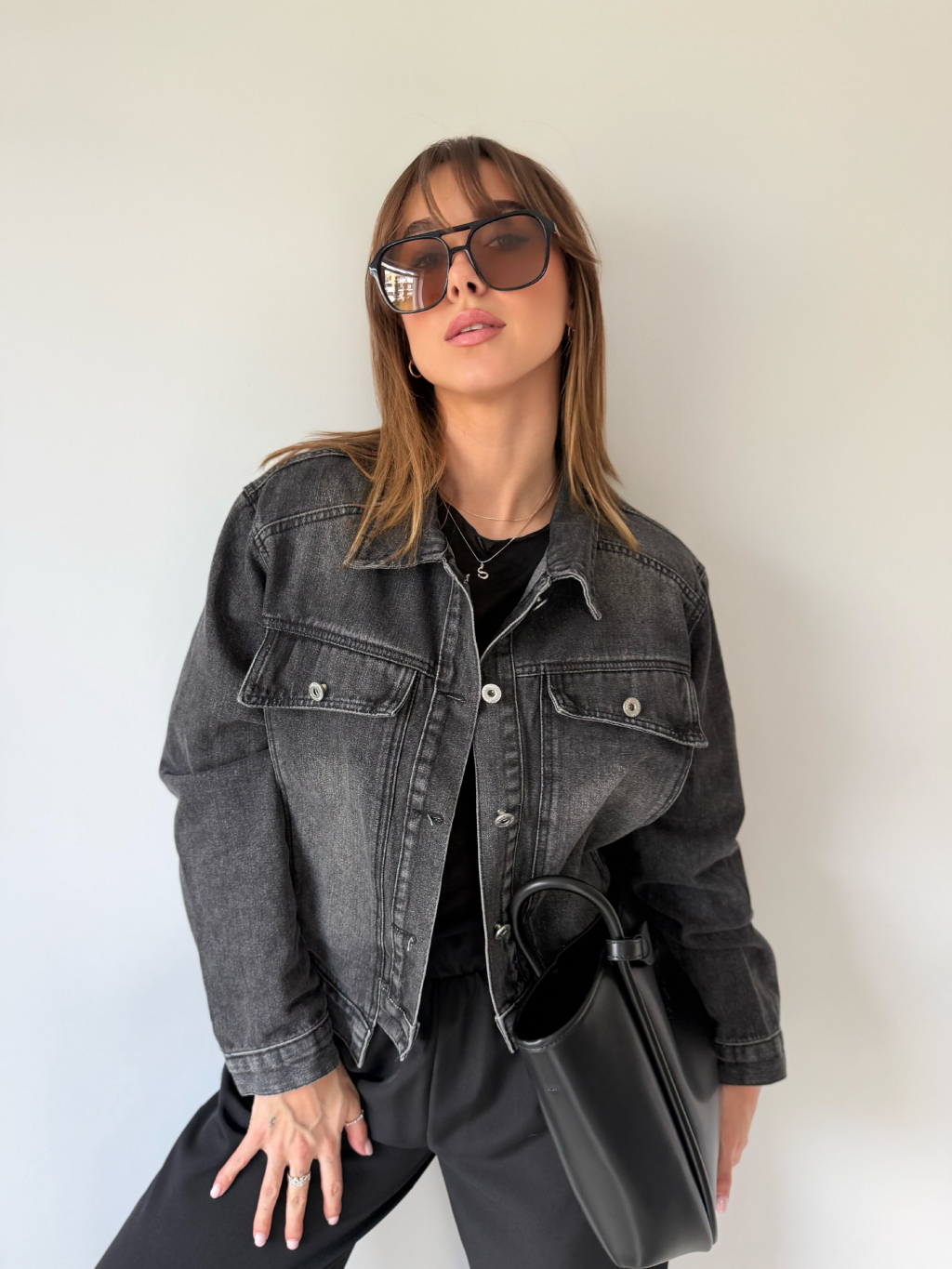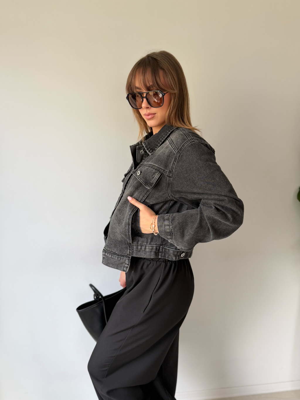 bunda s přesahy, krátka černá bunda, bundička, riflová bunda, černá bundička, černá riflová bundička