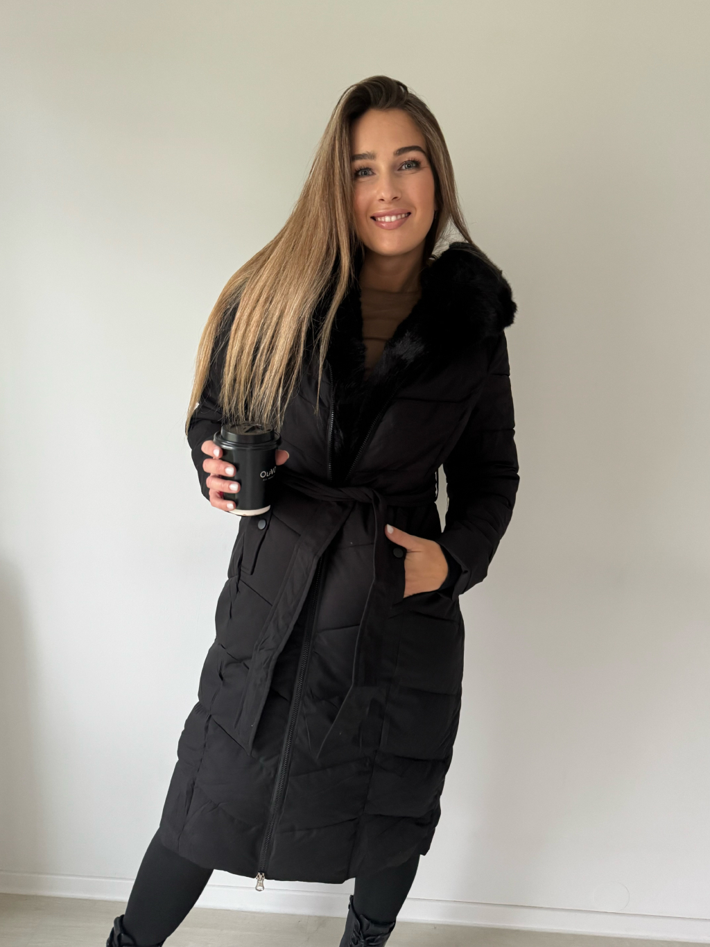 Zimní bunda s kožíškem černá