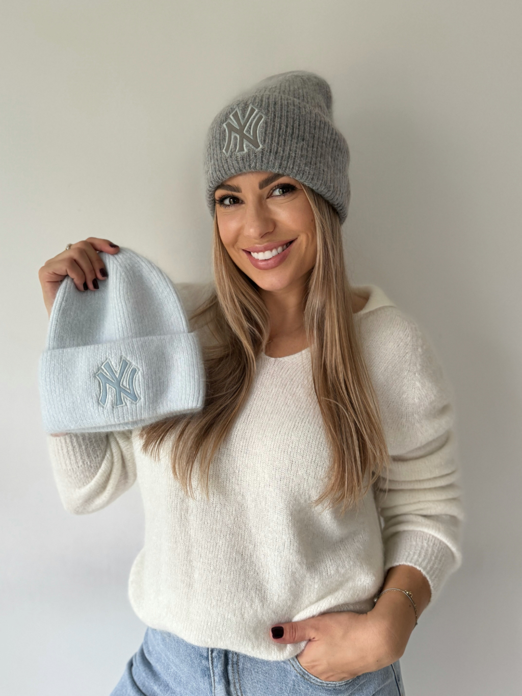 Čepice NY šedá/ azurová