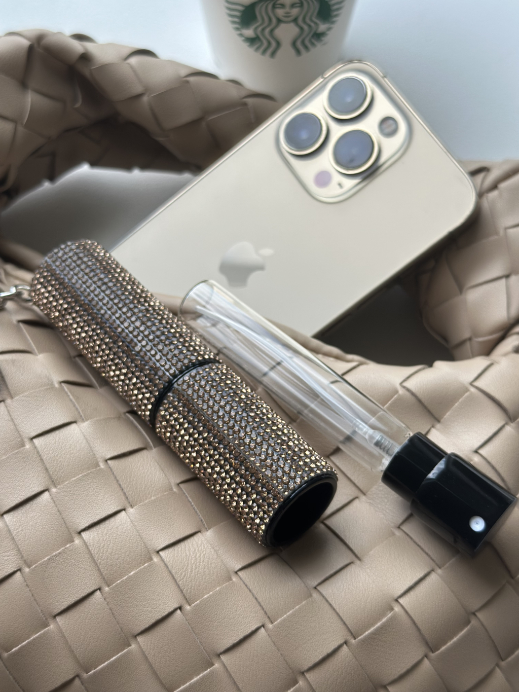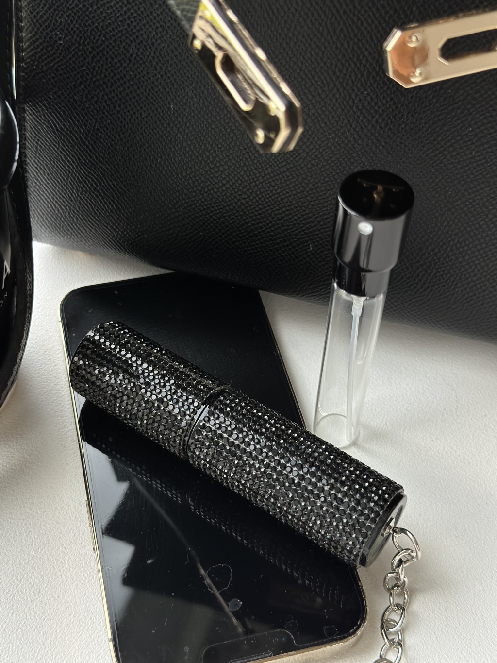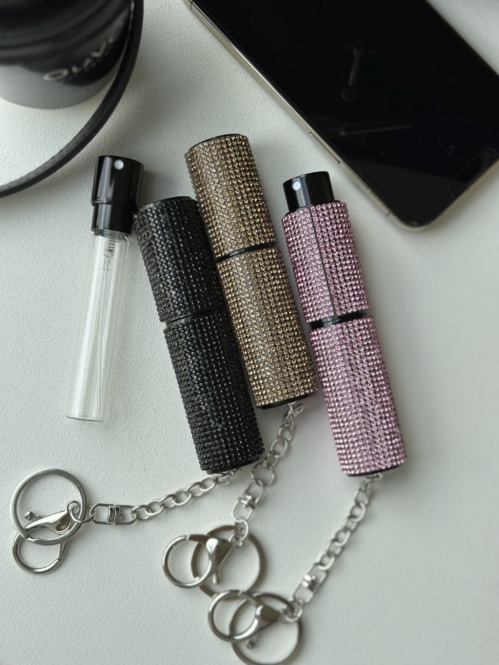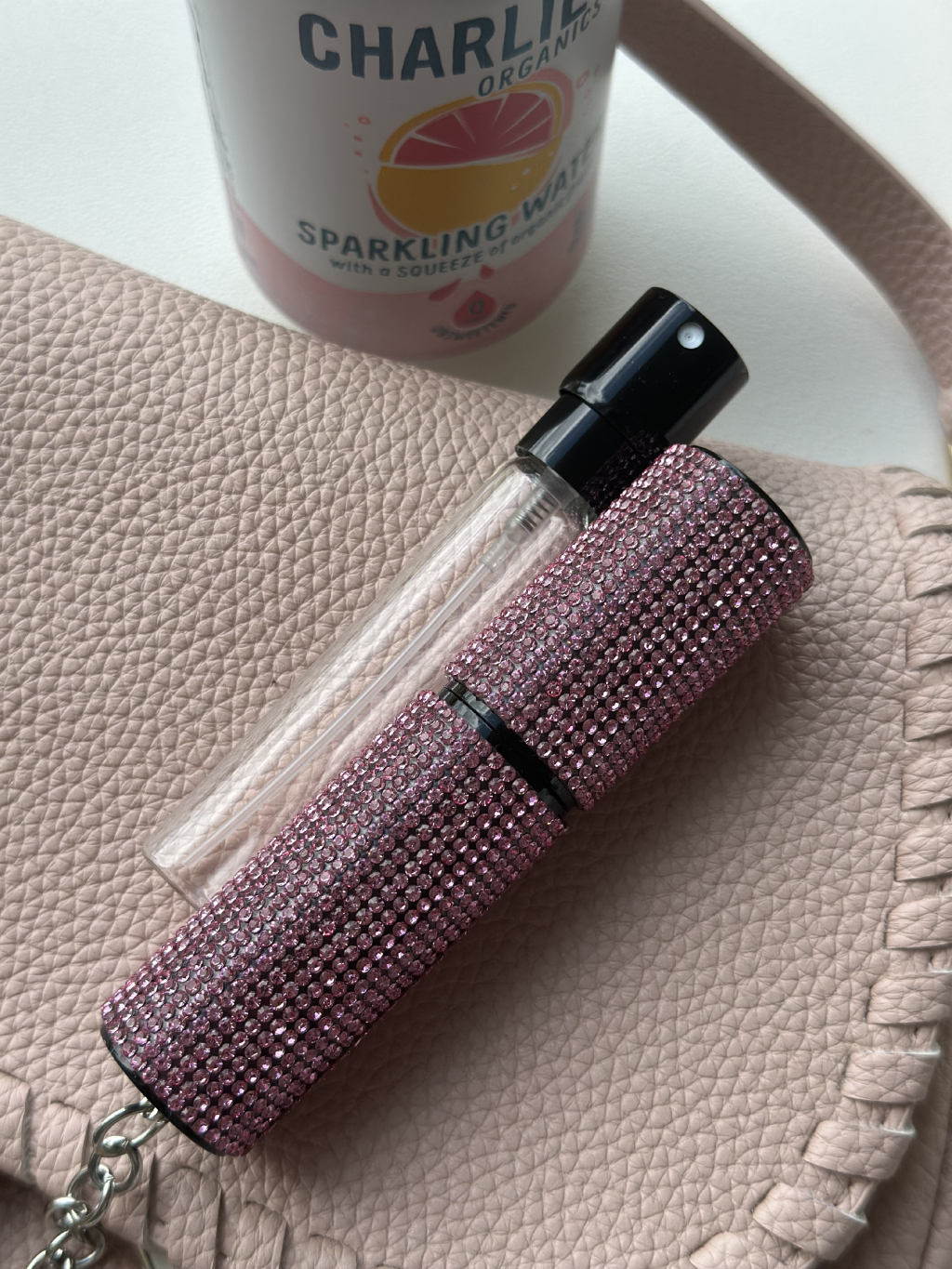 Doplňovací flakon na prfém s kamínky.