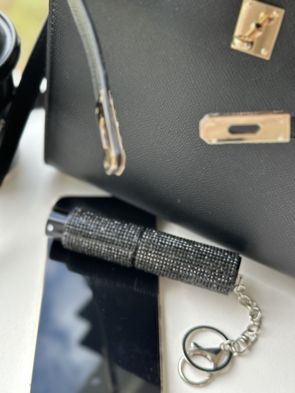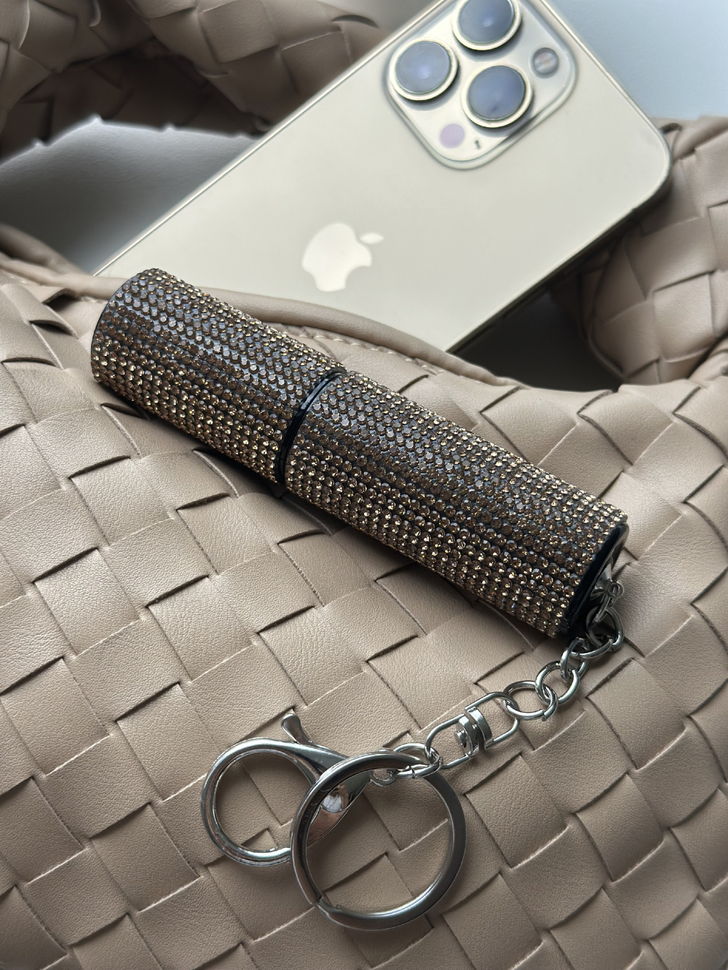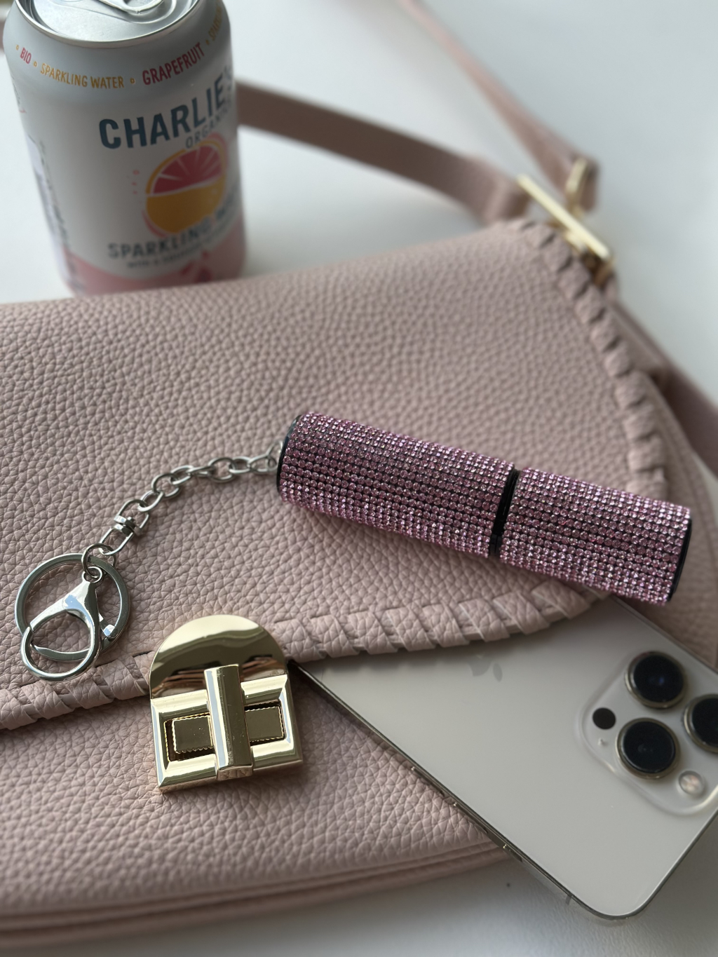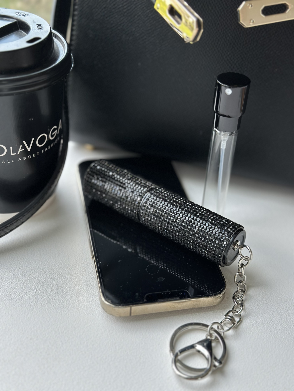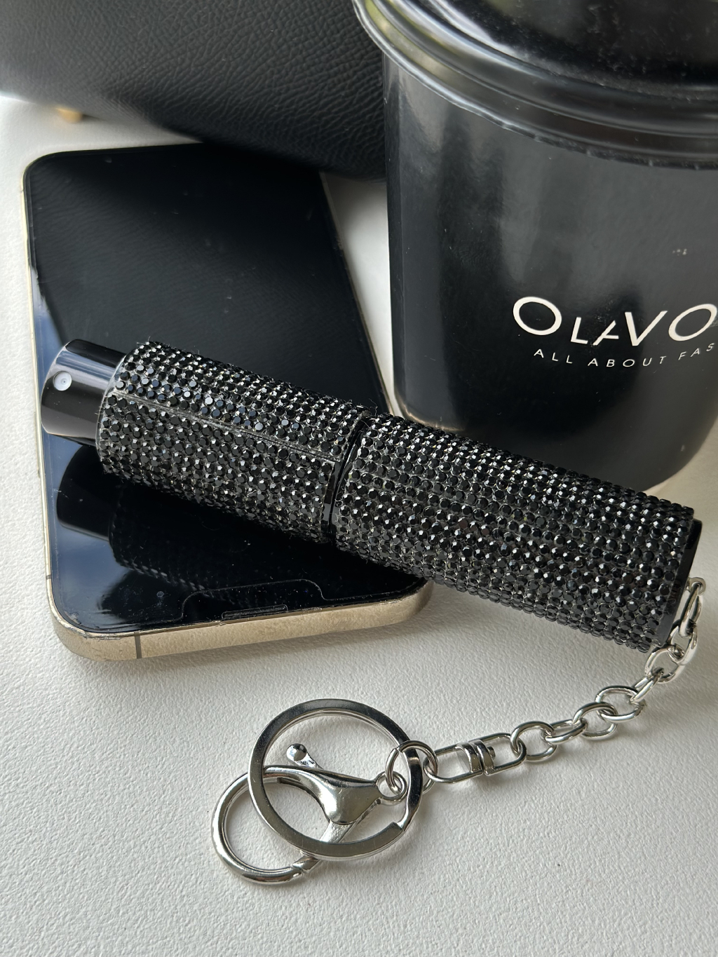 Doplňovací flakon na prfém s kamínky.