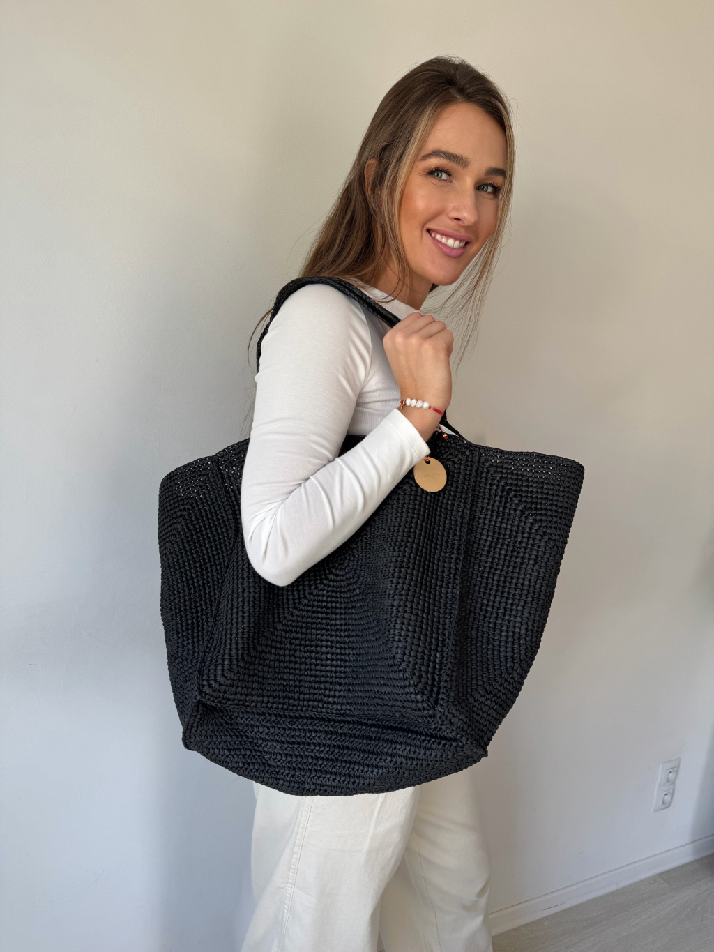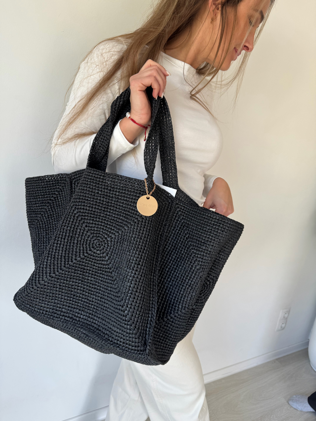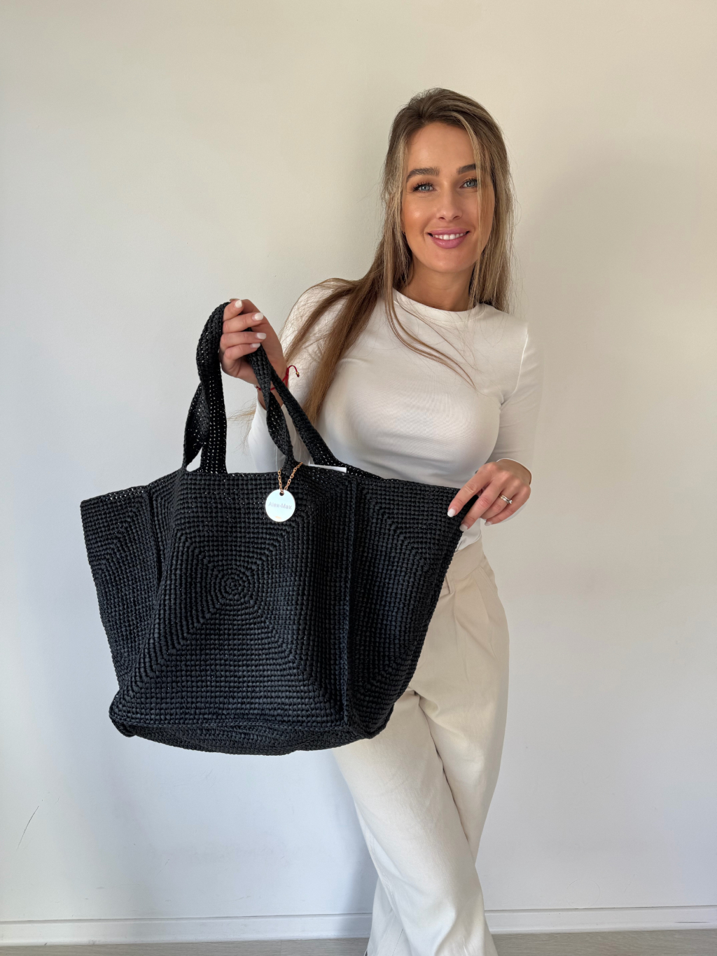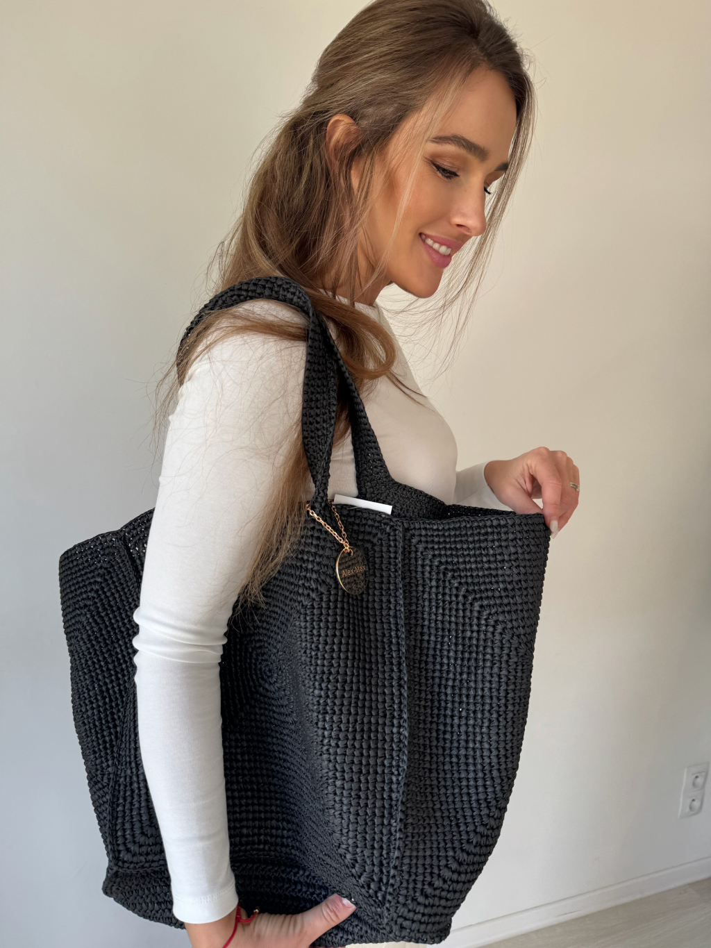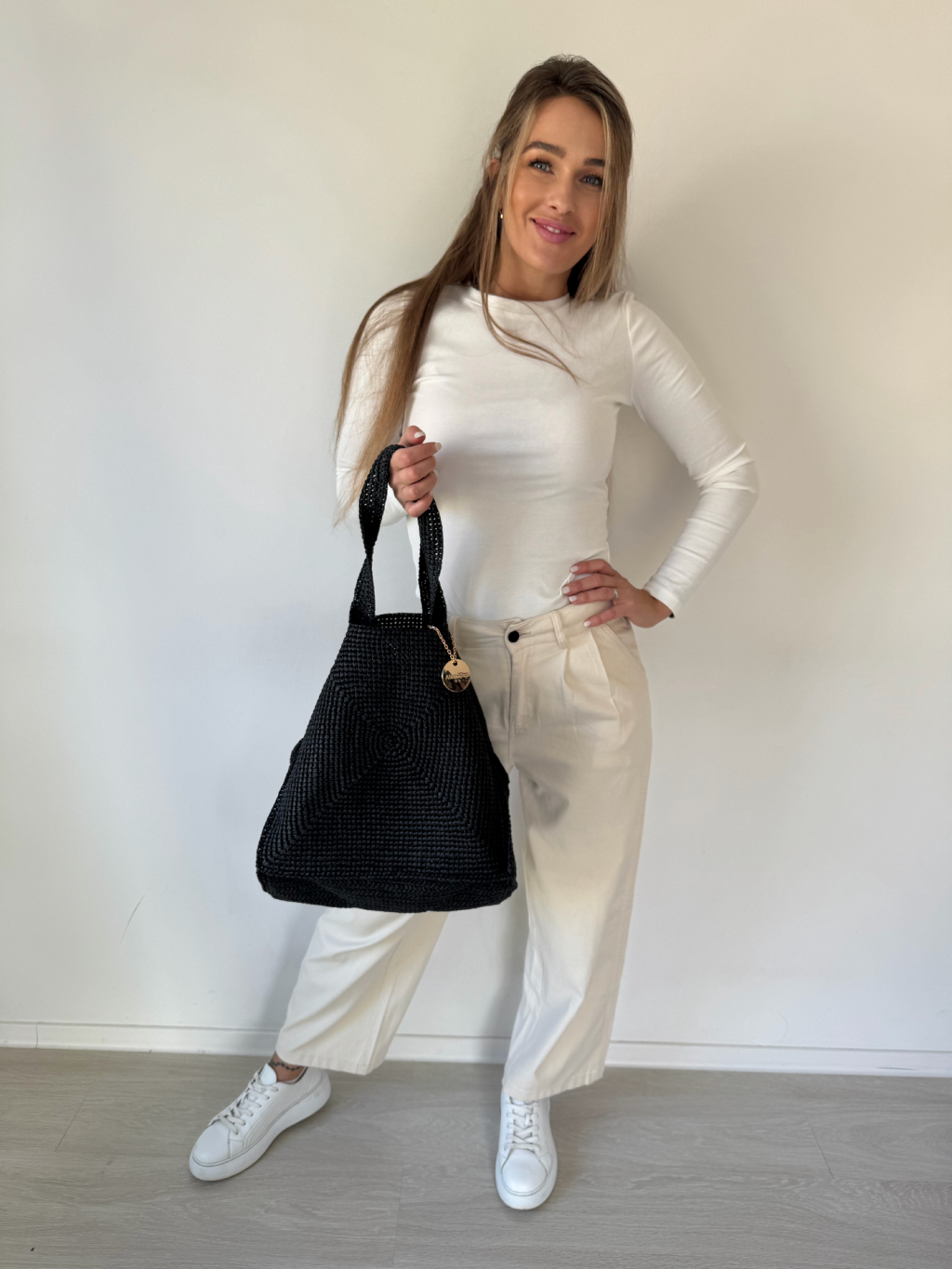 Rozměry: dno kabelky 34 x 34 cm, výška 35 cm, délka až 68 cm