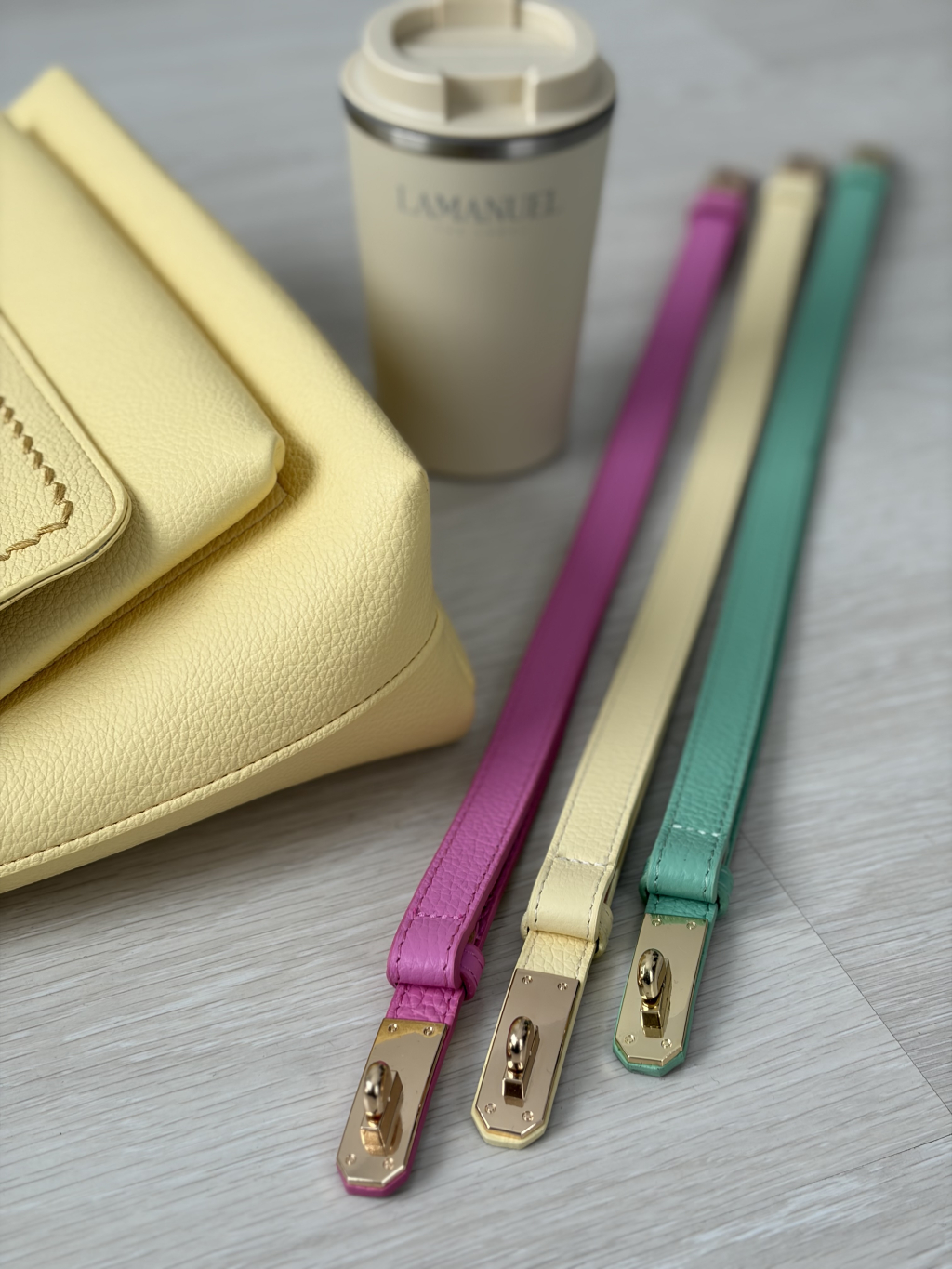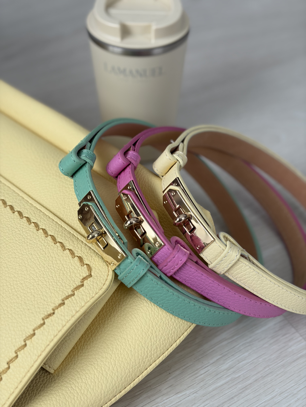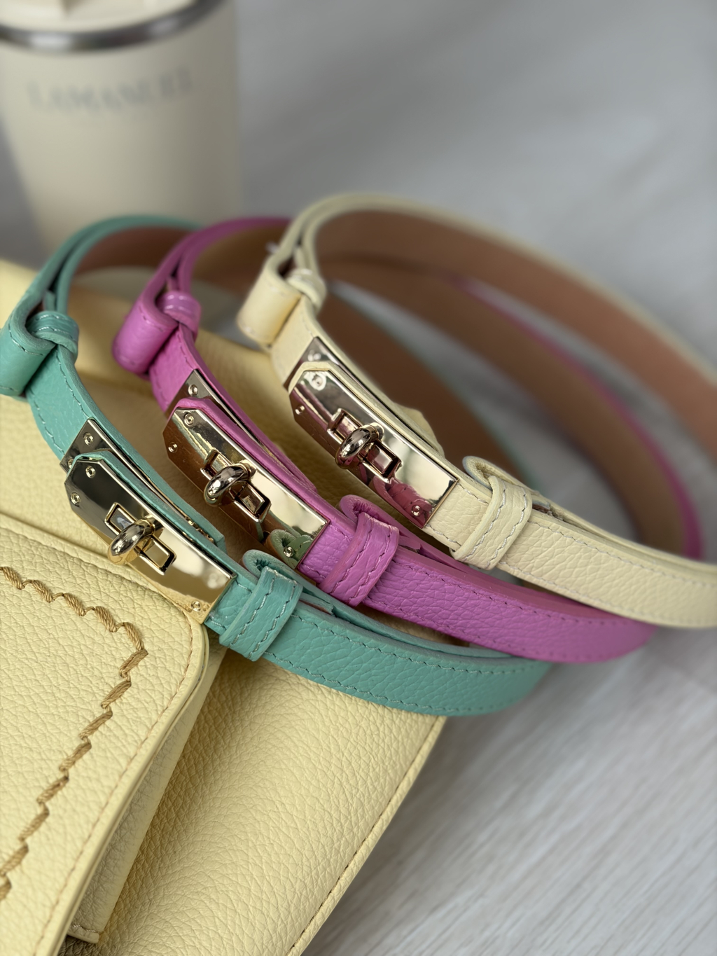 Kožený pásek XOXO - ŽLUTÁ / MINT / RŮŽOVÁ