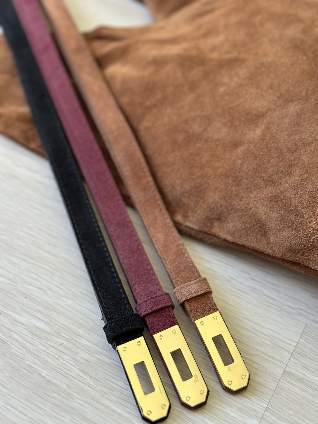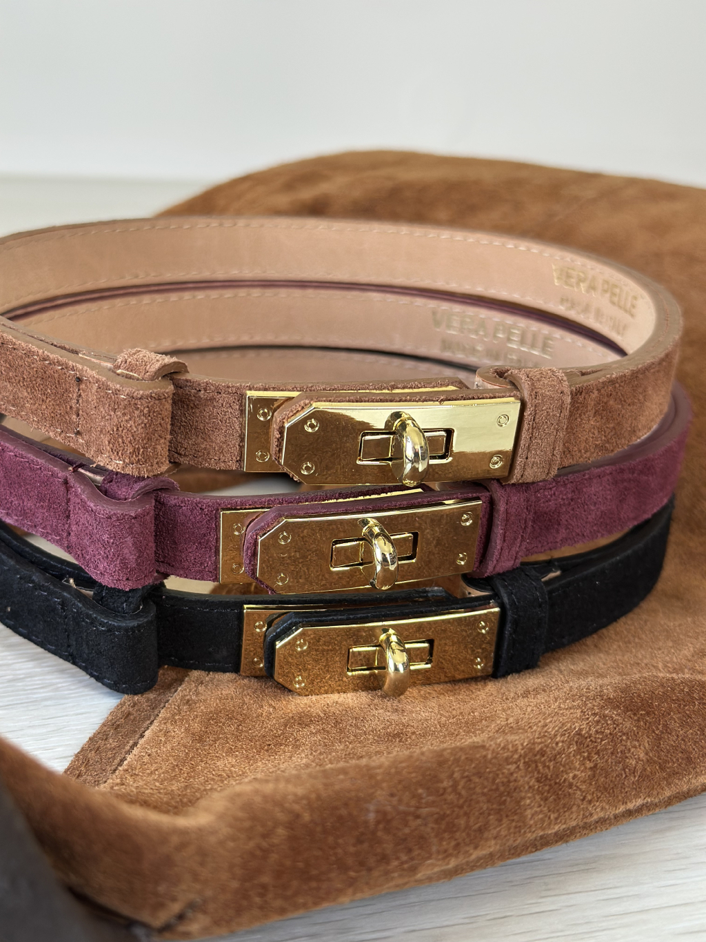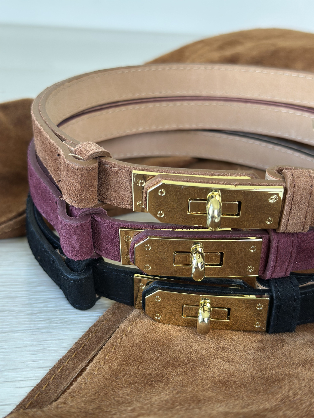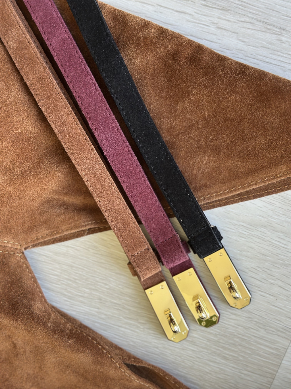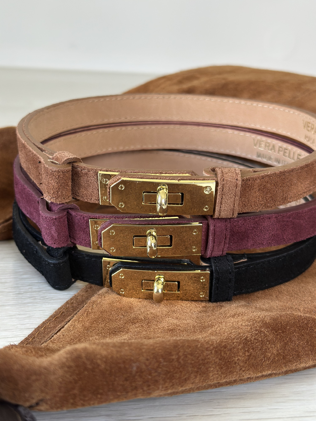 Pásek z broušené kůže XOXO - černá / vínová / hnědá