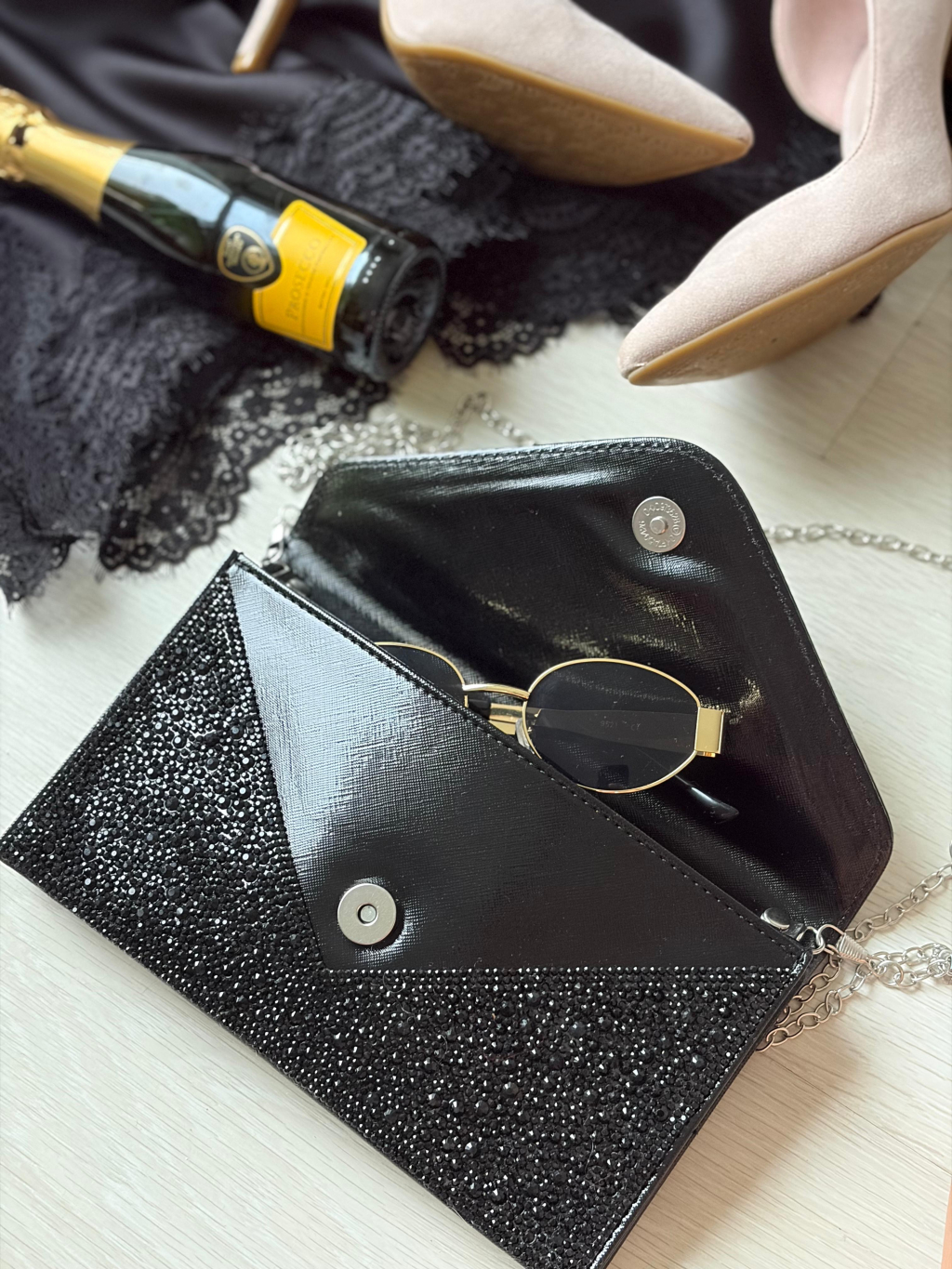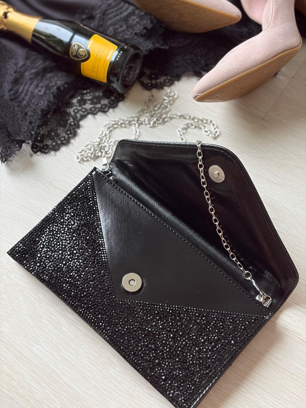 Můžeš nosit do ruky nebo s řetízkem přes rameno. Řetízek má stříbrnou barvu a lze jej odepnout.