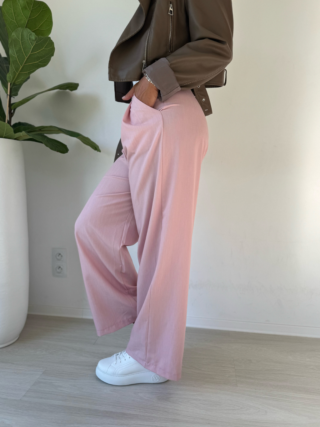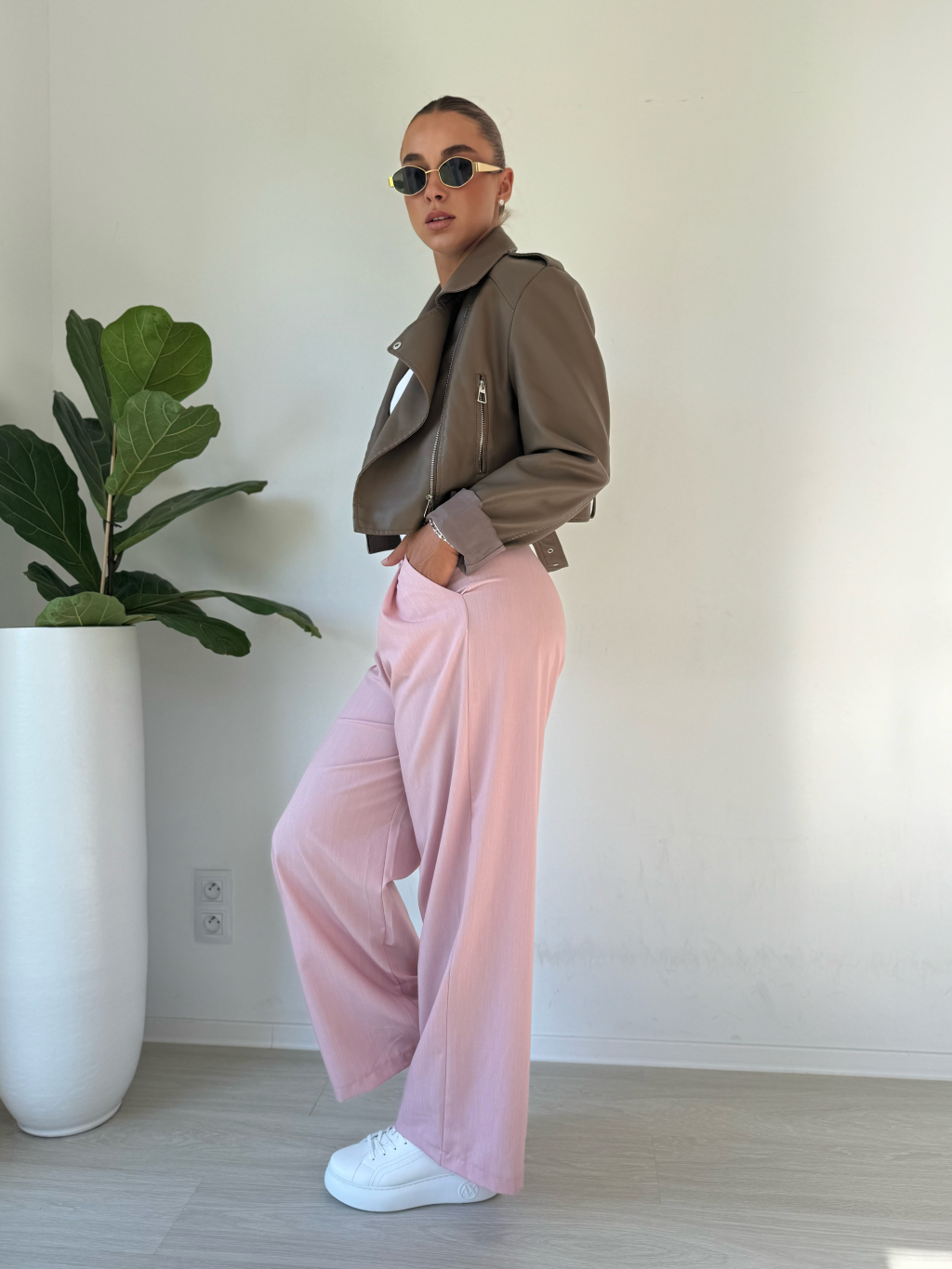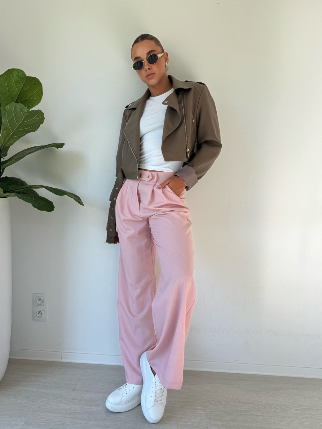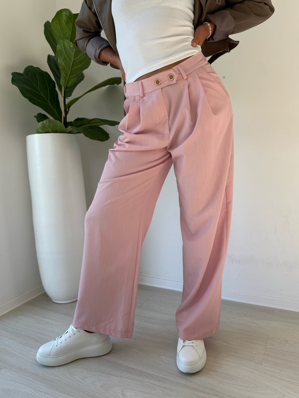 Kalhoty mají trendy, volný střih. Zapínání na knoflíčky a zip, po stranách jsou kapsy.