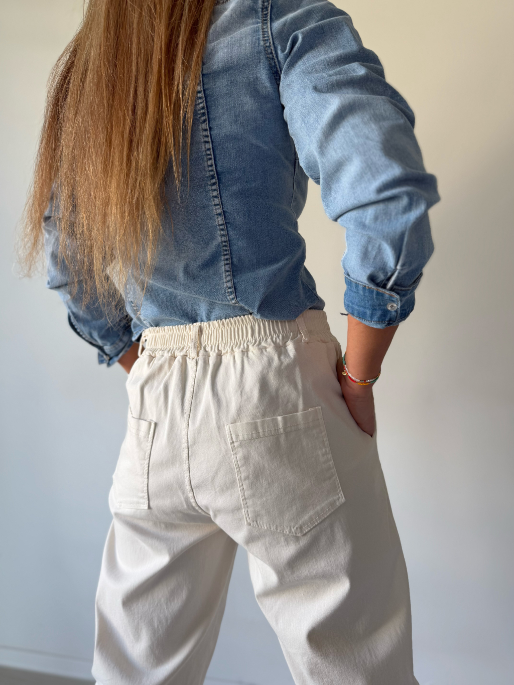 kalhoty s gumou v pase, kalhoty na gumu, kalhoty, béžové kalhoty, trendy kalhoty, kalhoty ke kotníkům