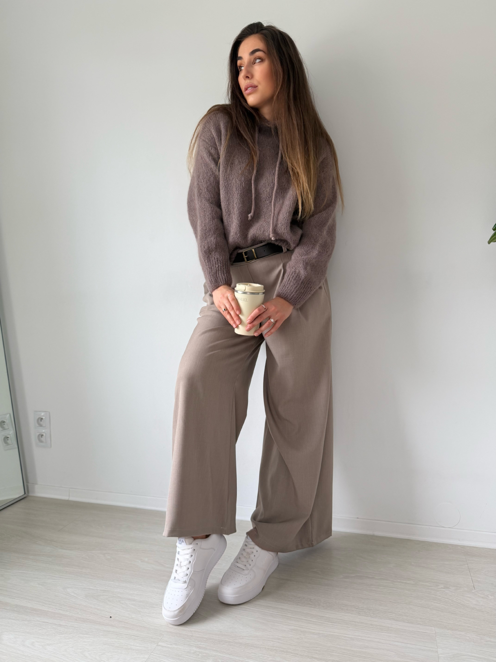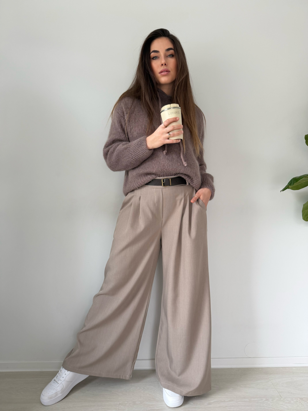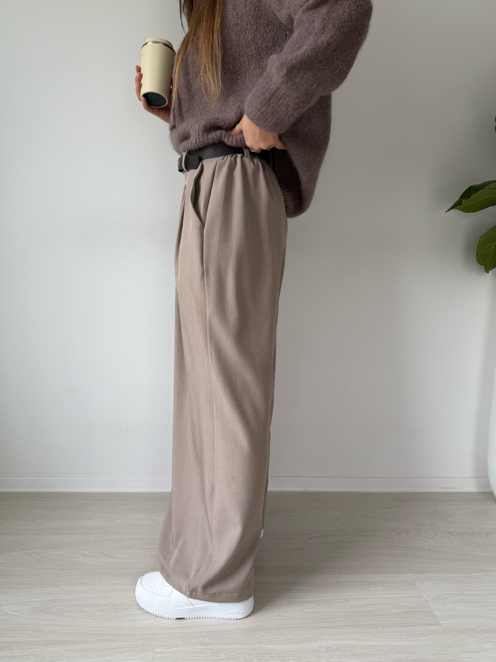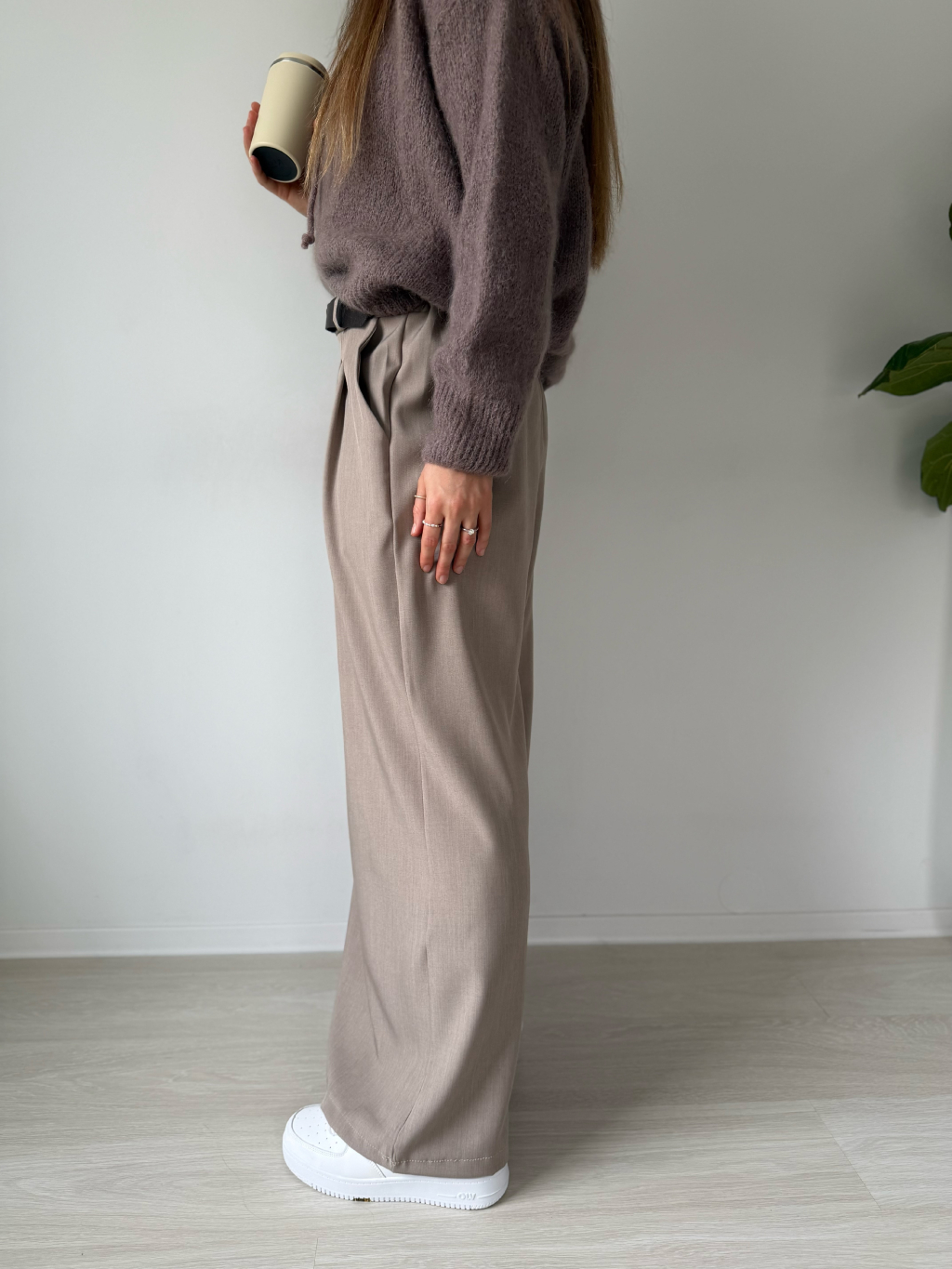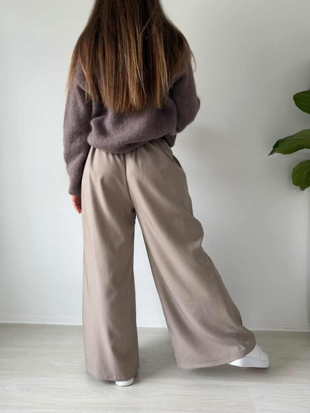 volné kalhoty, široké kalhoty, kalhoty, béžové kalhoty, kalhoty na gumu