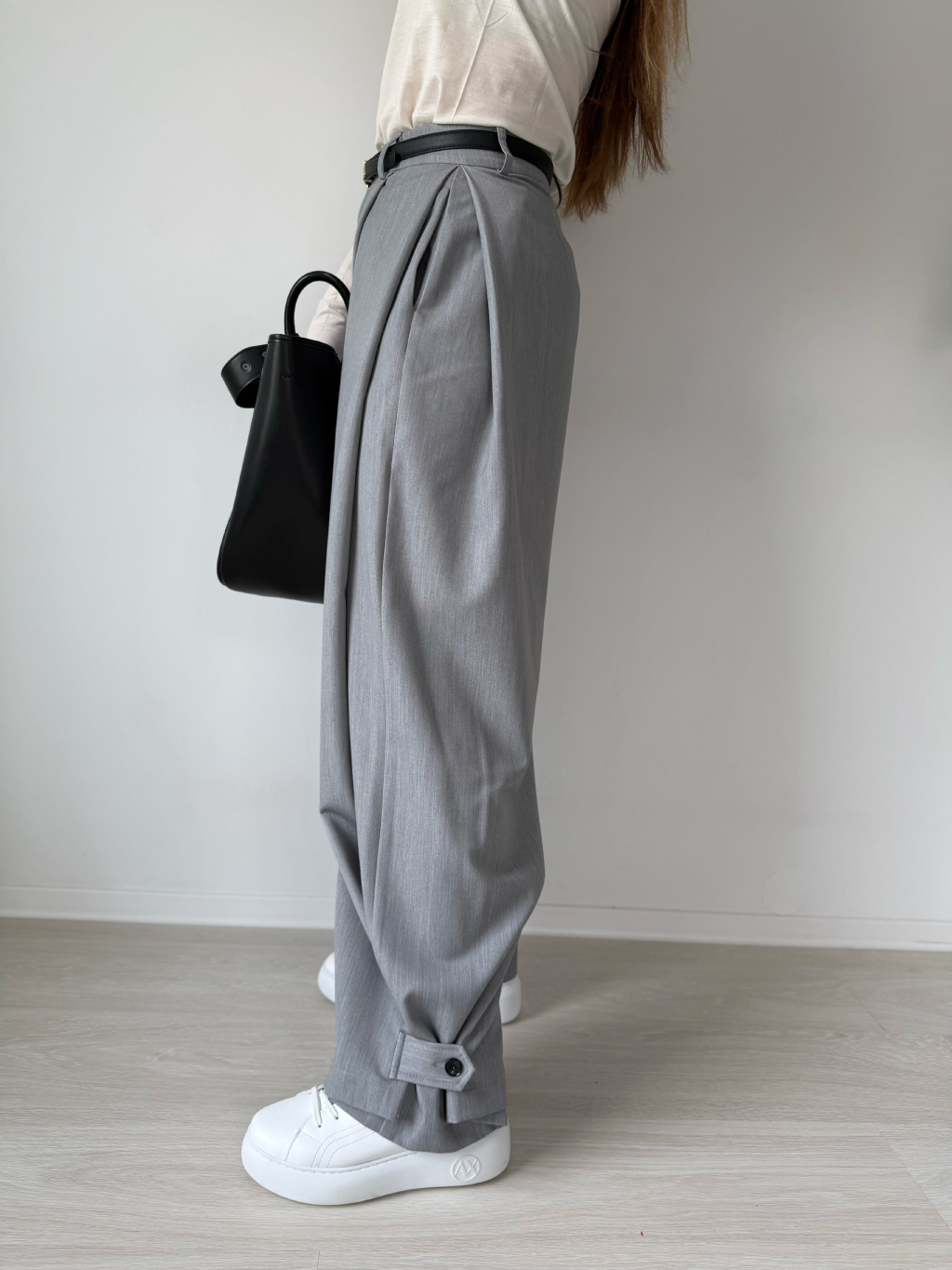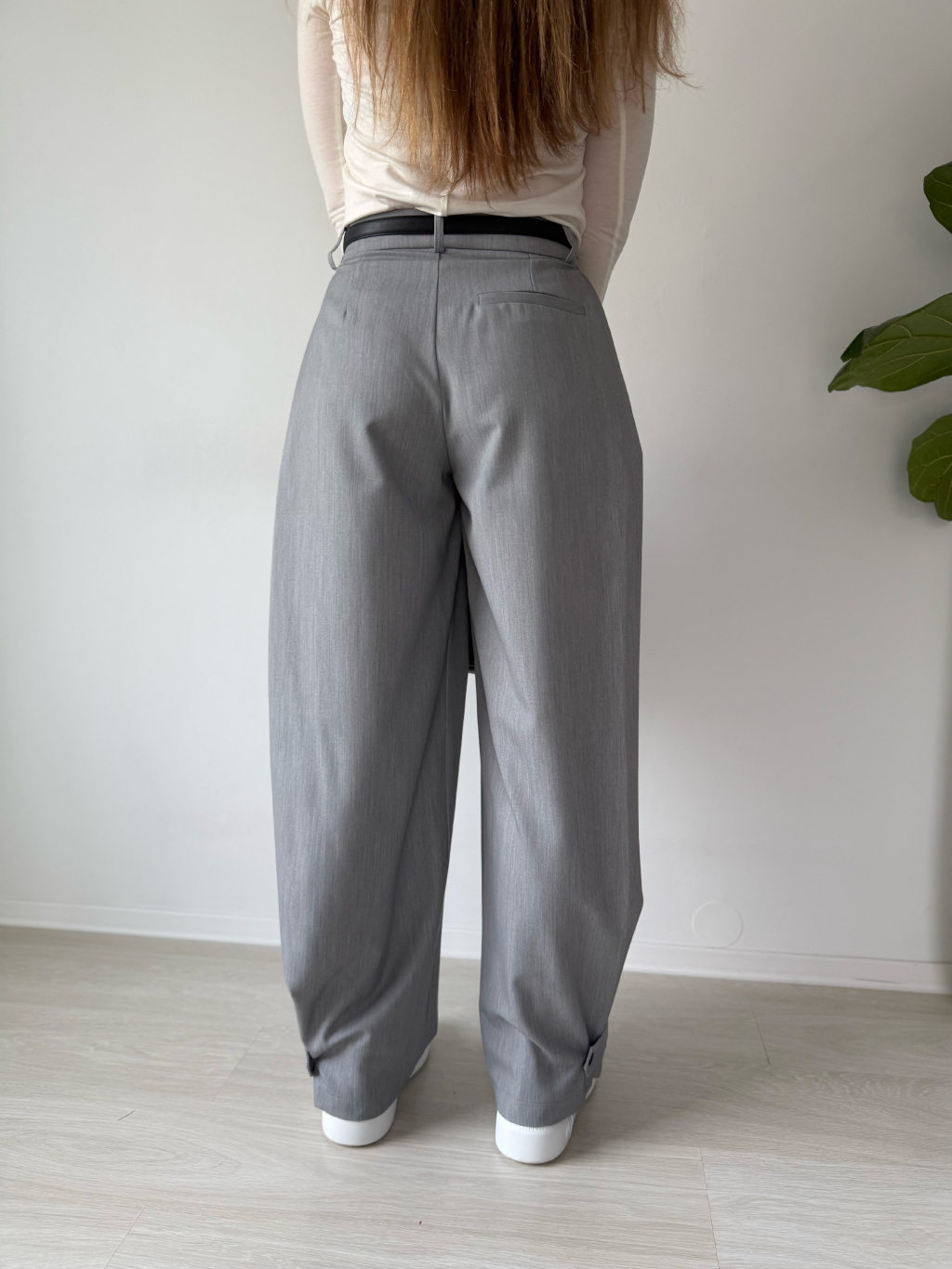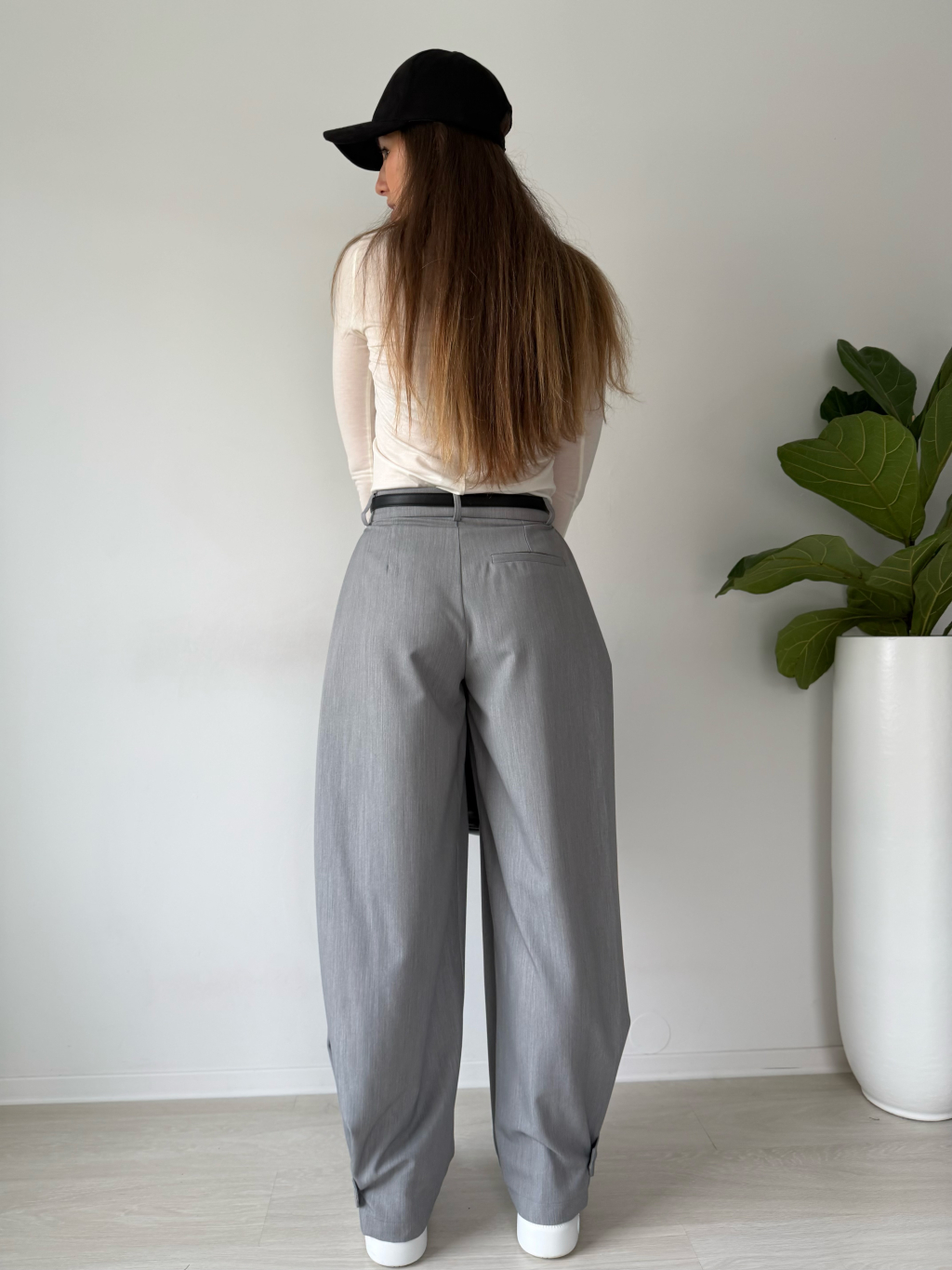 Kalhoty jsou lehké, volné a široké. V pase nepruží. Zapínání na knoflík. Dole lze zapnout na nohavici knoflík a tím změnit styl střihu. Dvě praktické kapsy po stranách a vzadu jedna kapsa falešná.