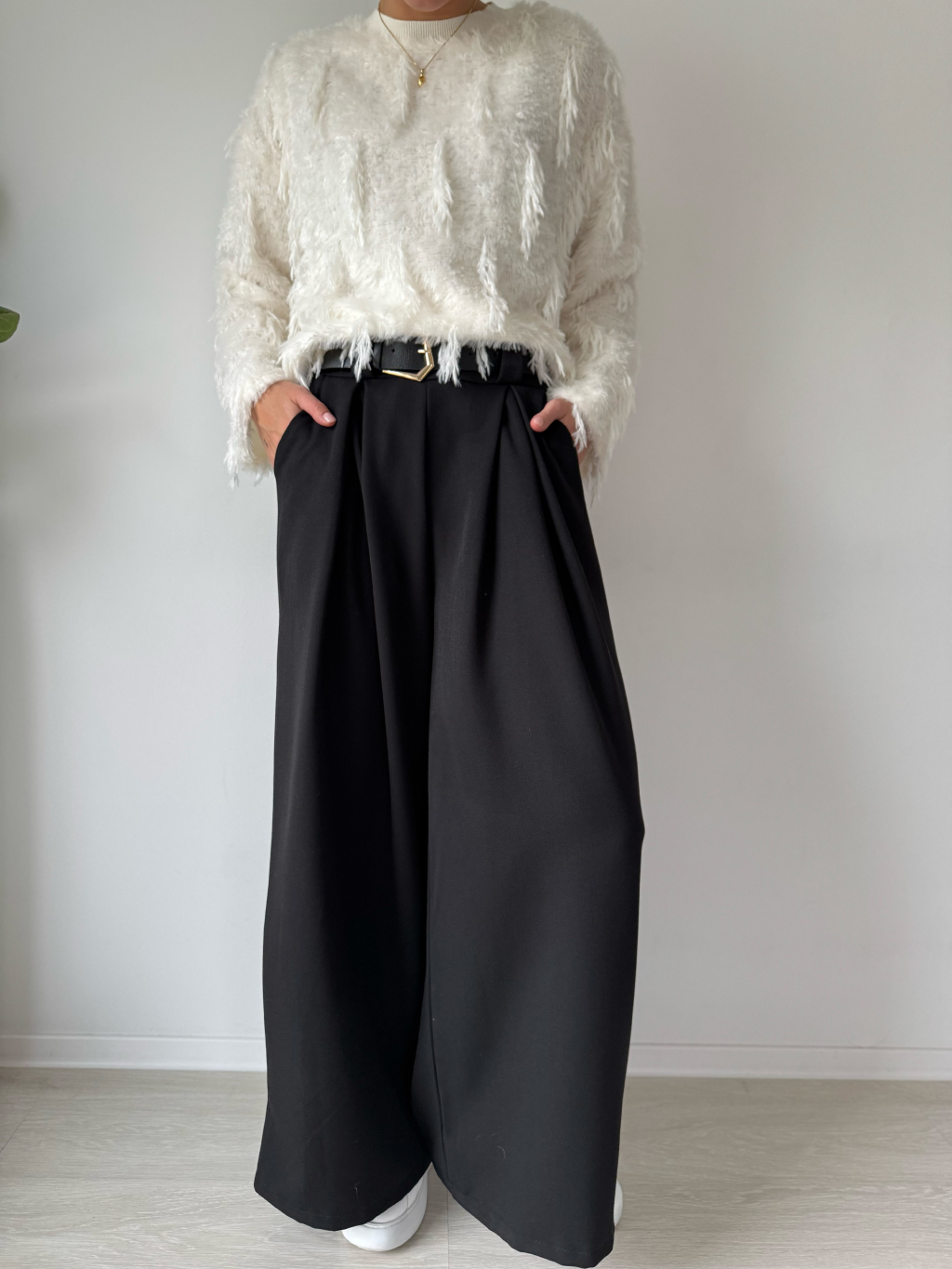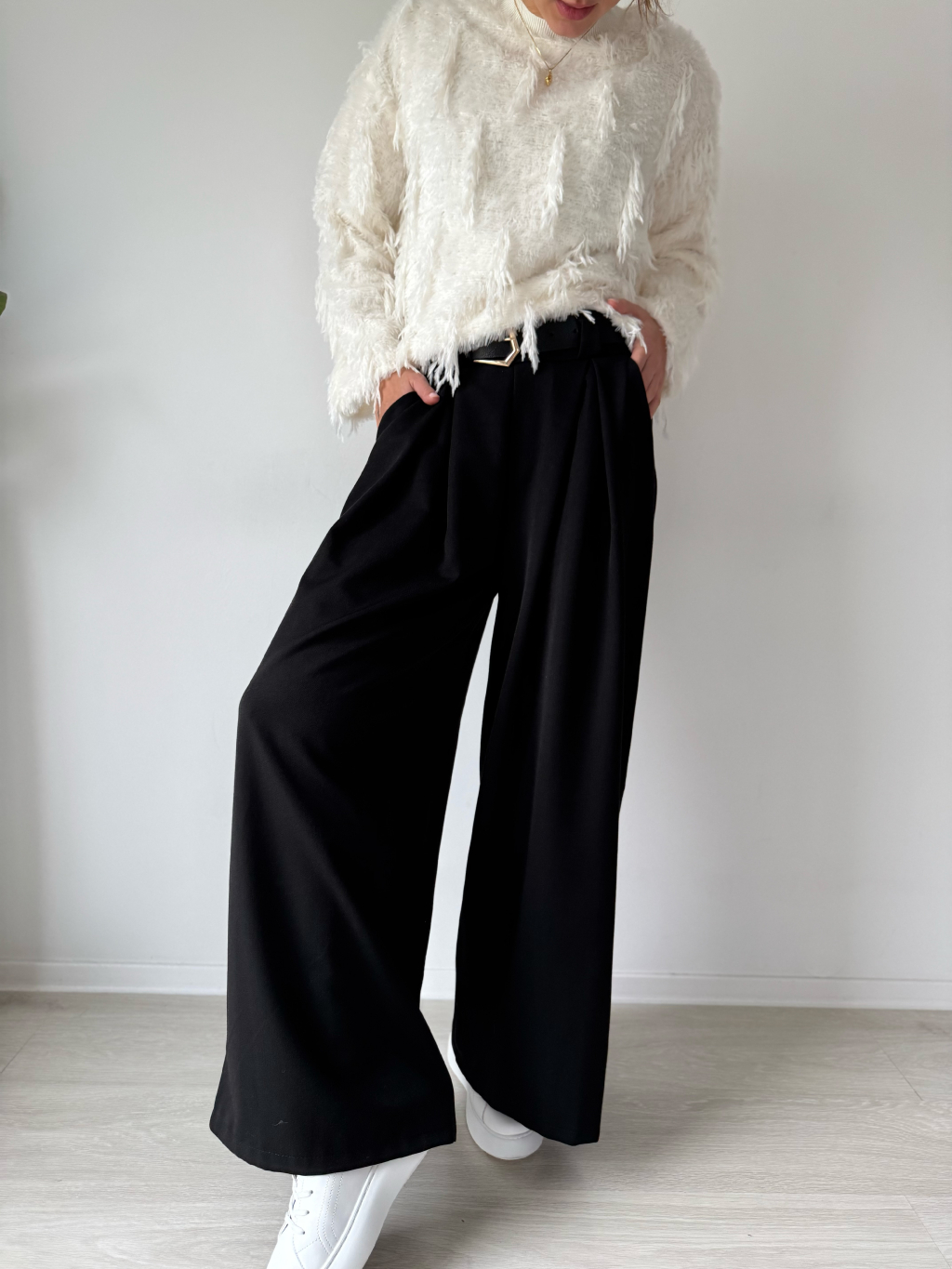 Kalhoty volné s páskem černá