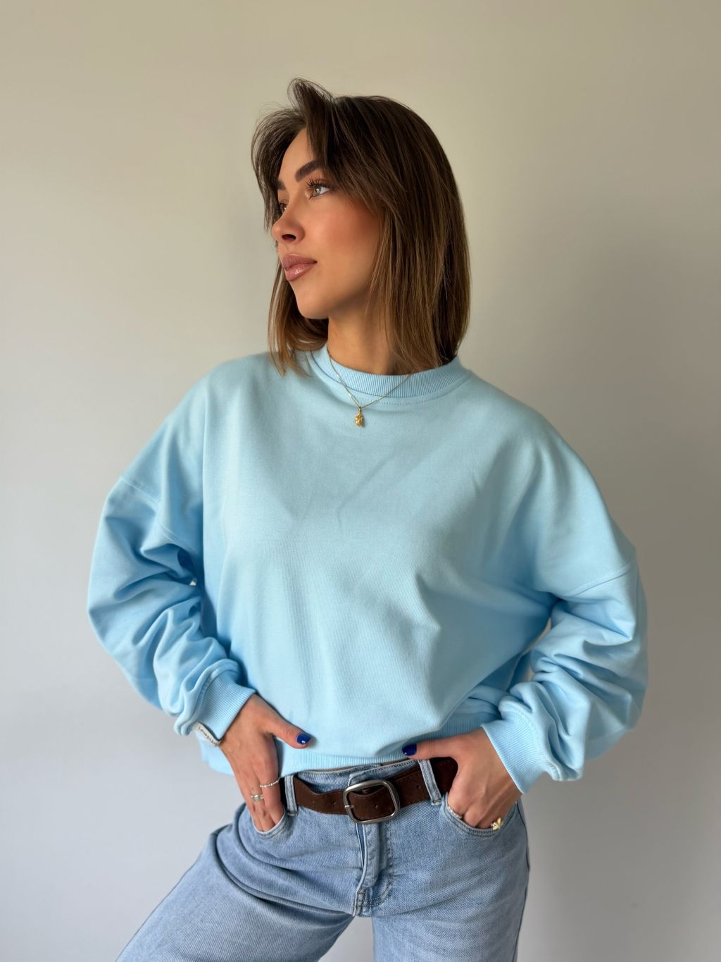 Tepláková mikina bez kapuce. Volná. Úplet po okrajích.