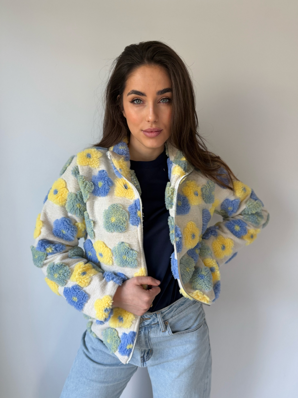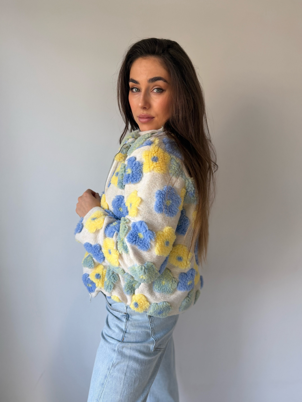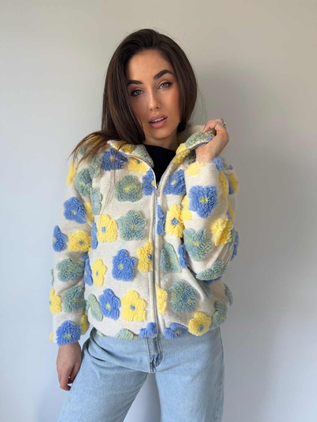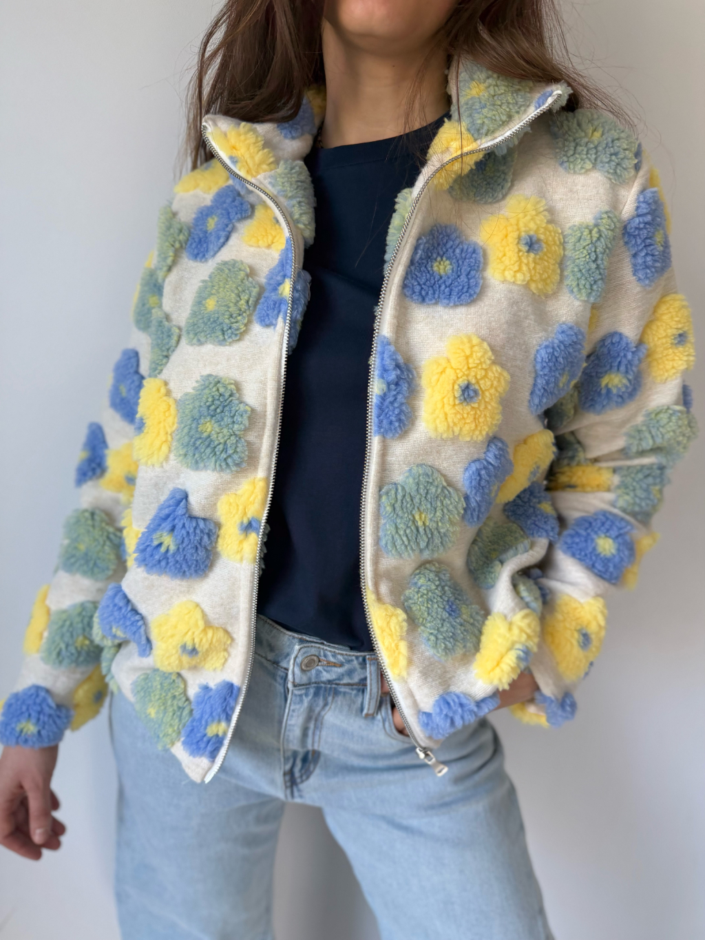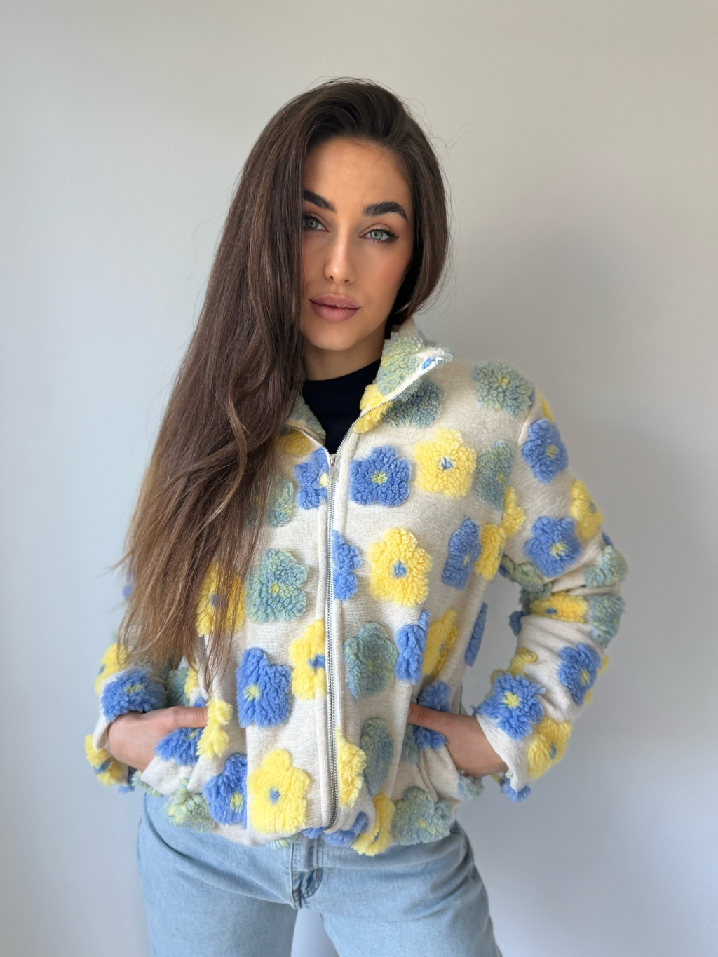 vlněná mikina s květy, květiny, květy, mikina s květy, mikina na zip