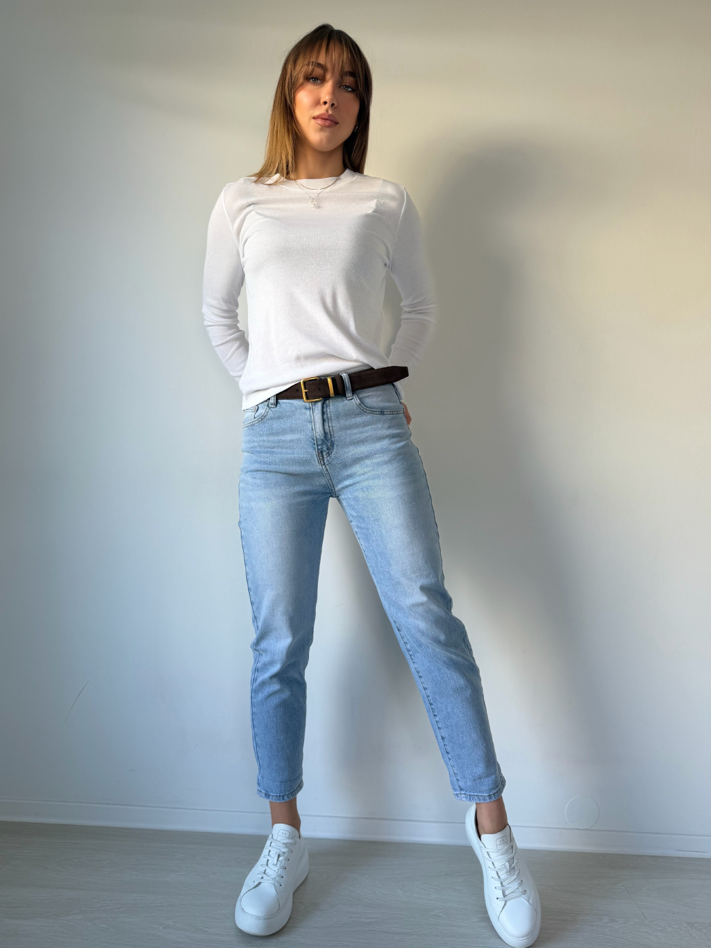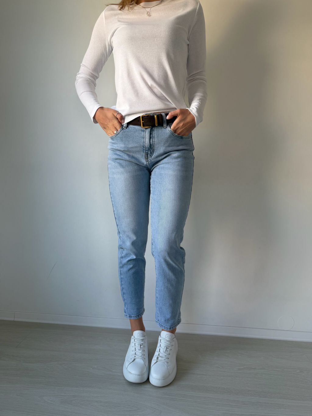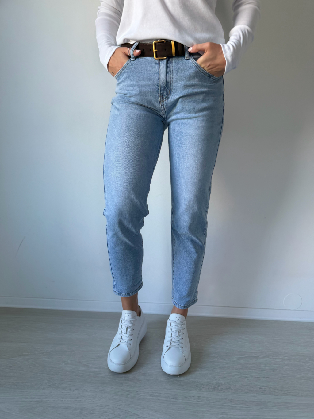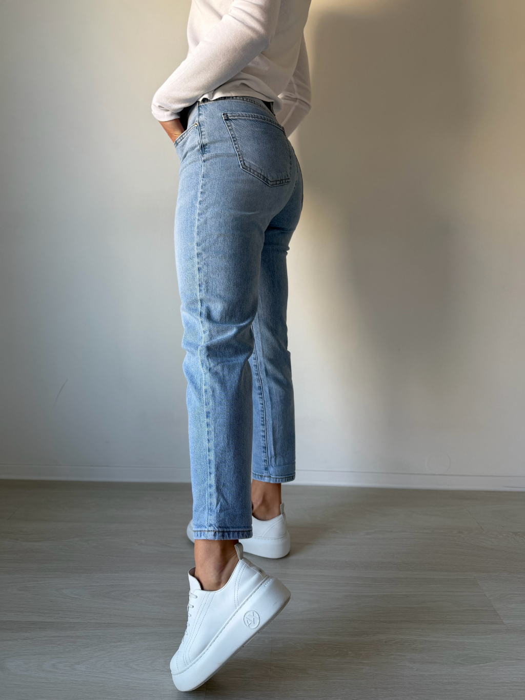 Rifle mom fit. Dvě kapsy vepředu i vzadu. Zapínání na knoflík. Vzadu výšivka leopard.