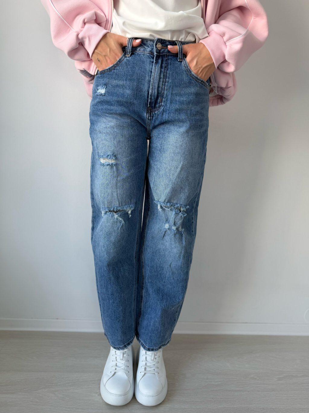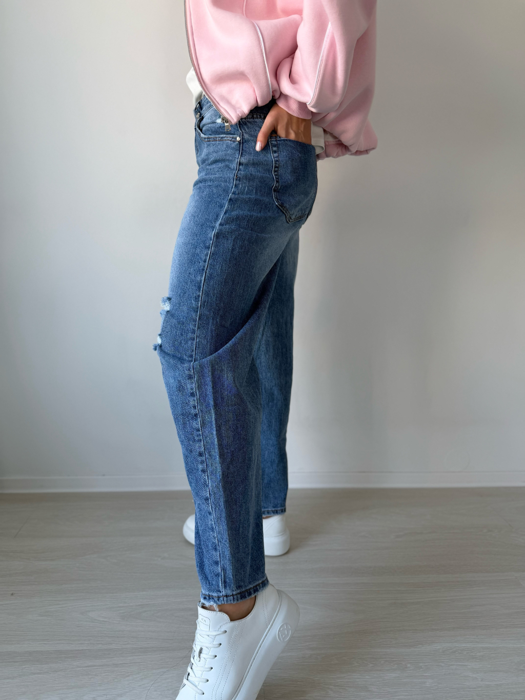 rifle, potrhané rifle, mom fit rifle, mom fit, trendy rifle, modré rifle