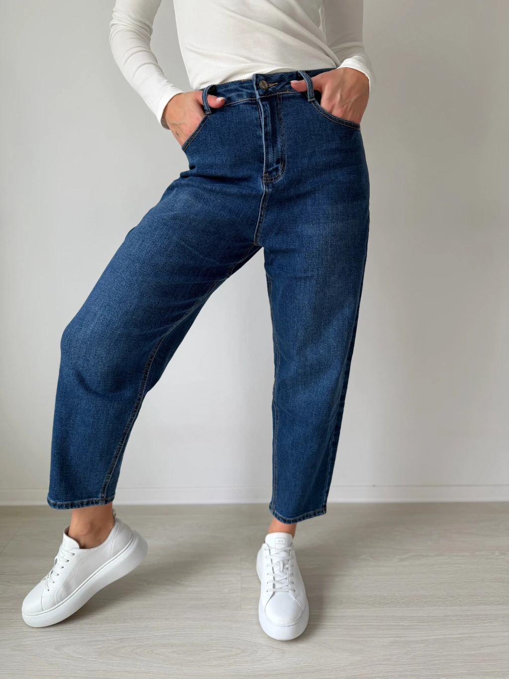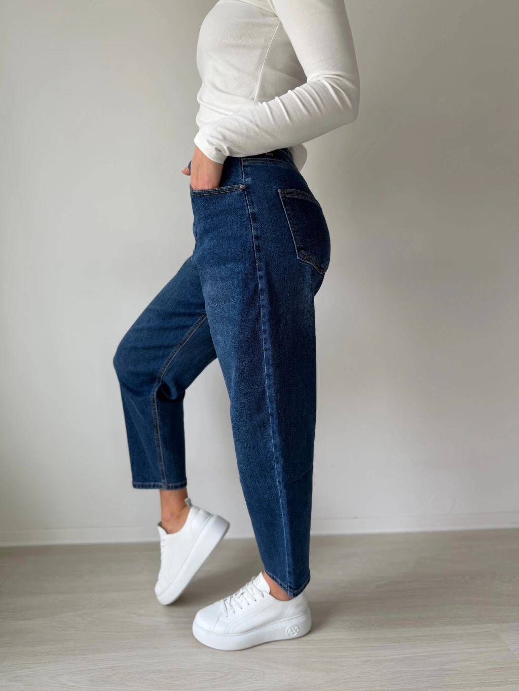 Rifle v klasické denim modré barvě. Balonový střih, jsou pružné a hezky sedí.