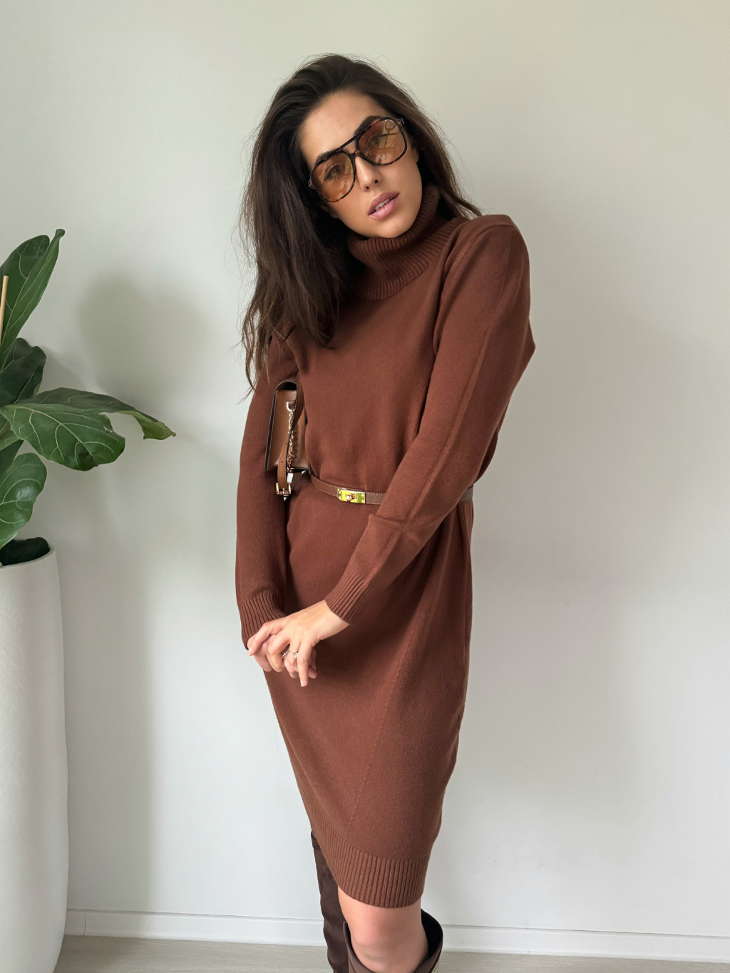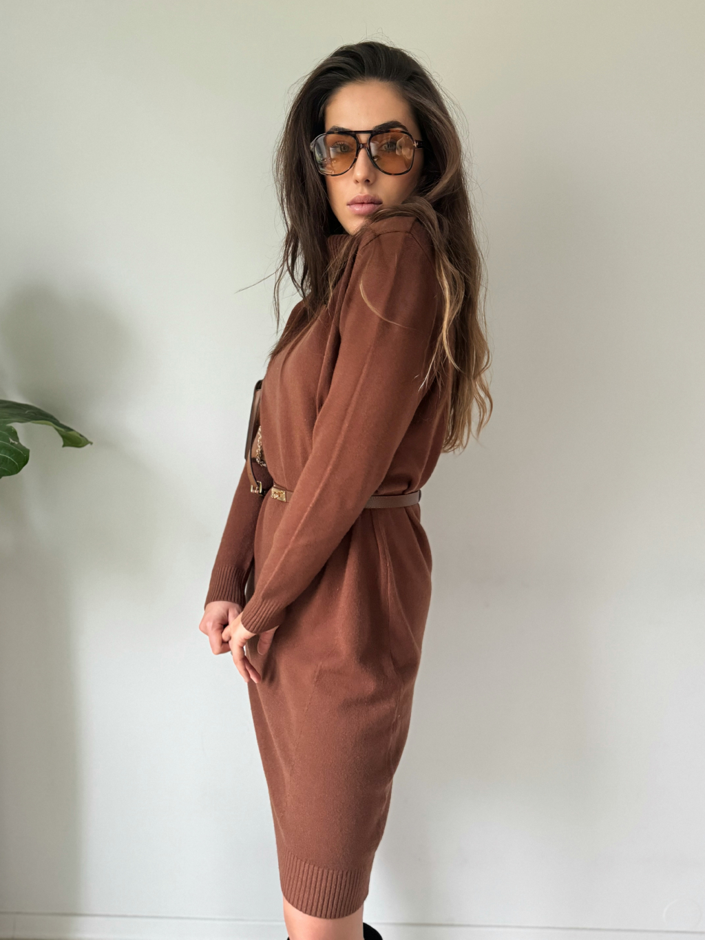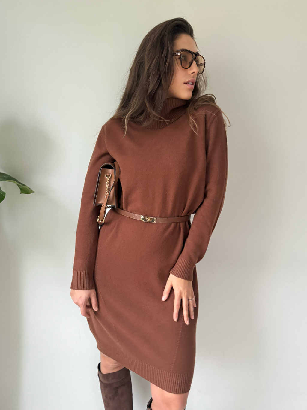 Oversize pletené šaty TISSE hnědá