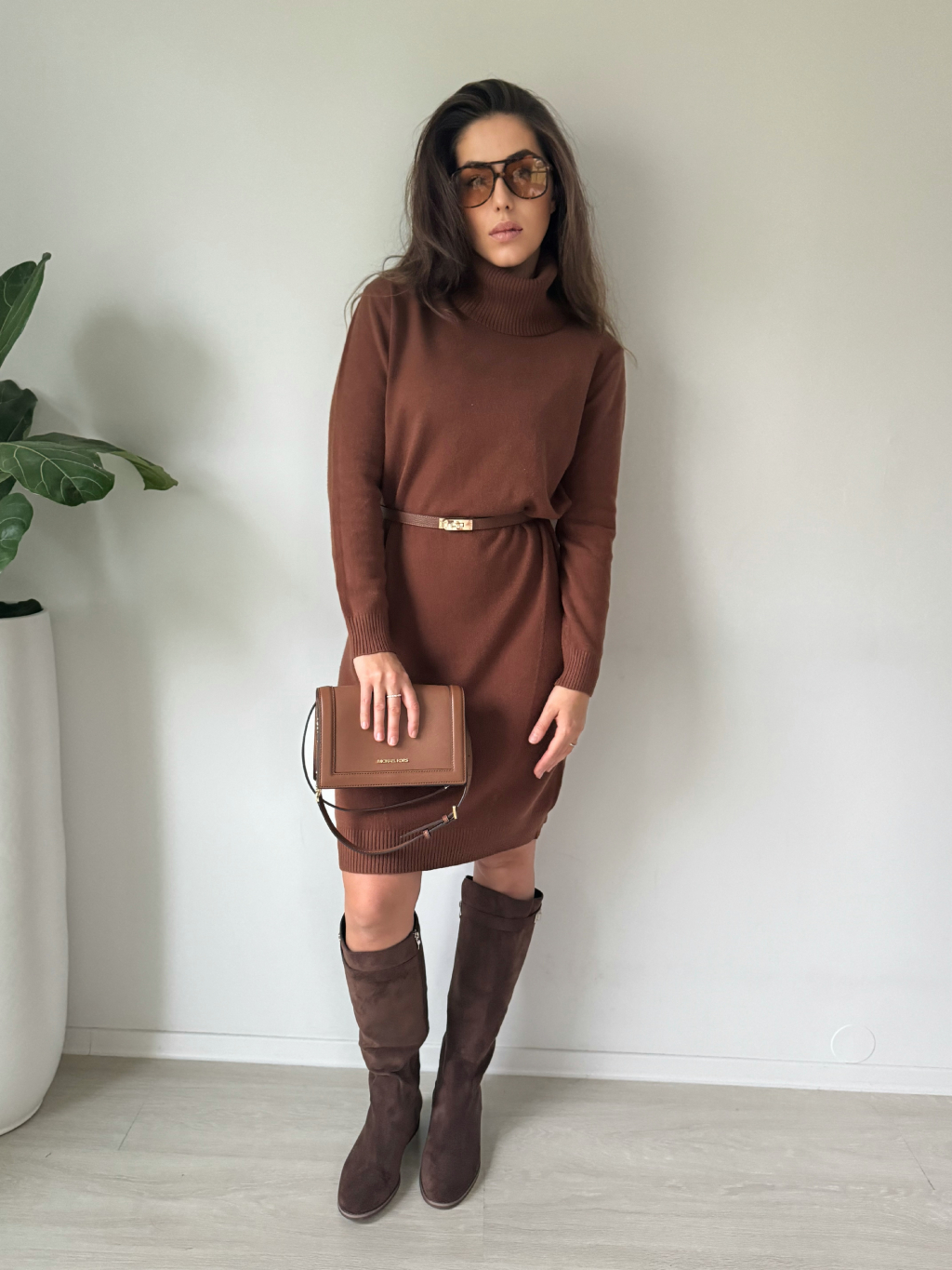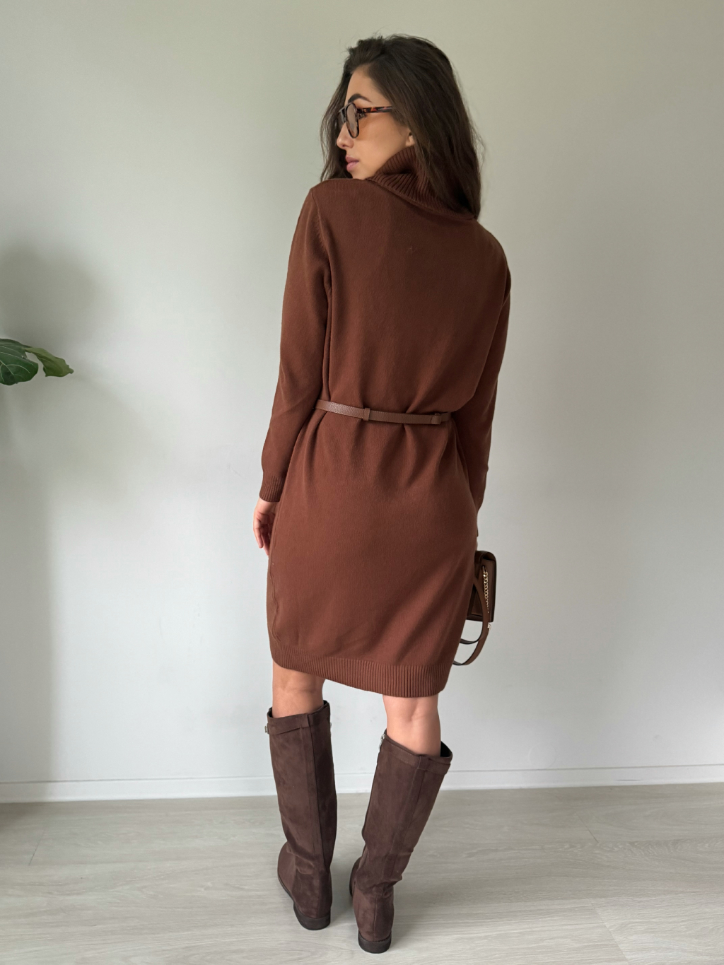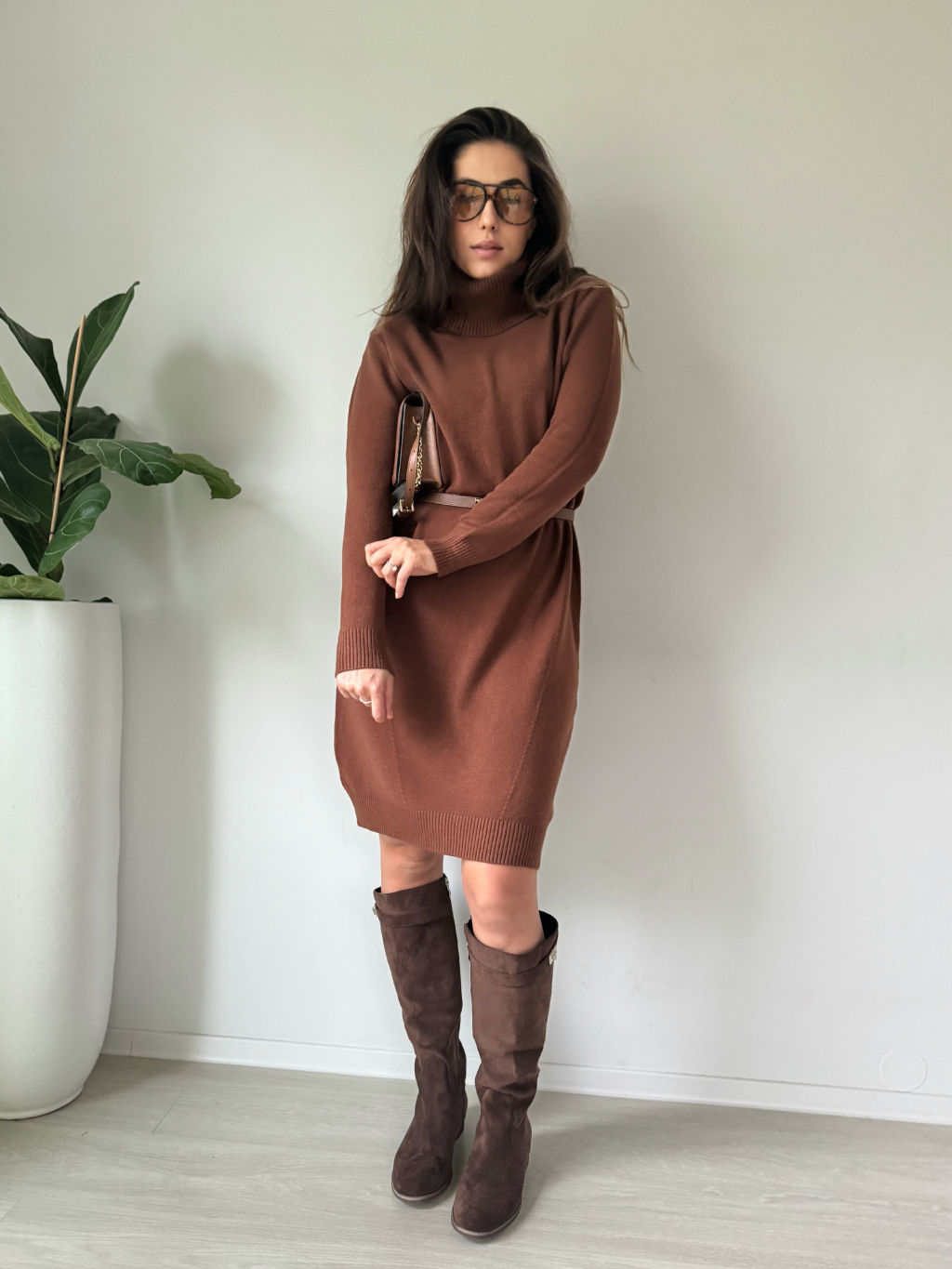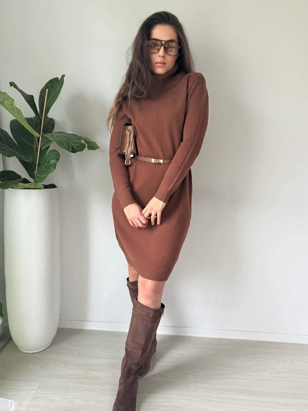 Oversize pletené šaty TISSE hnědá