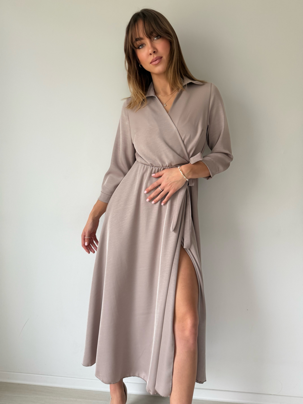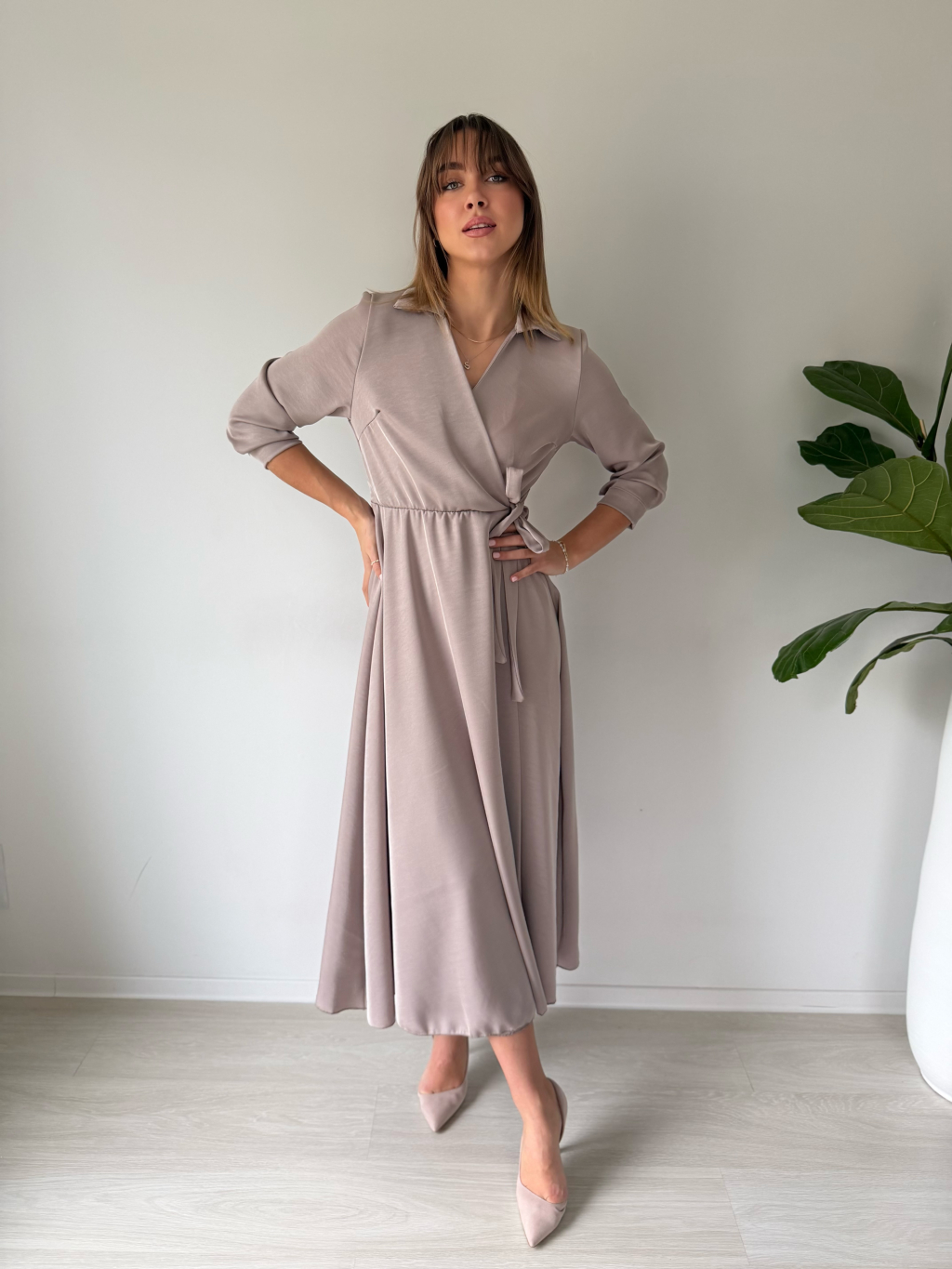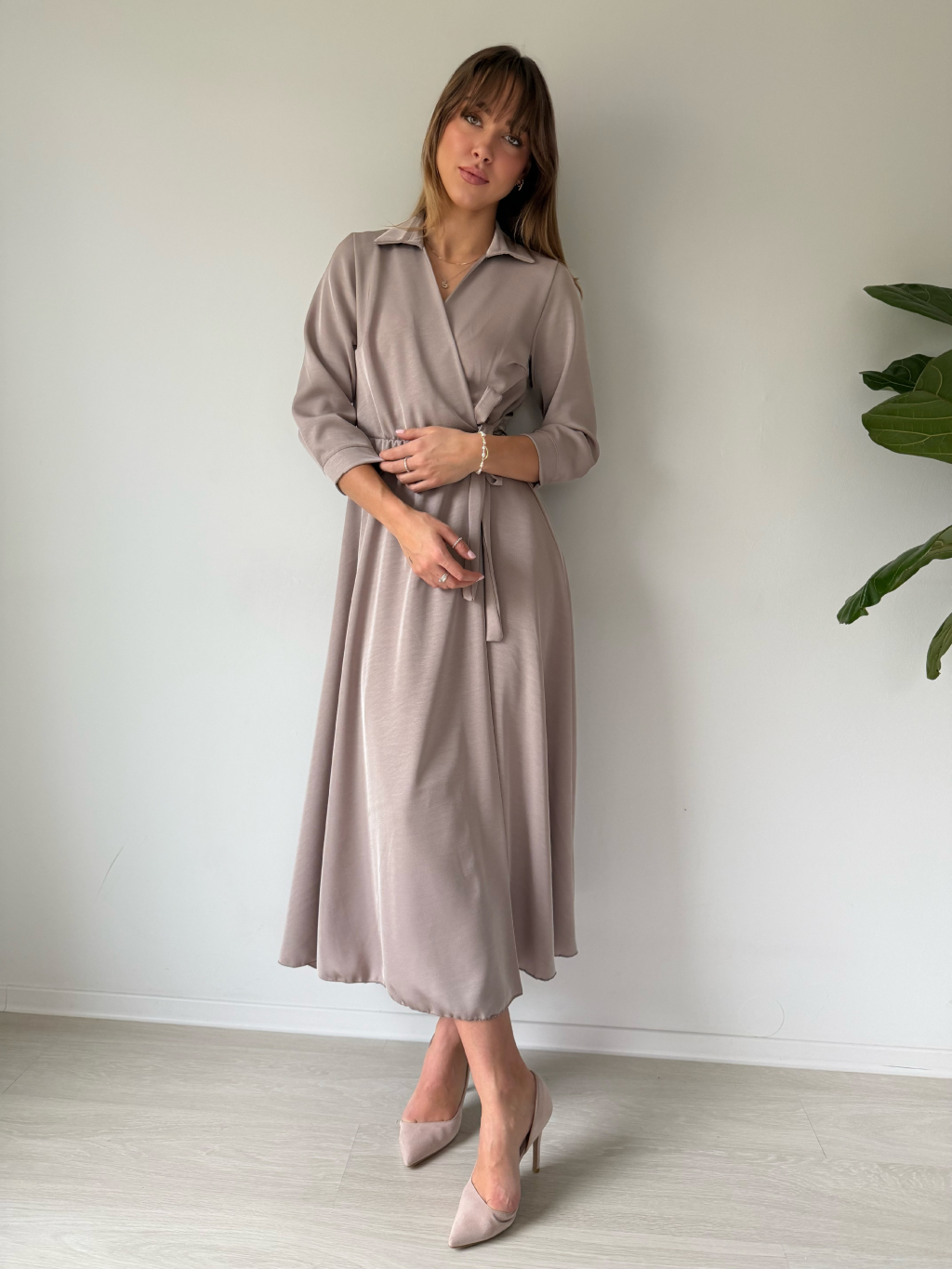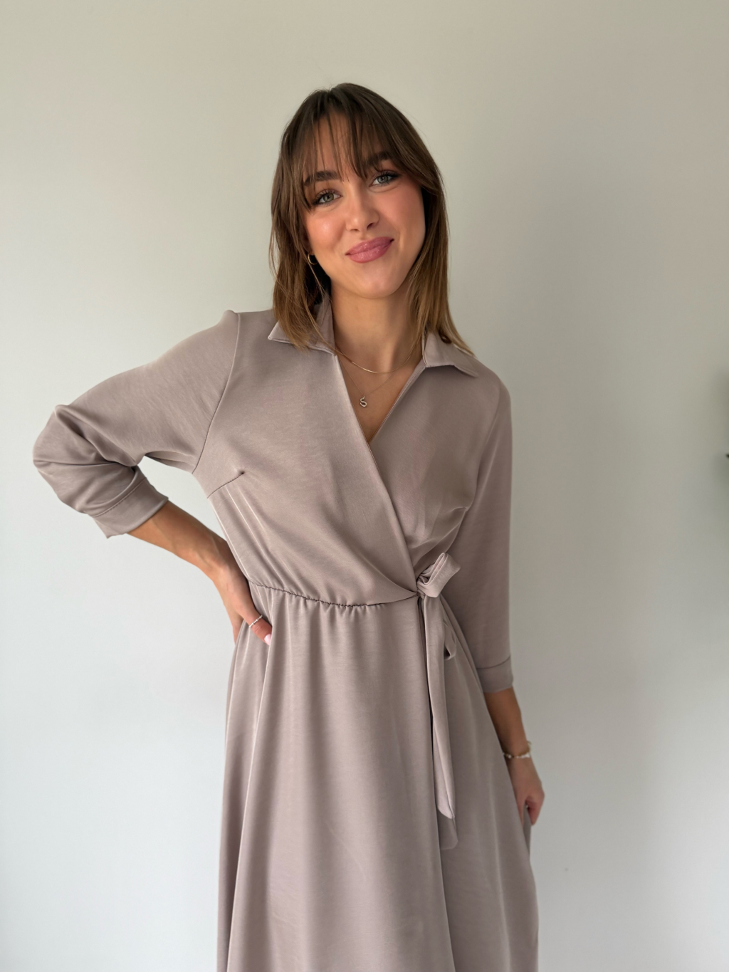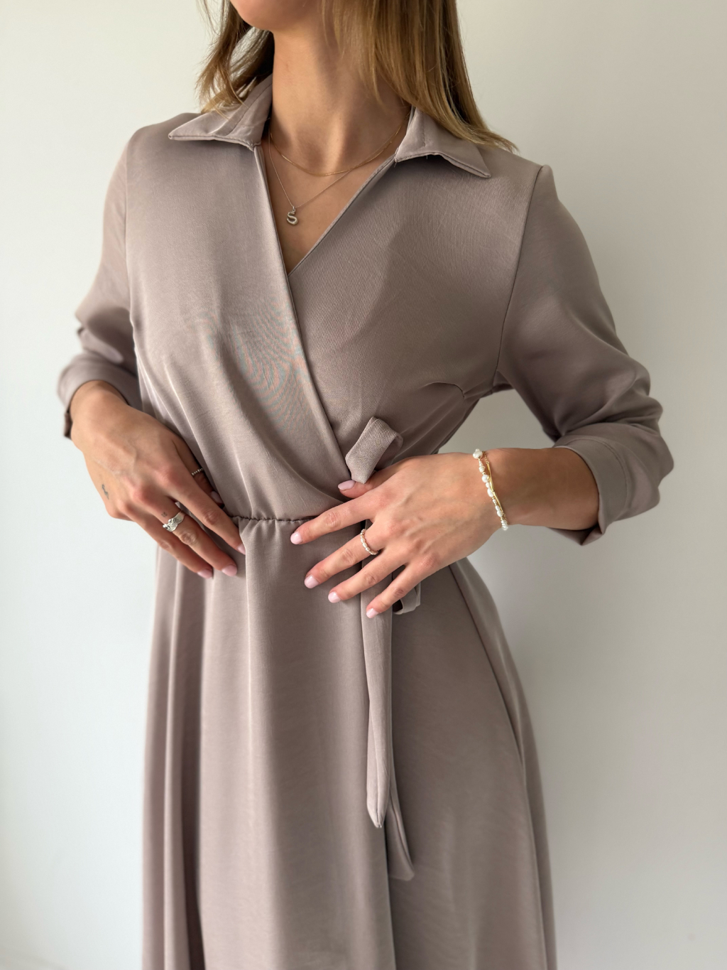 Lehké košilové šaty s 3/4 rukávem. Volné, guma v pase kde se šaty kříží a zavazují.