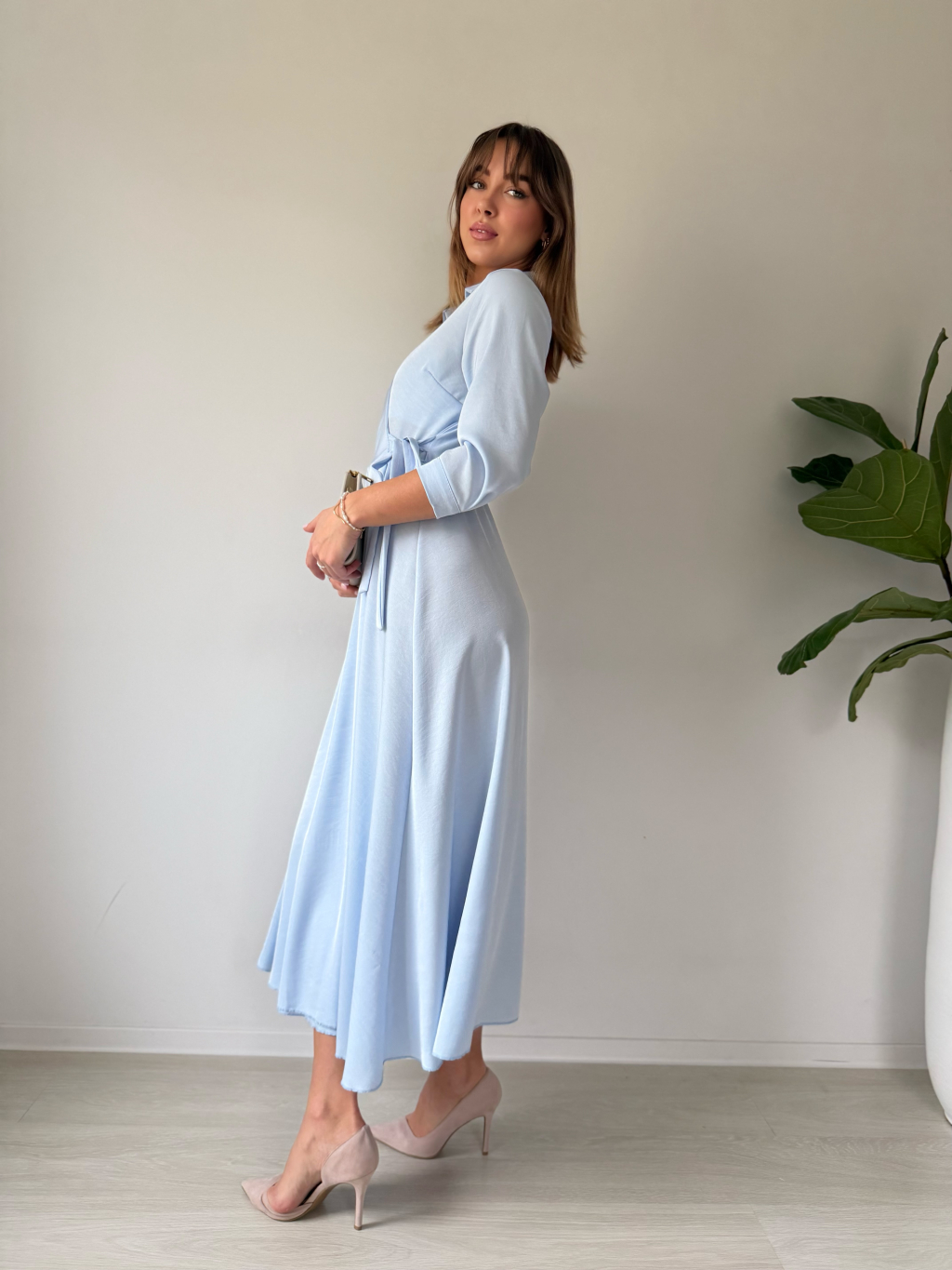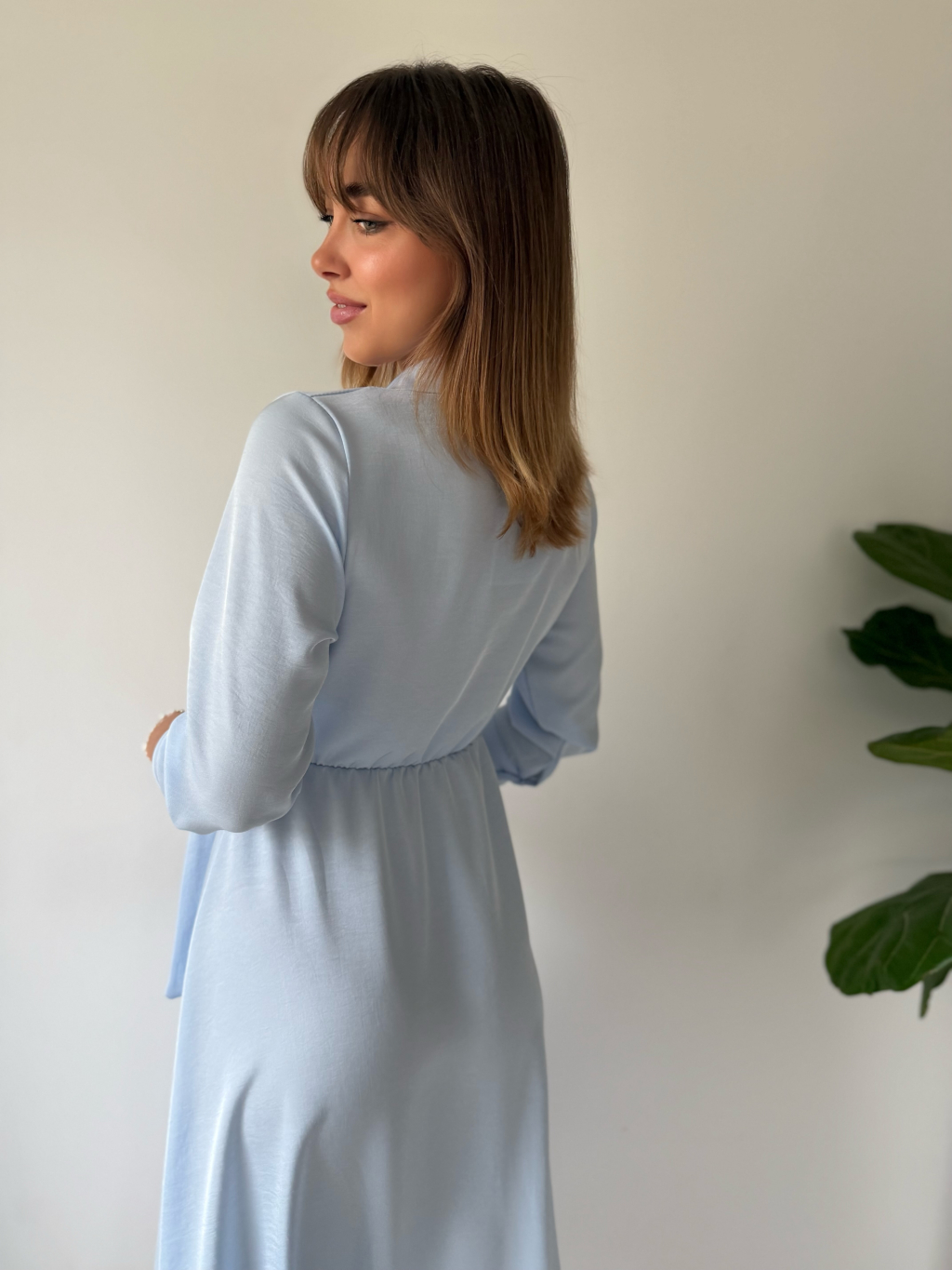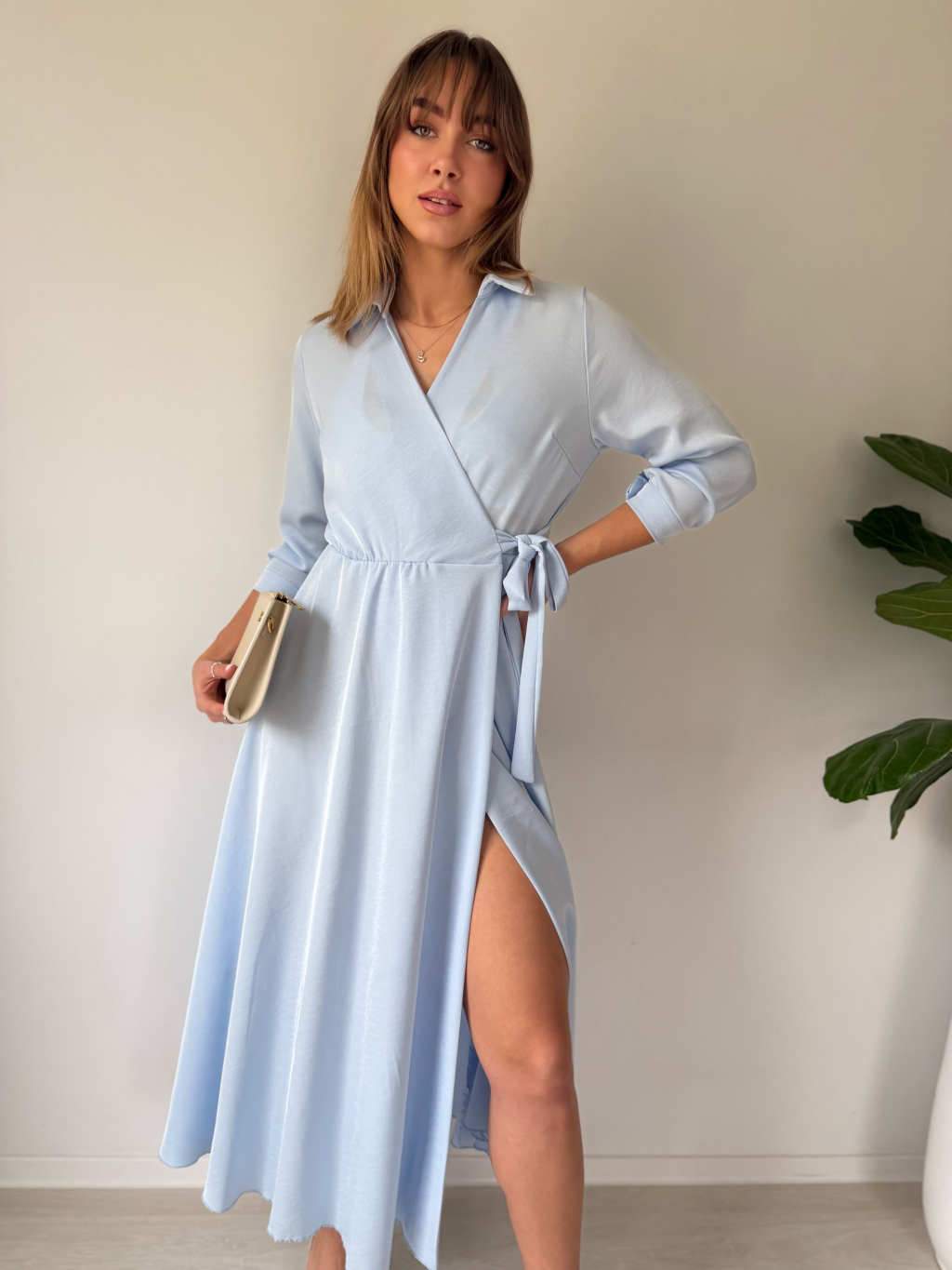 Lehké košilové šaty s 3/4 rukávem. Volné, guma v pase kde se šaty kříží a zavazují.