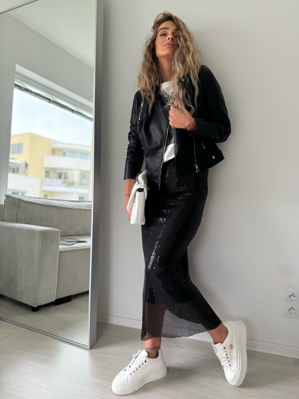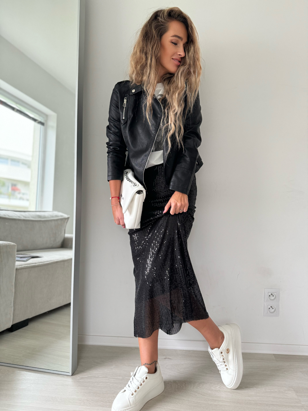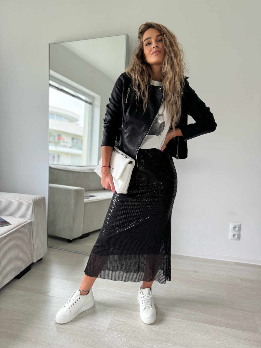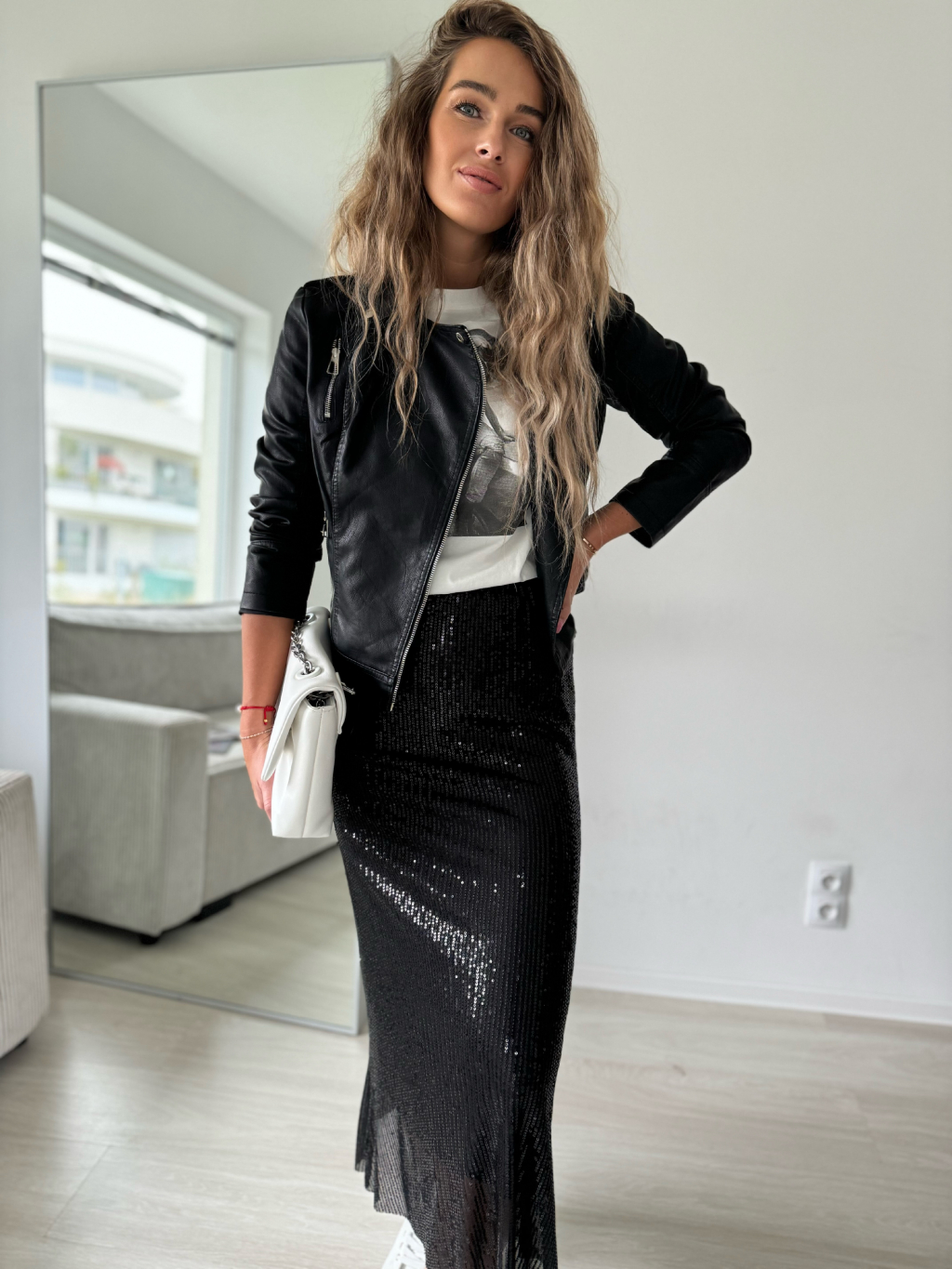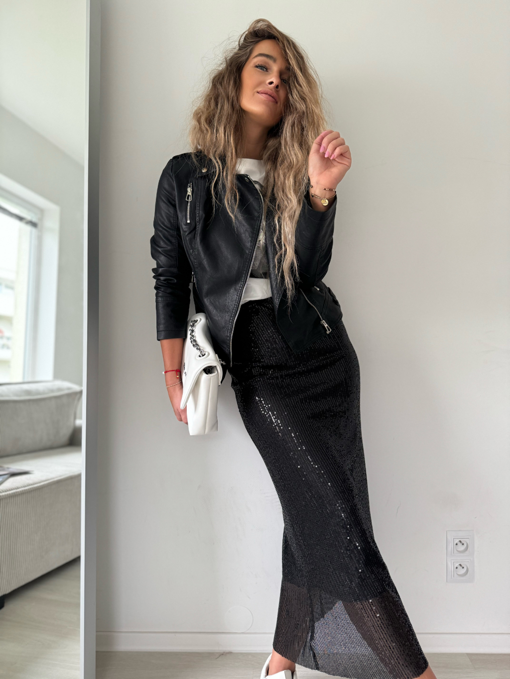 dlouhá sukně, sukně s flitry, černá sukně, sukně do gumy, elegance, styl.