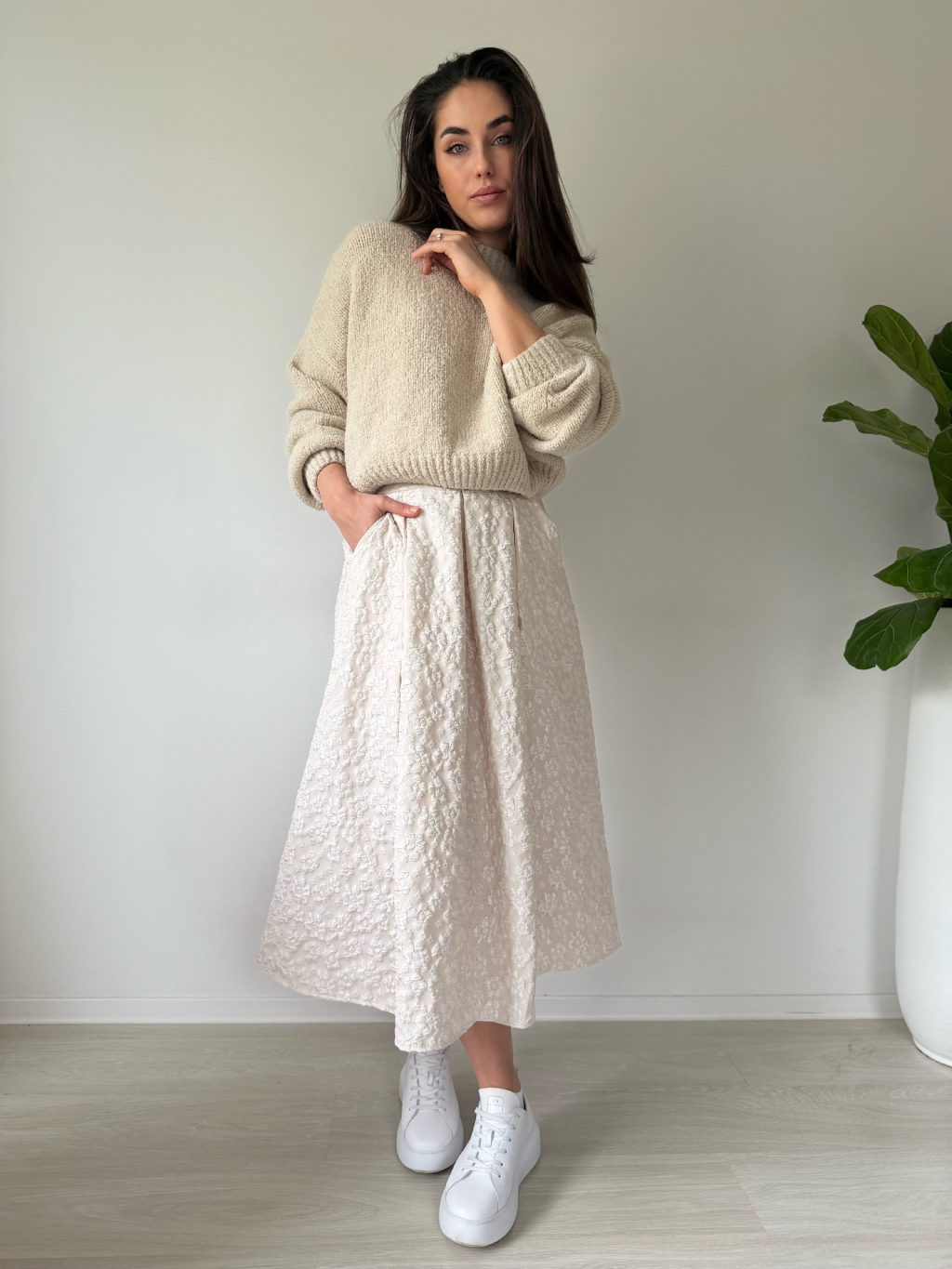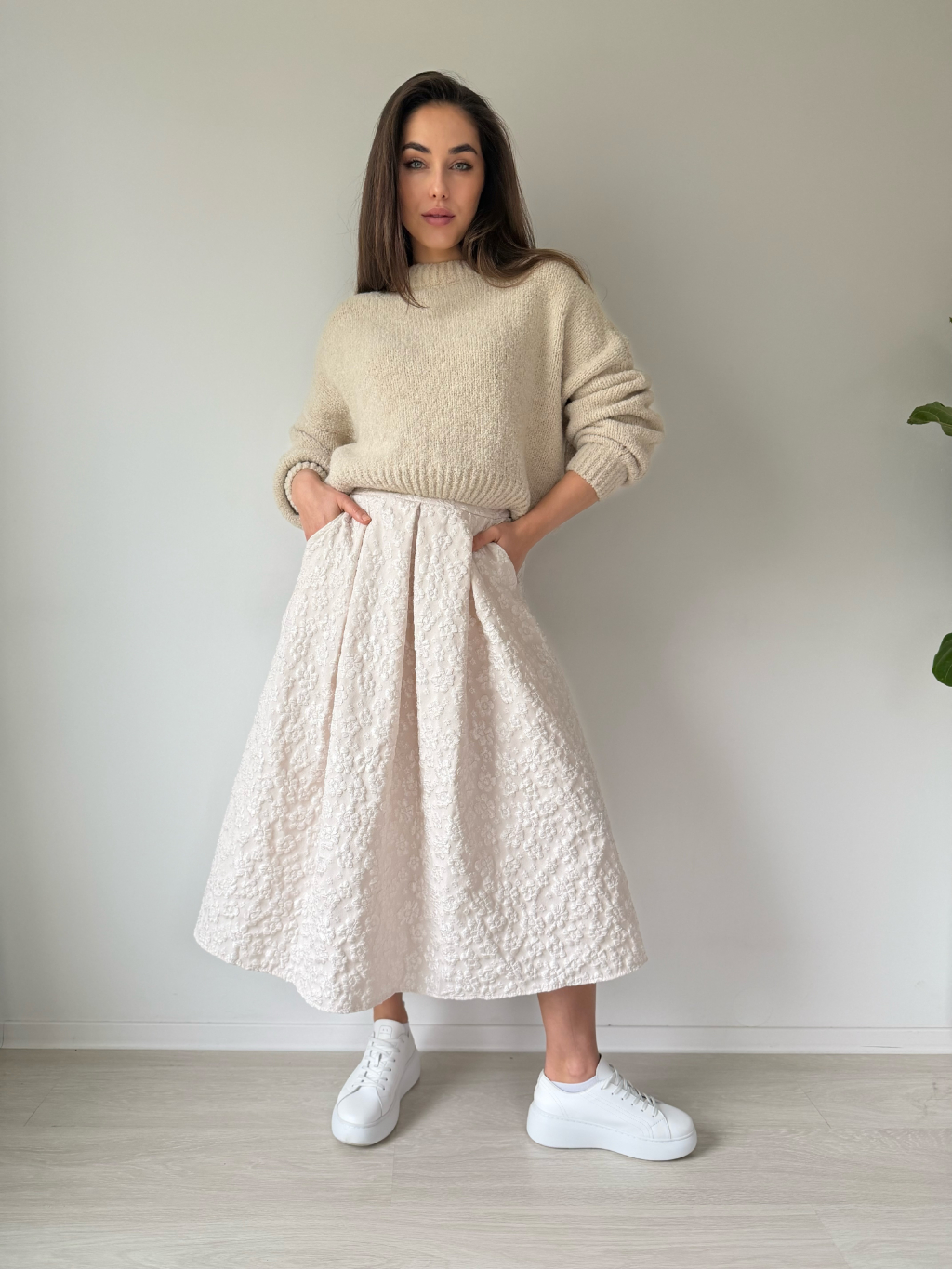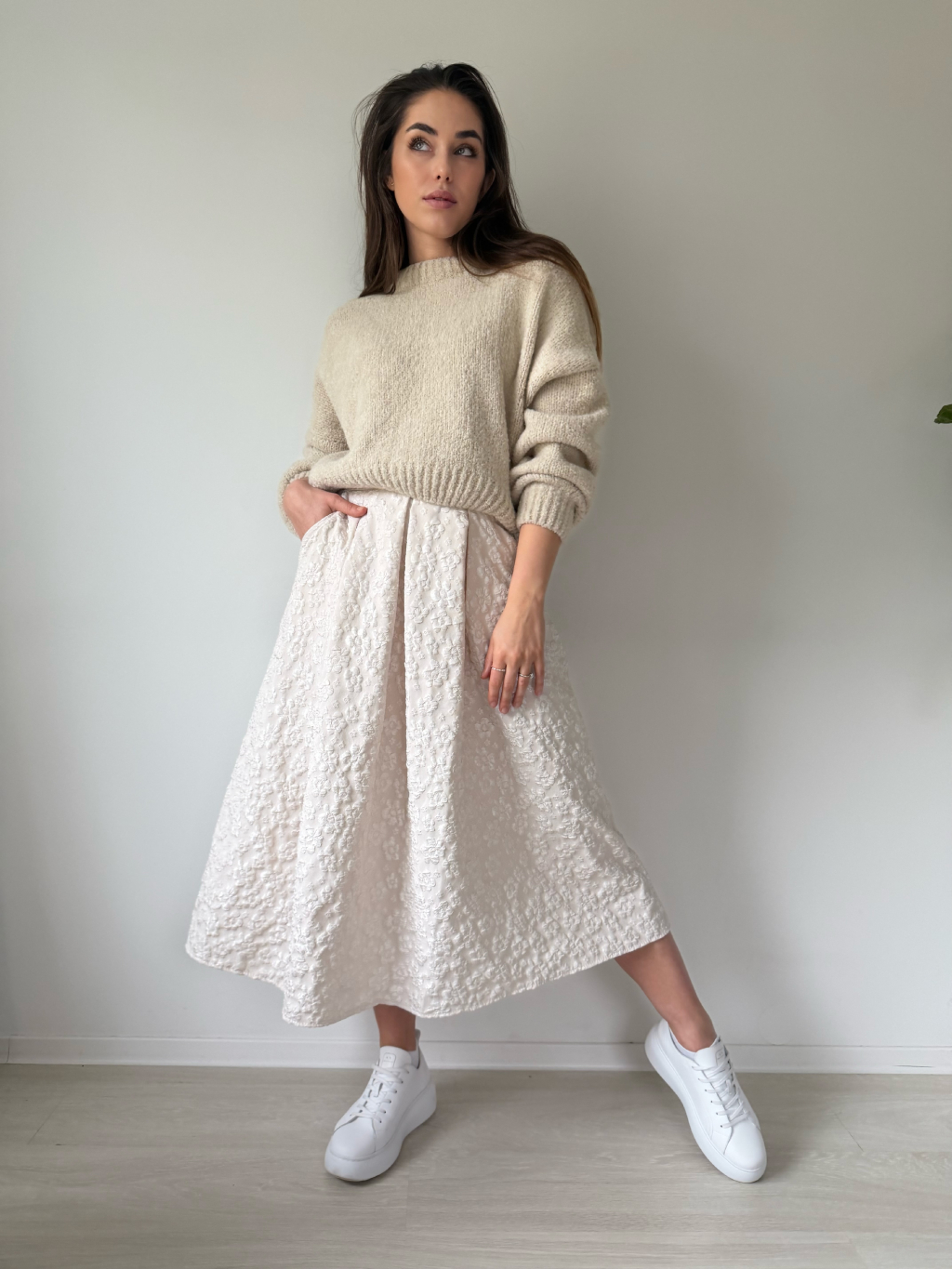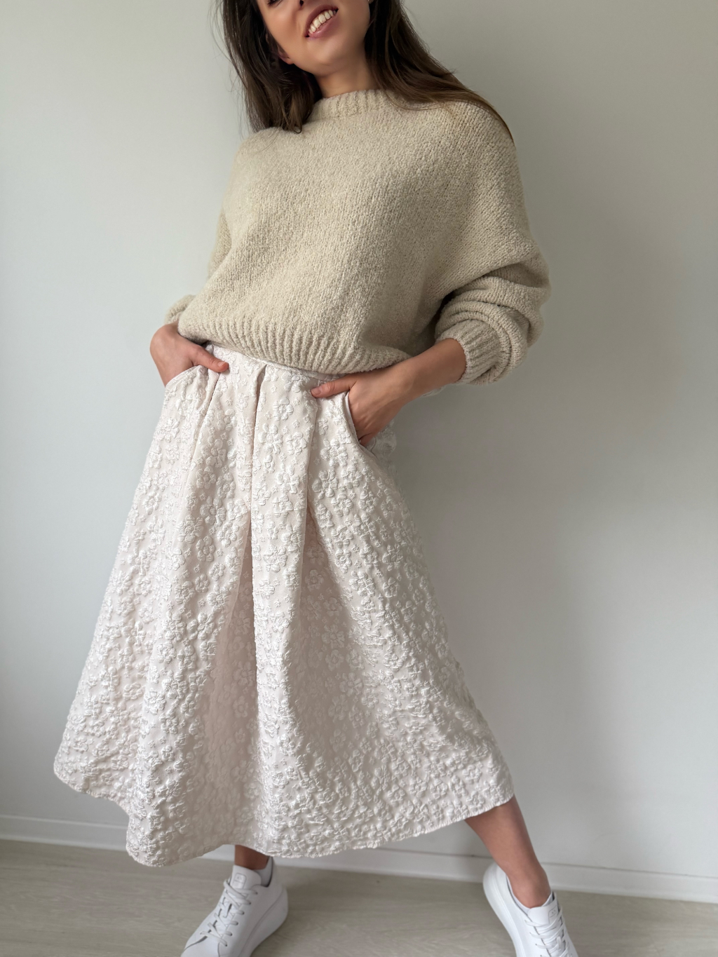 Sukně s květy krémová
