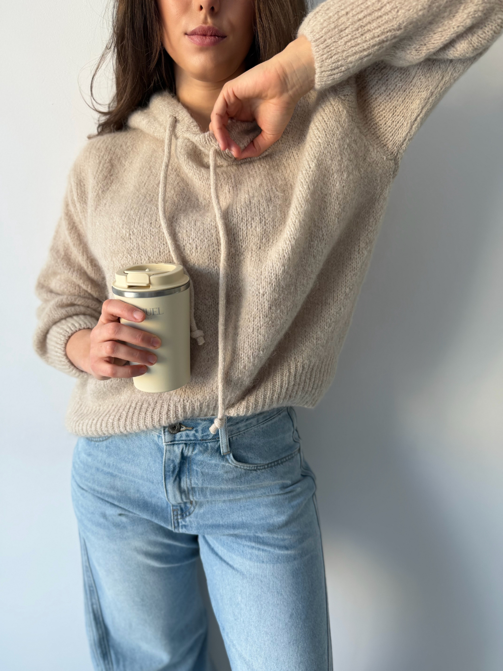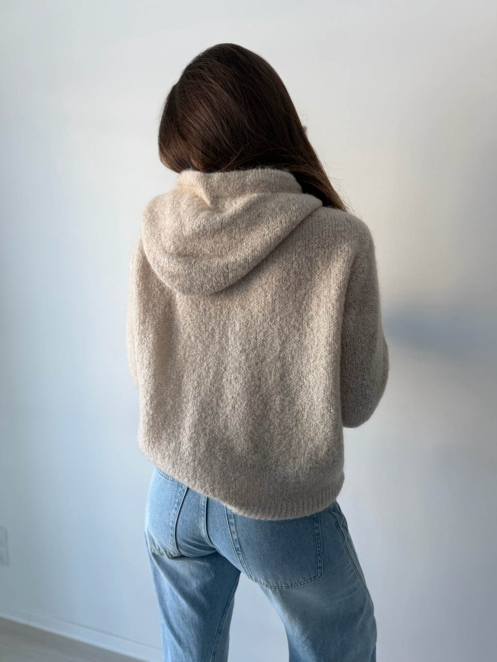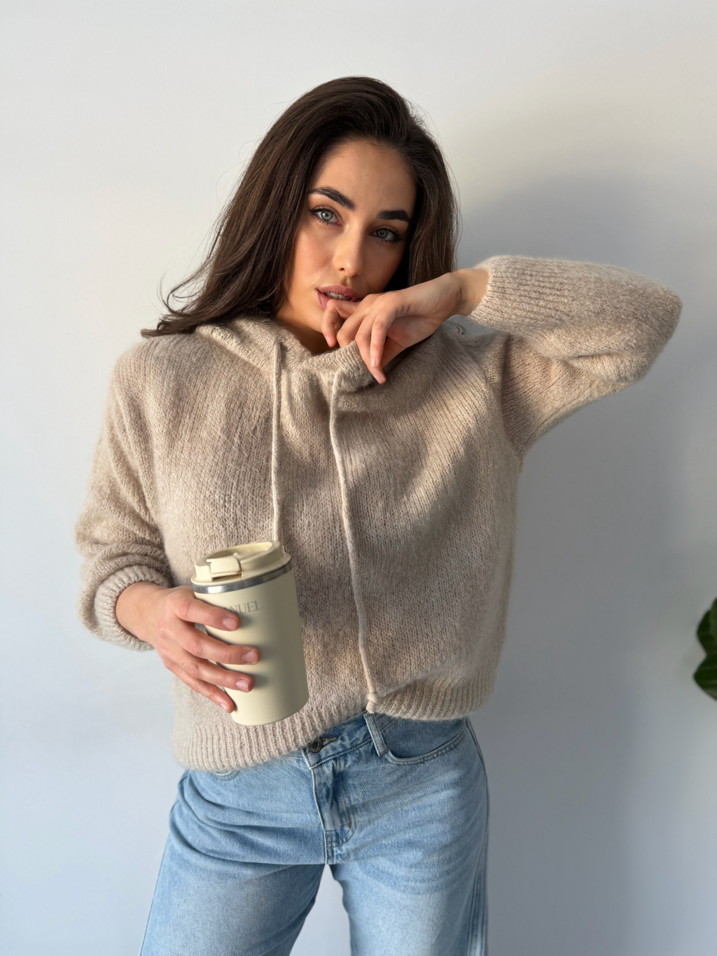 MOHÉROVÝ SVETR S KAPUCÍ KRÉMOVÁ